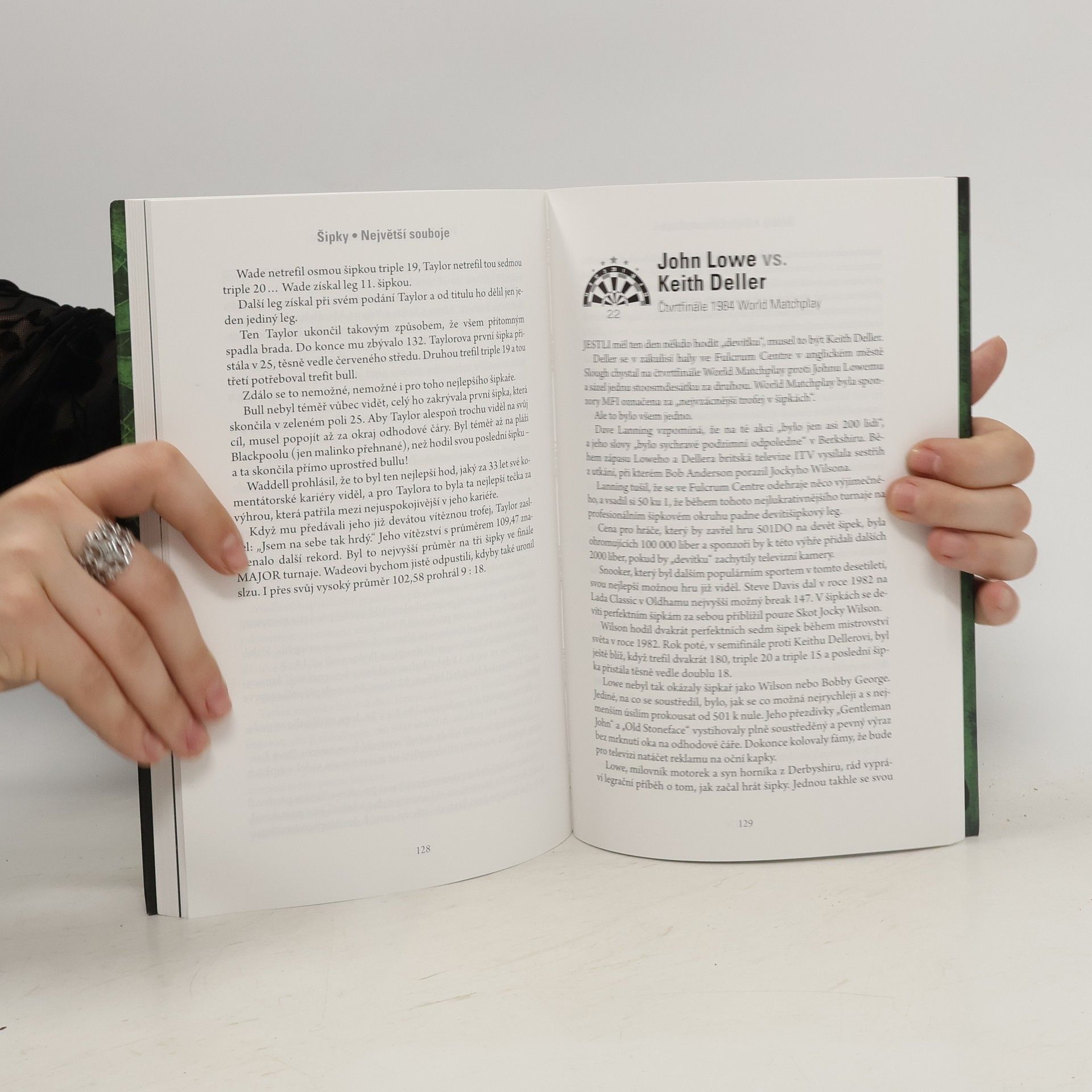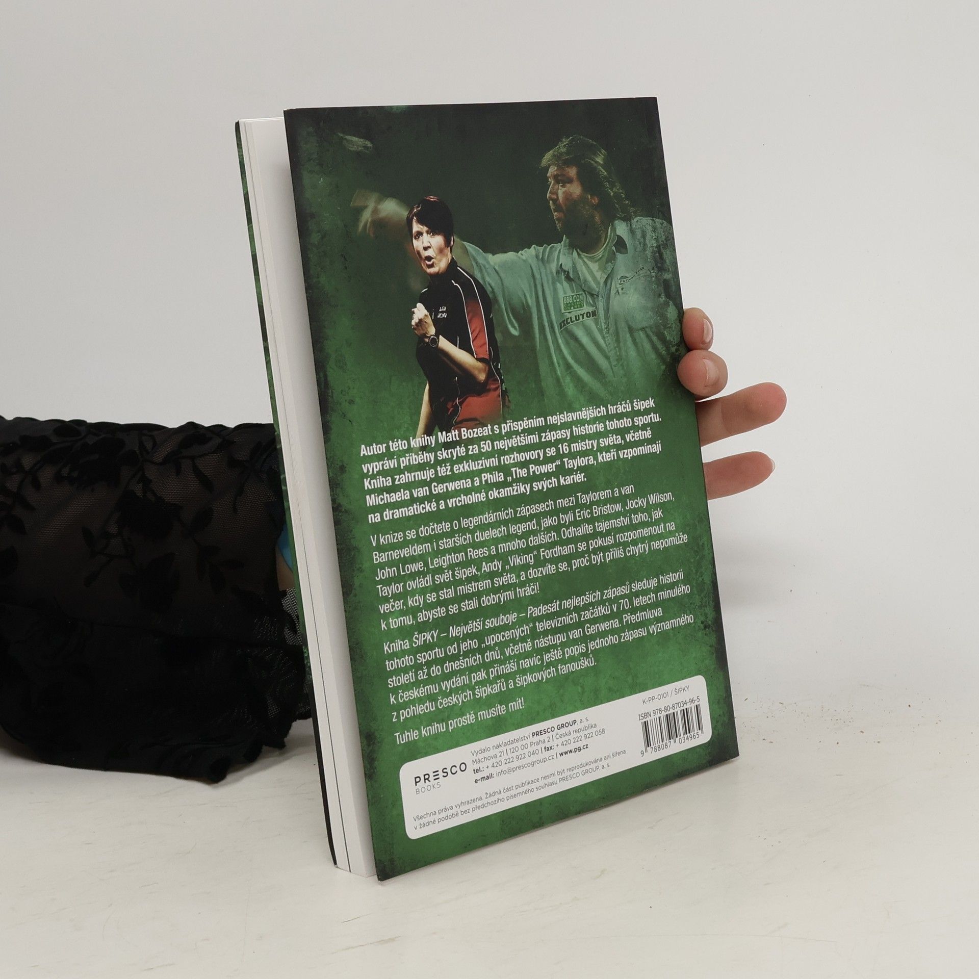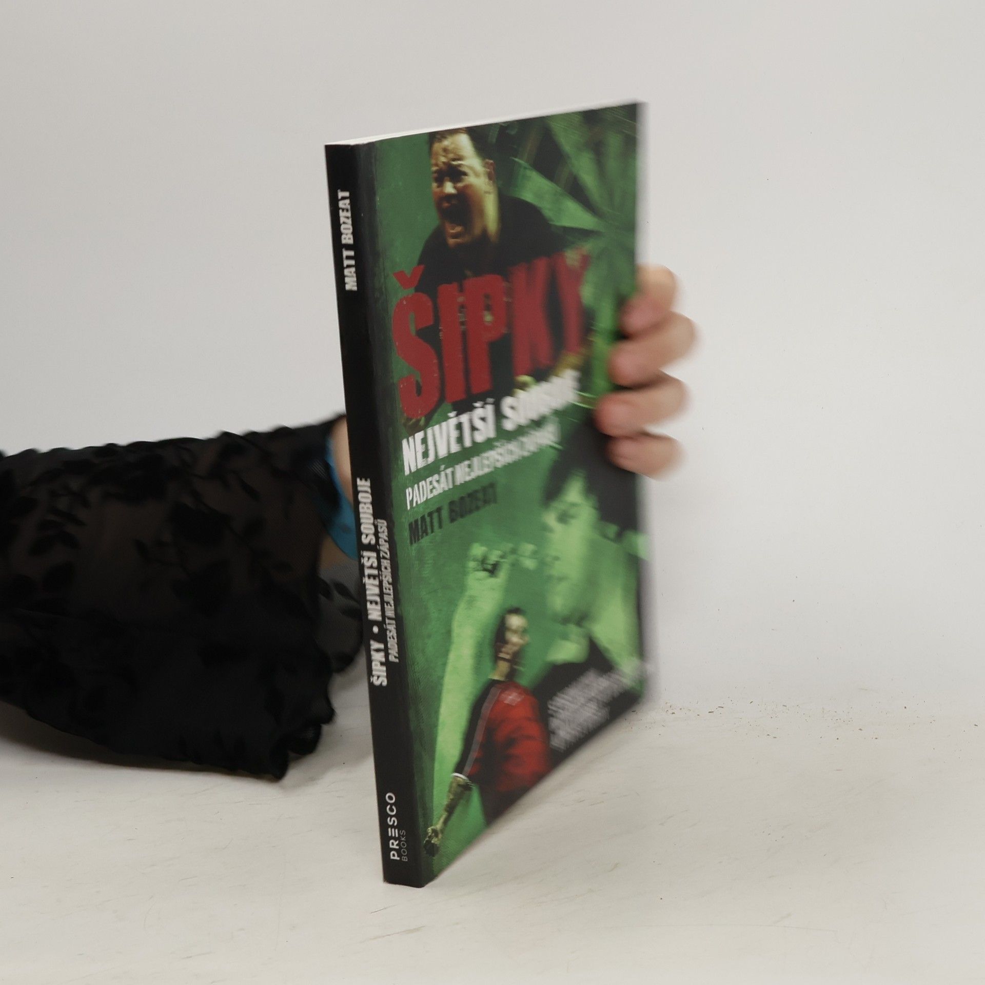 Autor této knihy Matt Bozeat s přispěním nejslavnějších hráčů šipek vypráví příběhy skryté za 50 největšími zápasy historie tohoto sportu. Kniha zahrnuje také exkluzivní rozhovory se 16 mistry světa, včetně Michaela van Gerwena a Phila „The Power“ Taylora, kteří vzpomínají na dramatické a vrcholné okamžiky svých hvězdných kariér. V knize se dočtete o legendárních zápasech mezi Taylorem a van Barneveldem i starších duelech legend, jako byli Eric Bristow, Jocky Wilson, John Lowe, Leighton Rees a mnoho dalších. Odhalíte tajemství toho, jak Taylor ovládl svět šipek, Andy „Viking“ Fordham se pokusí rozpomenout na večer, kdy se stal mistrem světa, a dozvíte se, proč být příliš chytrý nepomůže k tomu, abyste se stali dobrými hráči! Kniha ŠIPKY – Největší souboje – Padesát nejlepších zápasů sleduje historii tohoto sportu od jeho "upocených" televizních začátků v 70. letech minulého století až do dnešních dnů, včetně nástupu van Gerwena. Předmluva k českému vydání pak přináší navíc ještě popis jednoho zápasu významného z pohledu českých šipkařů a šipkových fanoušků. Tuhle knihu prostě musíte mít!