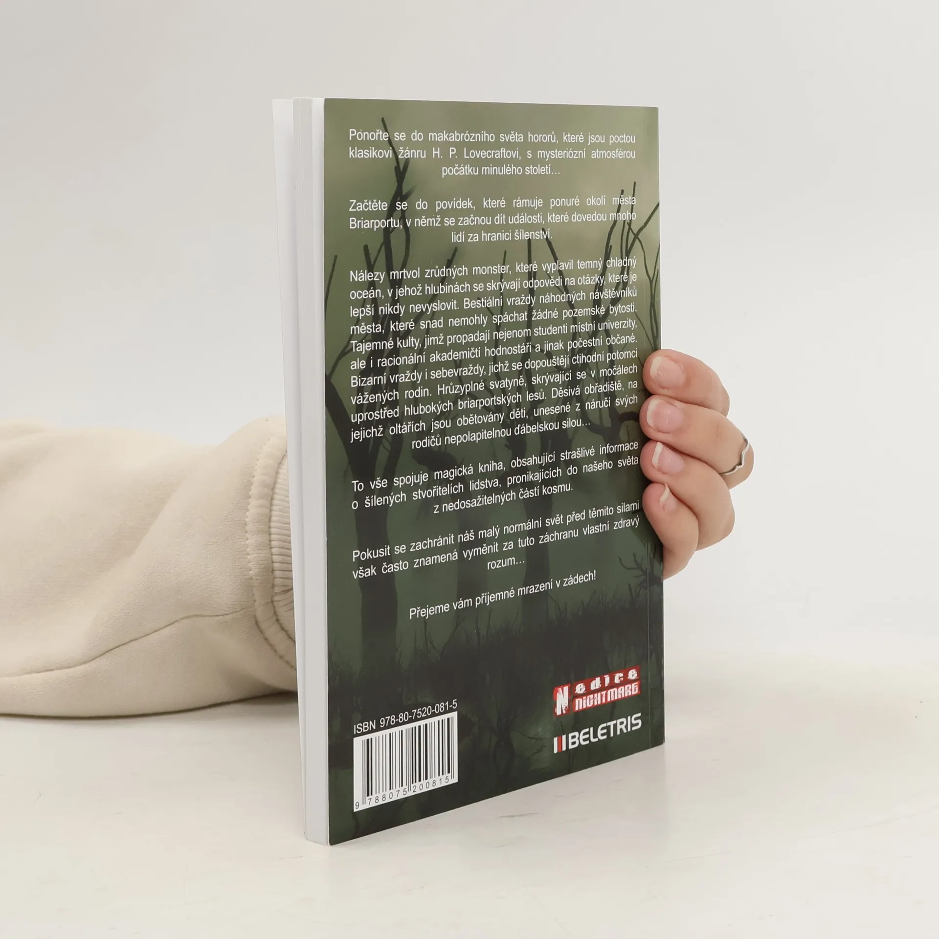 Ponořte se do makabrózního světa hororů, které jsou poctou klasikovi žánru H. P. Lovecraftovi, s mysteriózní atmosférou počátku minulého století… Začtěte se do povídek, které rámuje ponuré okolí města Briarportu, v němž se začnou dít události, které dovedou mnoho lidí za hranici šílenství. Nálezy mrtvol zrůdných monster, které vyplavil temný chladný oceán, v jehož hlubinách se skrývají odpovědi na otázky, které je lepší nikdy nevyslovit. Bestiální vraždy náhodných návštěvníků města, které snad nemohly spáchat žádné pozemské bytosti. Tajemné kulty, jimž propadají nejenom studenti místní univerzity, ale i racionální akademičtí hodnostáři a jinak počestní občané. Bizarní vraždy i sebevraždy, jichž se dopouštějí ctihodní potomci vážených rodin. Hrůzyplné svatyně, skrývající se v močálech uprostřed hlubokých briarportských lesů. Děsivá obřadiště, na jejichž oltářích jsou obětovány děti, unesené z náručí svých rodičů nepolapitelnou ďábelskou silou… A to vše spojuje magická kniha, obsahující strašlivé informace o šílených stvořitelích lidstva, pronikajících do našeho světa z nedosažitelných částí kosmu. Pokusit se zachránit náš malý normální svět před těmito silami však často znamená vyměnit za tuto záchranu vlastní zdravý rozum… Přejeme vám příjemné mrazení v zádech!