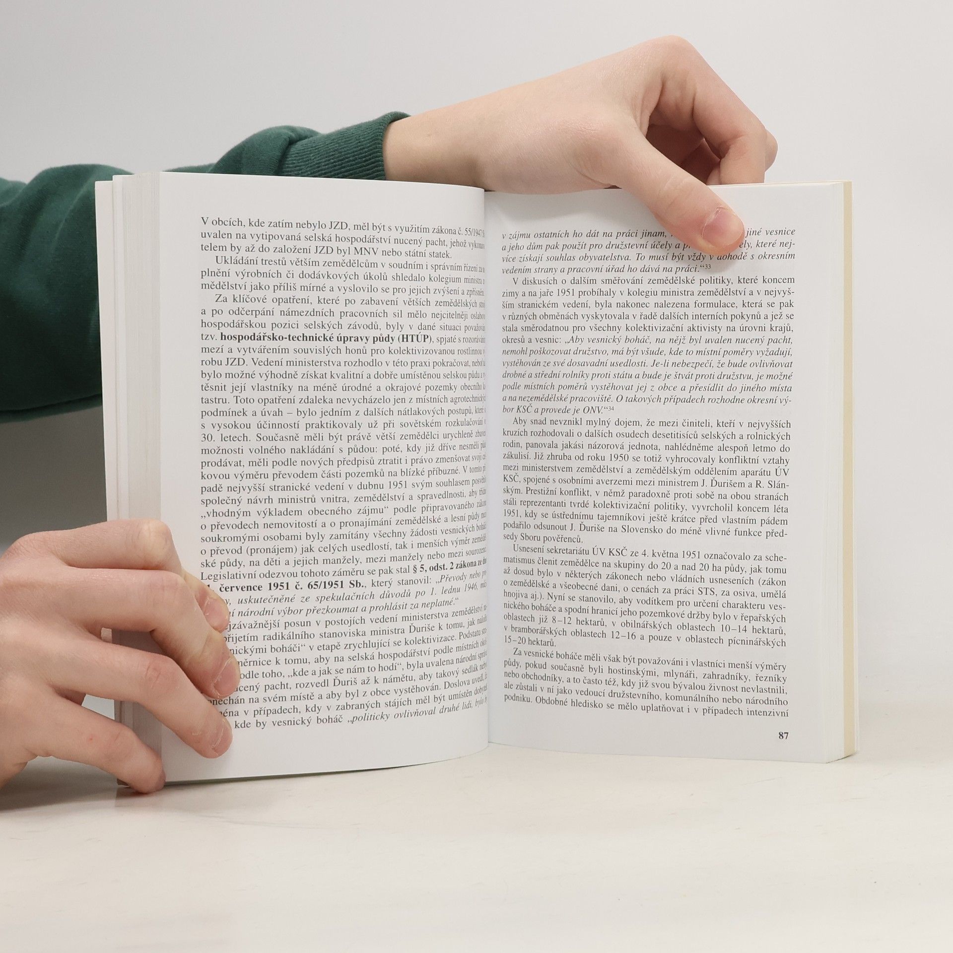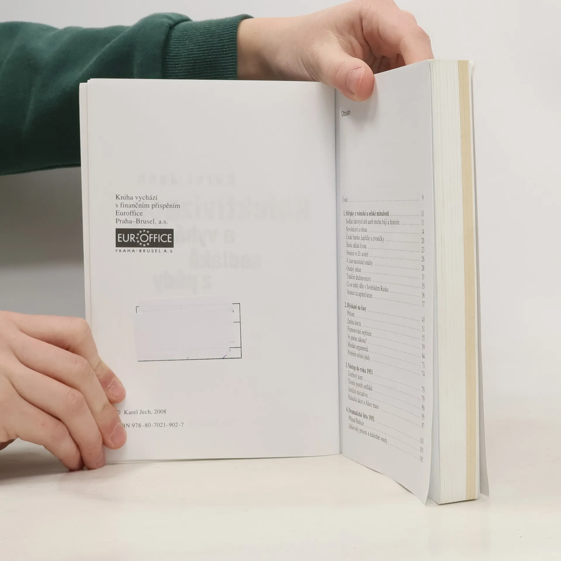 Významný český historik doc. Karel Jech přichází s ucelenou publikací o kolektivizaci zemědělství v Čechách a souvisejících činech proti lidskosti. V úvodu autor připomíná těžké i slavné období sedláků, včetně nevolnictví a roboty, proti nimž vesnice často účinně povstávaly. Hlavní část knihy se zaměřuje na to, proč se československé zemědělství na začátku padesátých let odklonilo od své tradice a přijalo cizorodý model kolektivizace podle stalinského vzoru, který byl uplatňován nevybíravými metodami od třicátých let v SSSR. Autor využívá rozsáhlé archivy k vystižení podstatných rysů totalitního řízení zemědělství, ovládání vesnického života a nátlaku na zemědělce, včetně represivních metod tam, kde nestačilo přesvědčování. Důkladně je dokumentován vývoj mocenského monopolu KSČ v zemědělství a zastrašovací aktivity Státní bezpečnosti. Kniha se podrobně věnuje Akci K(kulak), během níž byly stovky selských rodin vyhnány z domovů a zbaveny majetku, přičemž mnozí byli skandalizováni, uvězněni a nuceni k těžkým pracím. Autor dochází k závěru, že malozemědělci ztratili možnost soukromě hospodařit, což vedlo k oslabení, ale ne úplnému zničení selského stavu, který hledá nové uplatnění v modernizovaných farmách a jako součást středního stavu společnosti.