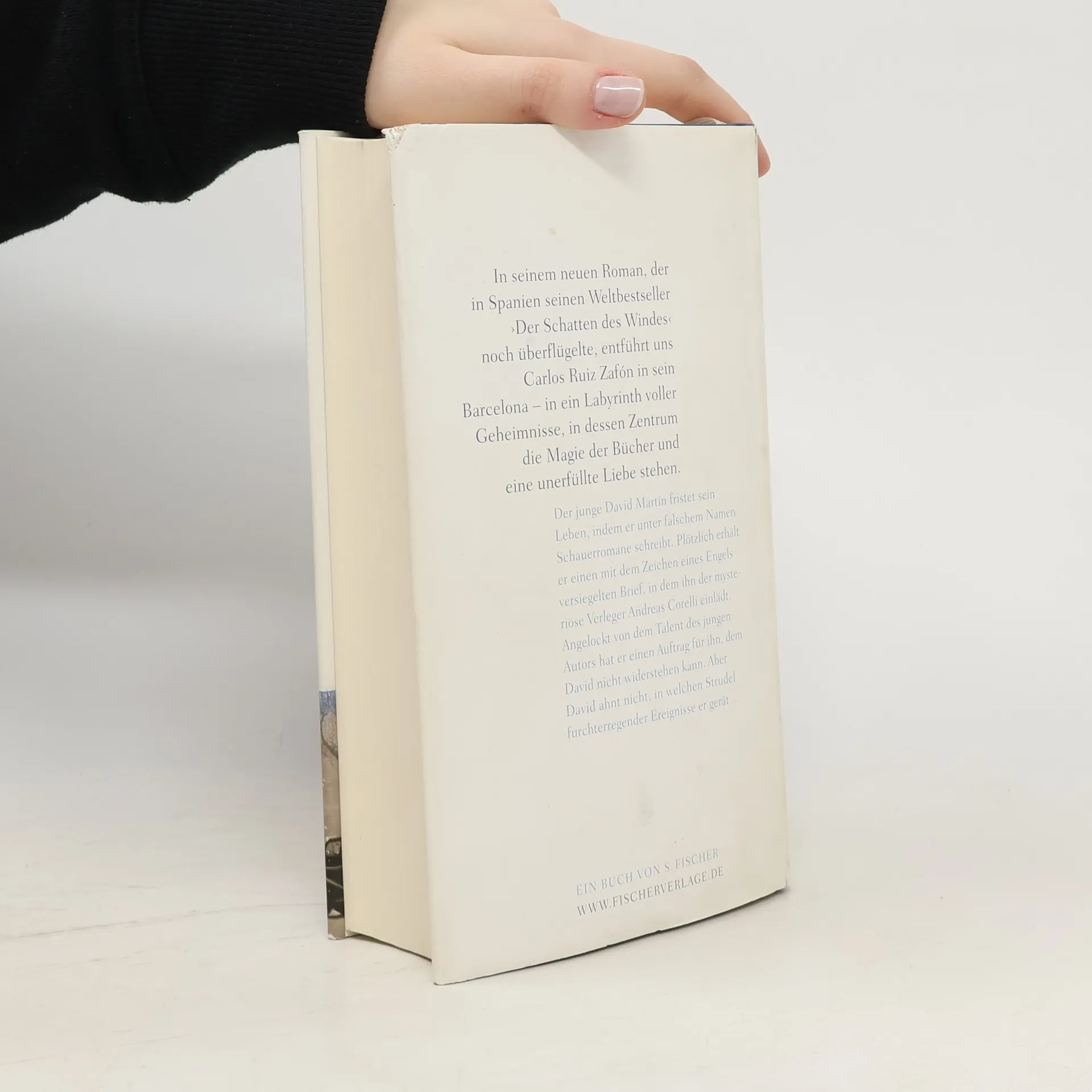 Wir schreiben das turbulente Jahrzehnt vor dem Bürgerkrieg, als alles aus den Fugen gerät. Die Bevölkerung Barcelonas explodiert, die Stadt expandiert, Gaudí erschafft seine Kathedrale, Banden kontrollieren ganze Stadtviertel und die Anarchisten zünden ihre Bomben. Der junge David Martín fristet sein Leben als Autor von Schauergeschichten. Als ernsthafter Schriftsteller verkannt, von einer tödlichen Krankheit bedroht und um die Liebe seines Lebens betrogen, scheinen seine großen Erwartungen sich in nichts aufzulösen. Doch einer glaubt an sein Talent: Der mysteriöse Verleger Andreas Corelli macht ihm ein Angebot, das Verheißung und Versuchung zugleich ist. David kann nicht widerstehen und ahnt nicht, in wessen Bann er gerät. Mit unwiderstehlicher erzählerischer Kraft lockt uns Carlos Ruiz Zafón wieder auf den Friedhof der Vergessenen Bücher: mitten hinein in einen Kosmos voller Spannung und Phantastik, Freundschaft und Liebe, Schrecken und Intrige. In eine Welt, die vom diabolischen Wunsch nach ewigem Leben und Ruhm regiert wird.