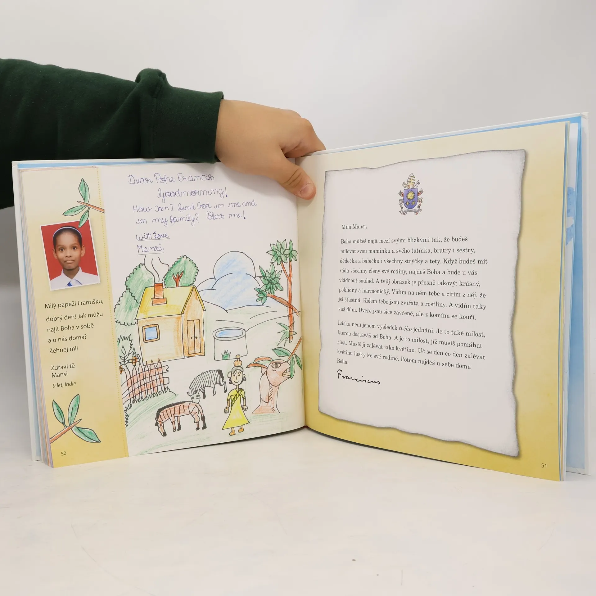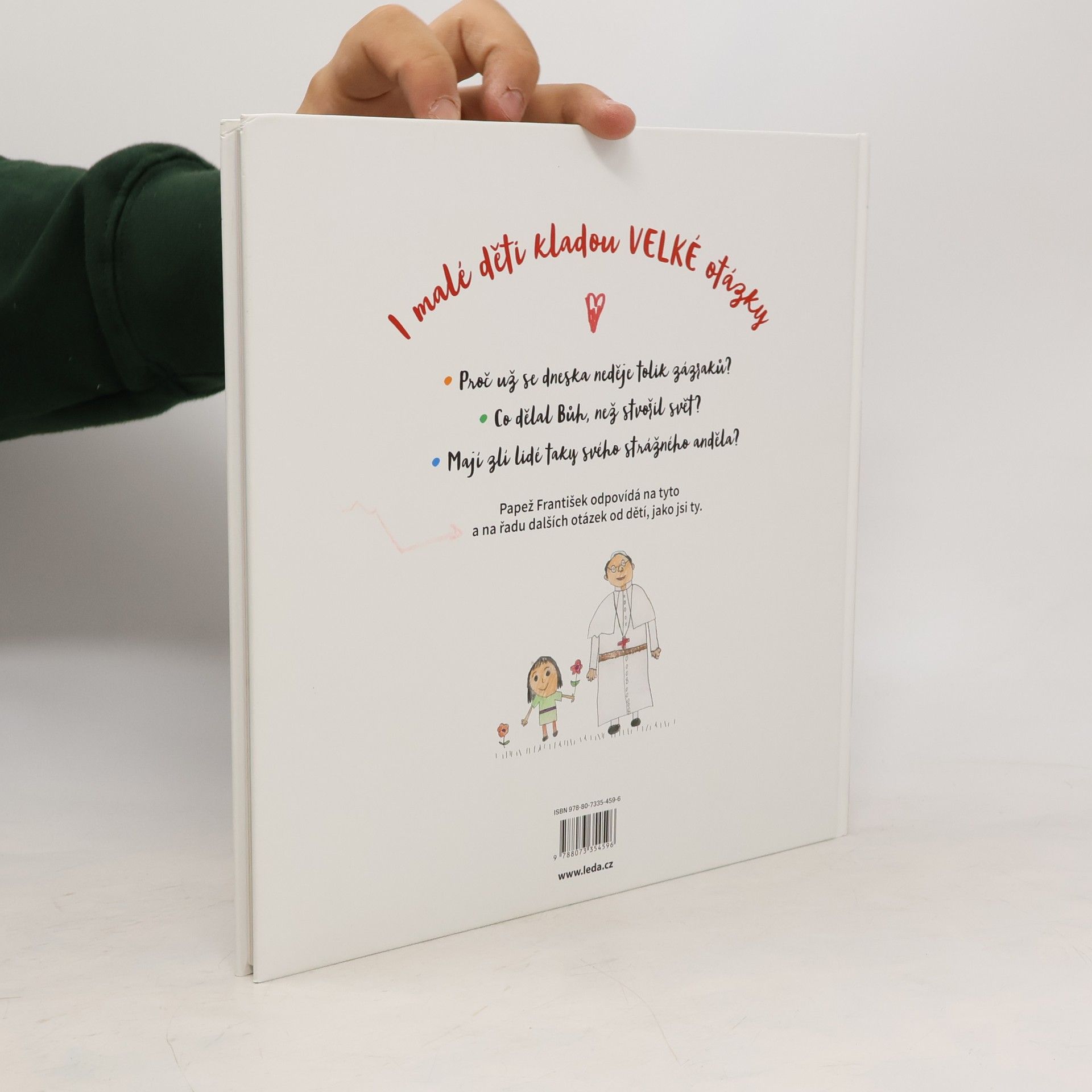 I malé děti kladou VELKÉ otázky: Proč už se dneska neděje tolik zázraků? Co dělal Bůh, než stvořil svět? Mají zlí lidé taky svého strážného anděla? Děti z 26 zemí poslaly papeži Františkovi dopisy doprovázené kresbami, od veselých až po ty vážné, od zvědavých až po ty hlubokomyslné. Když je papež František poprvé držel v rukou, usmál se a podotkl: „To jsou ale ošemetné otázky!“ Papež František dal najevo hlubokou lásku a úctu k dětem tím, že si našel čas, aby je vyslechl, zkoušel si představit jejich tváře a z hloubi srdce jim odpovídal. Je to srdce pastýře, jemuž na malých ovečkách v jeho stádu nesmírně záleží a které láskyplně chápe, že nejmenší ve snaze pochopit svět hledají pomoc u nás dospělých.