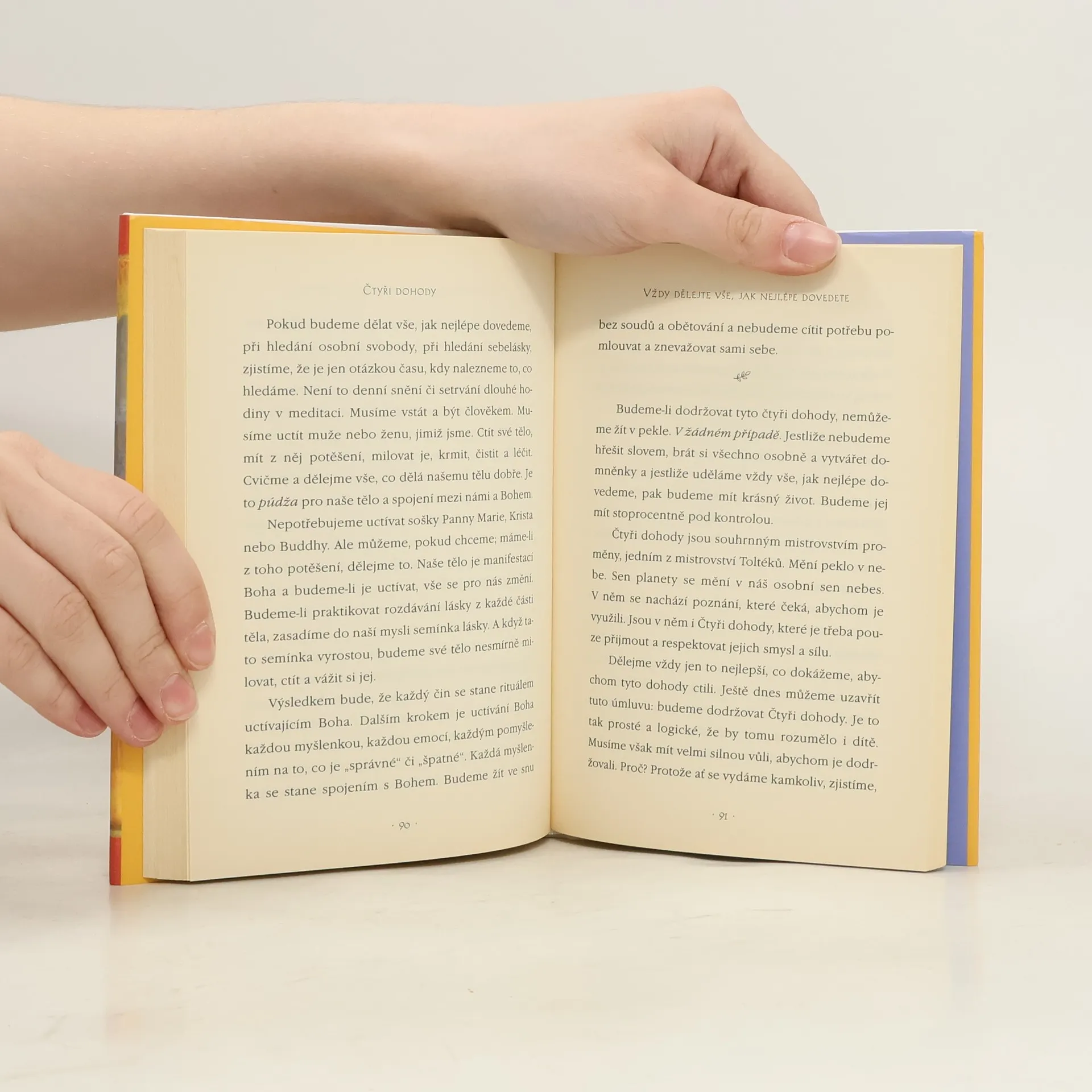 Praktický průvodce osobní svobodou. Ve Čtyřech dohodách odhaluje don Miguel Ruiz zdroj omezujících názorů, které nás připravují o radost a vedou k zbytečnému utrpení. Čtyři dohody, založené na staré toltécké moudrosti, nabízejí silný kód chování, který dokáže rychle proměnit náš život v nový prožitek svobody, opravdového štěstí a lásky.