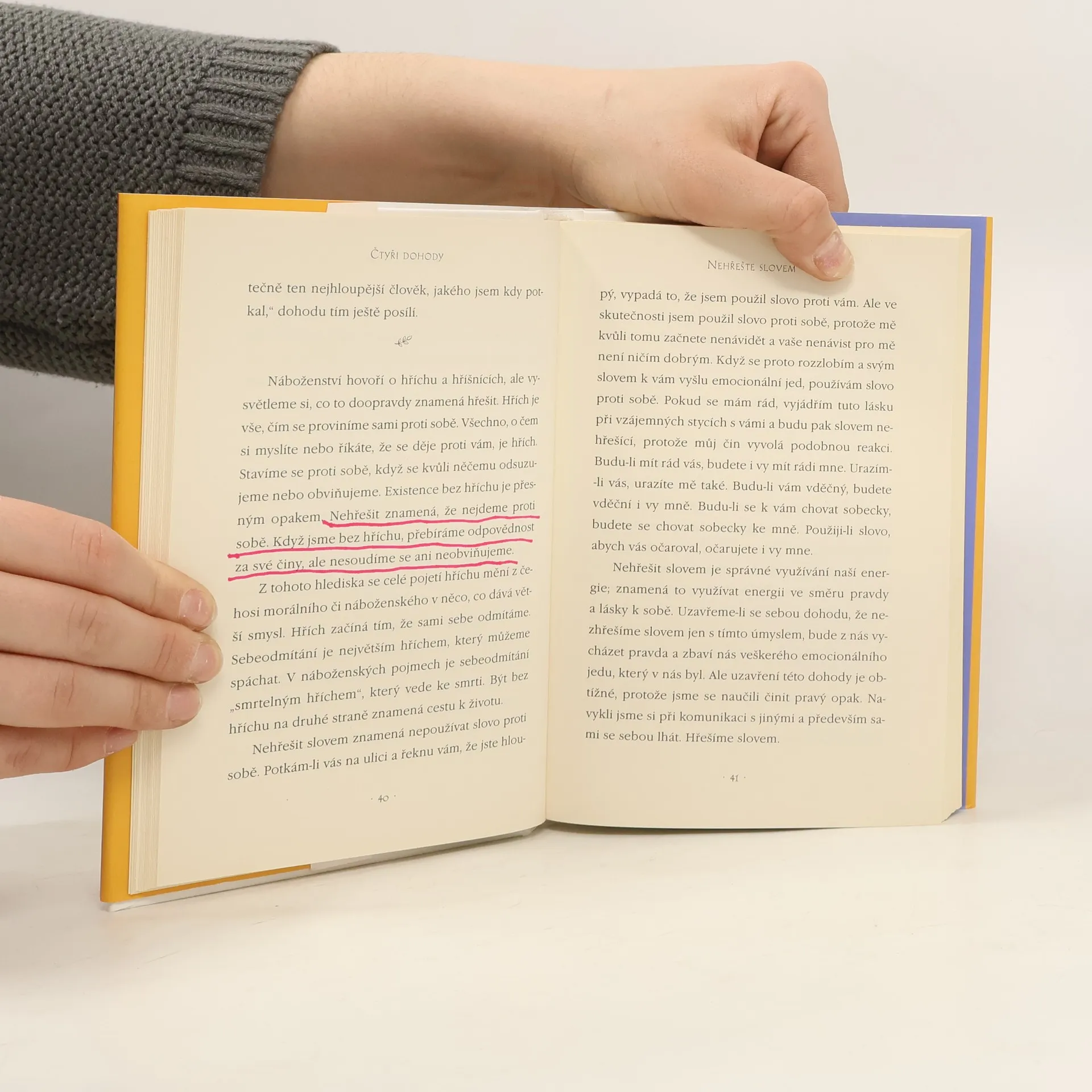 Ve Čtyřech dohodách odhaluje don Miguel Ruiz zdroj špatných životních návyků, které nás připravují o radost a vedou ke zbytečnému utrpení. Čtyři dohody, založené na staré toltécké moudrosti, nabízejí nový přístup k vlastnímu vnitru, abychom dokázali proměnit svůj život v prožitek svobody, opravdového štěstí a lásky.