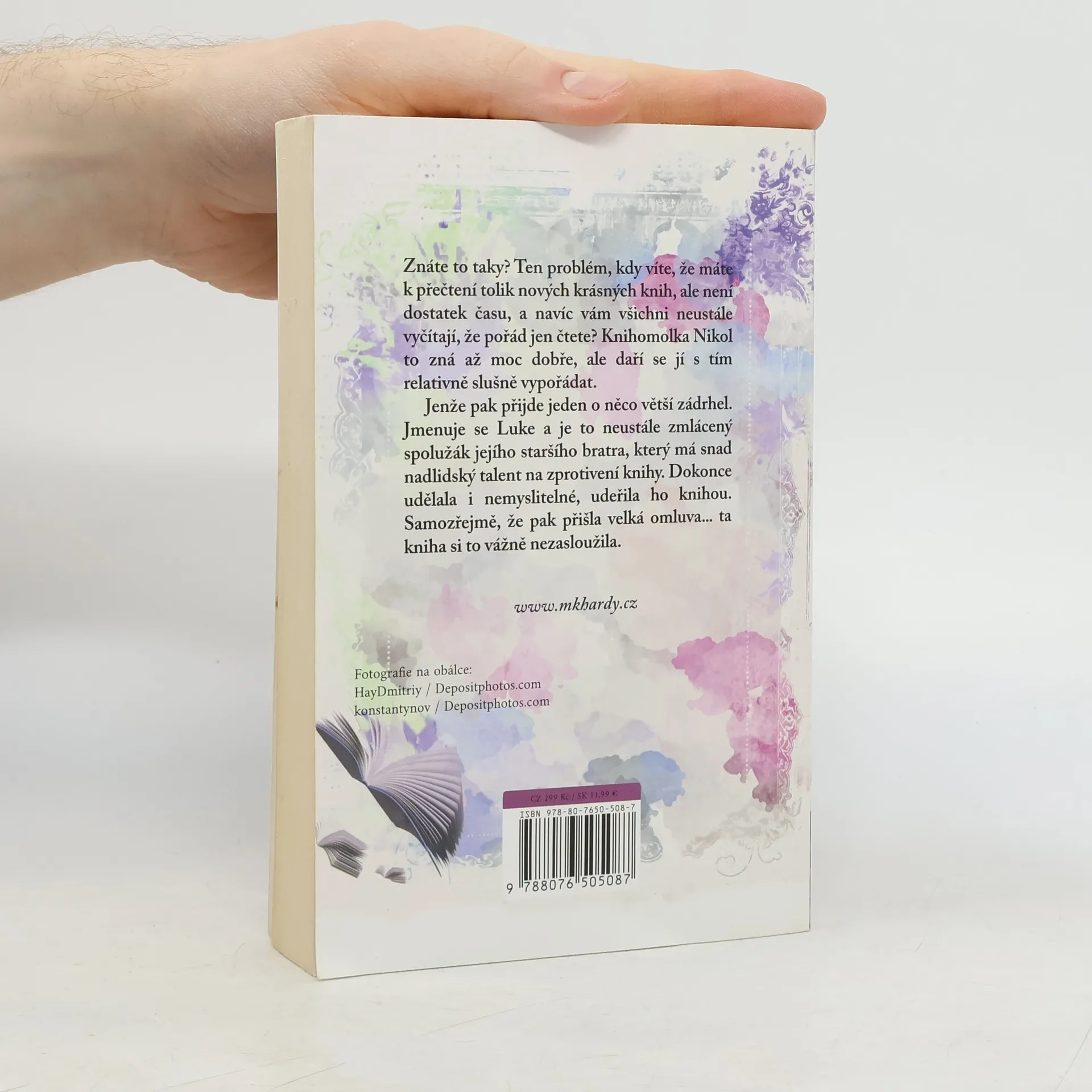 Romantický příběh z vysokoškolského prostředí, v němž hraje hlavní roli knihomolka. Oddechová kniha psaná z pohledu dvou hlavních hrdinů. Znáte taky ten pocit, když máte k přečtení tolik skvělých nových knih, ale není dostatek času? A navíc vám ostatní neustále vyčítají, že pořád jen čtete? Pak jste na tom stejně jako Nikol. Té se daří s knihomolskými problémy relativně slušně vypořádat, než se objeví jeden o něco větší zádrhel. Jmenuje se Luke – neustále zmlácený spolužák jejího staršího bratra, který má snad nadlidský talent na zprotivení knihy. Nikol dokonce udělala nemyslitelné, udeřila ho knihou. Samozřejmě že pak přišla velká omluva… ta kniha si to vážně nezasloužila.