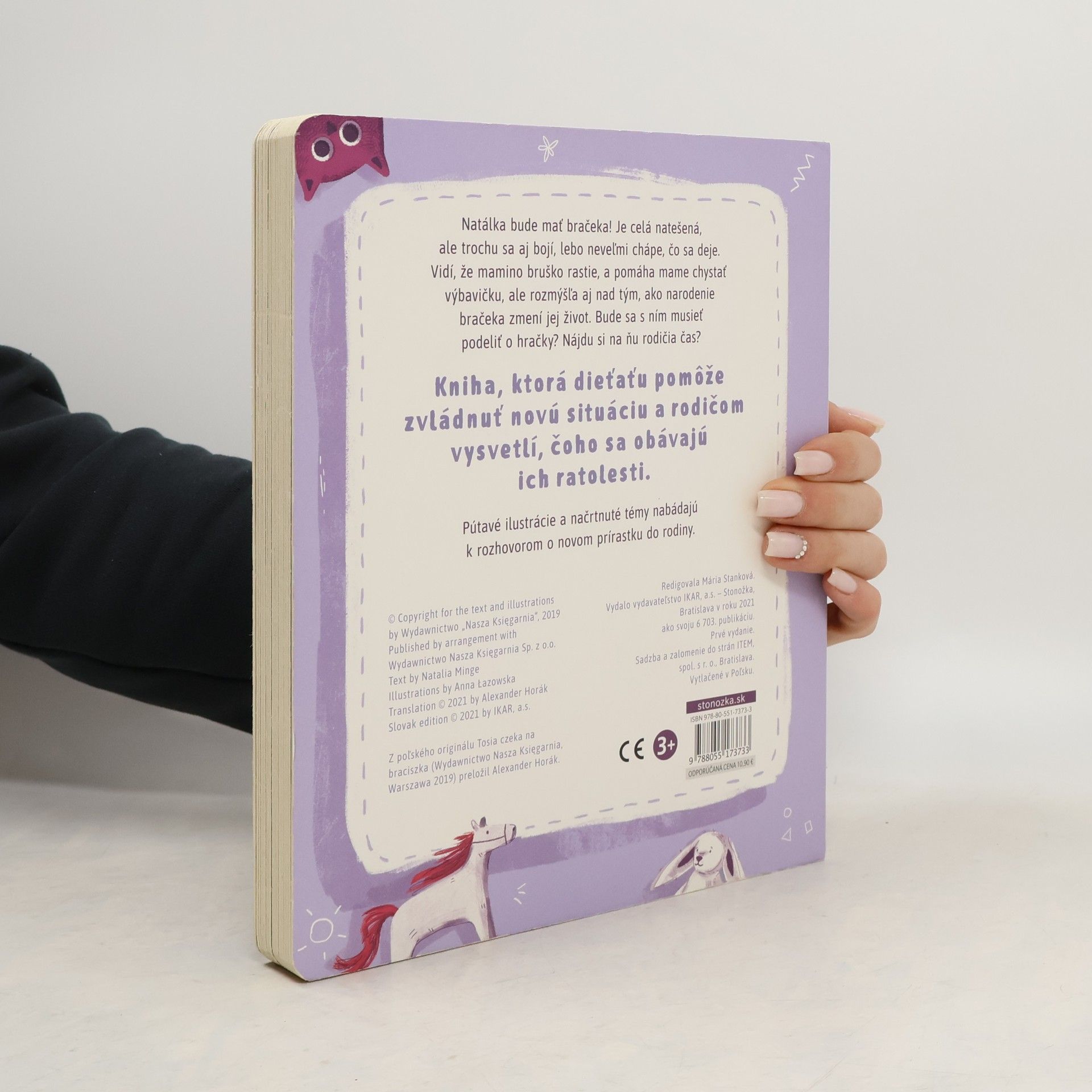 Natálka bude mať bračeka! Je celá natešená, ale trochu sa aj bojí, lebo neveľmi chápe, čo sa deje. Vidí, že maminou bruško rastie, a pomáha máme chystať výbavičku, ale rozmýšľa aj nad tým, ako narodenie bračeka zmení jej život. Bude sa s ním musieť podeliť o hračky? Nájdu si na ňu rodičia čas? Kniha, ktorá dieťaťu pomôže zvládnuť novú situáciu a rodičom vysvetlí, čoho sa obávajú ich ratolesti.