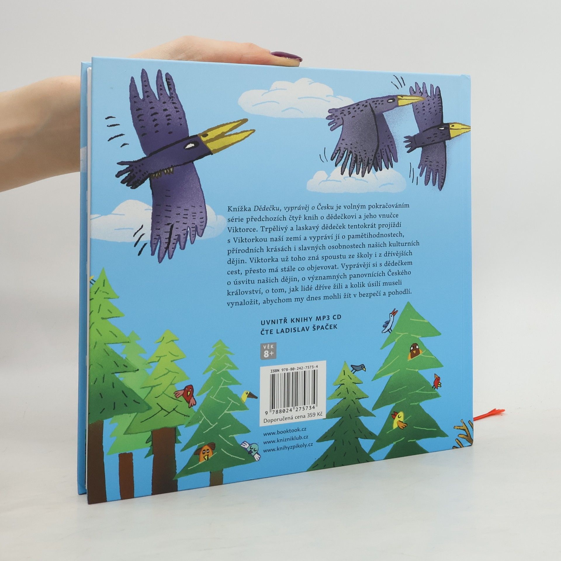 Knížka Dědečku, vyprávěj o Česku je volným pokračováním série předchozích čtyř knih o dědečkovi a jeho vnučce Viktorce. Trpělivý a laskavý dědeček tentokrát projíždí s Viktorkou naší zemí a vypráví jí o pamětihodnostech, přírodních krásách i slavných osobnostech našich kulturních dějin. Viktorka už zná leccos ze školy i z dřívějších cest, přesto má stále co objevovat. Vyprávějí si s dědečkem o úsvitu našich dějin, o významných panovnících Českého království, o tom, jak lidé dříve žili a kolik úsilí museli vynaložit, abychom my dnes mohli žít v bezpečí a pohodlí.