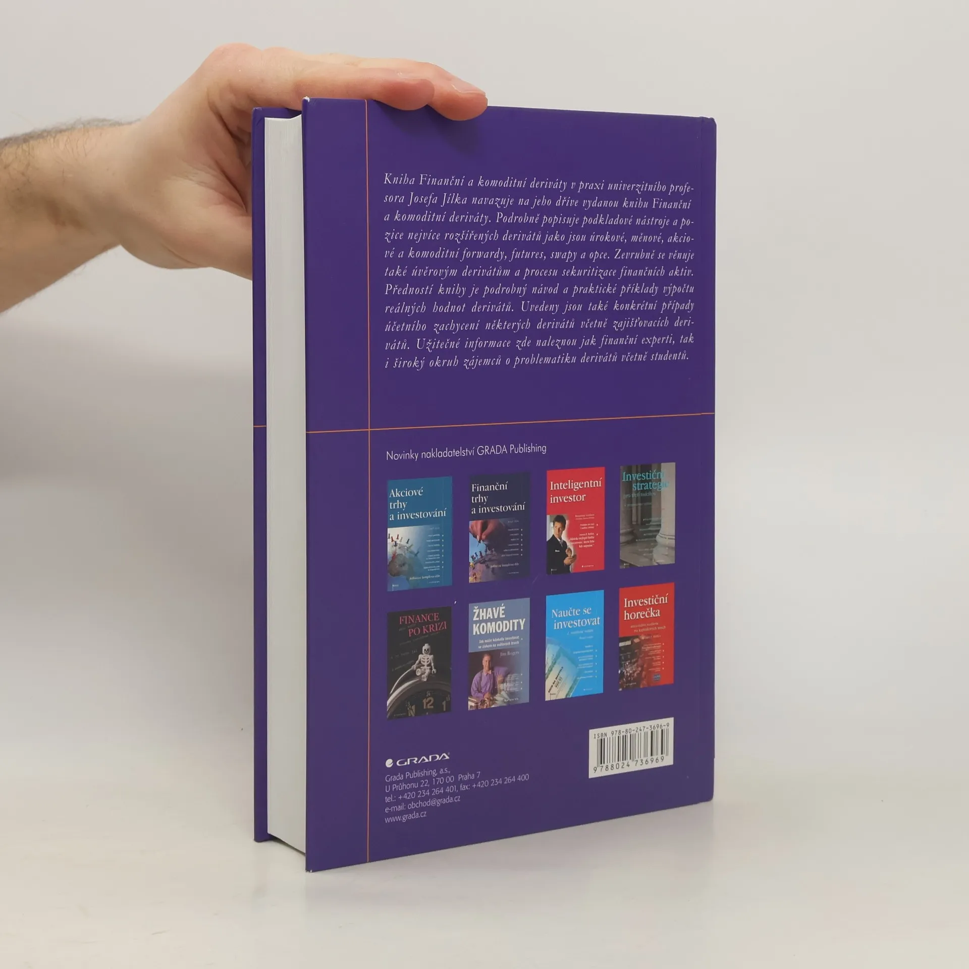 Kniha Finanční a komoditní deriváty v praxi profesora Josefa Jílka navazuje na jeho dříve vydanou knihu Finanční a komoditní deriváty. Podrobně popisuje podkladové nástroje a pozice nejvíce rozšířených derivátů jako jsou úrokové, měnové, akciové a komoditní forwardy, futures, swapy a opce. Zevrubně se věnuje také úvěrovým derivátům a procesu sekuritizace finančních aktiv. Předností knihy je podrobný návod a praktické příklady výpočtu reálných hodnot derivátů. Uvedeny jsou také konkrétní případy účetního zachycení některých derivátů včetně zajišťovacích derivátů. Užitečné informace zde naleznou jak finanční experti, tak i široký okruh zájemců o problematiku derivátů včetně studentů.