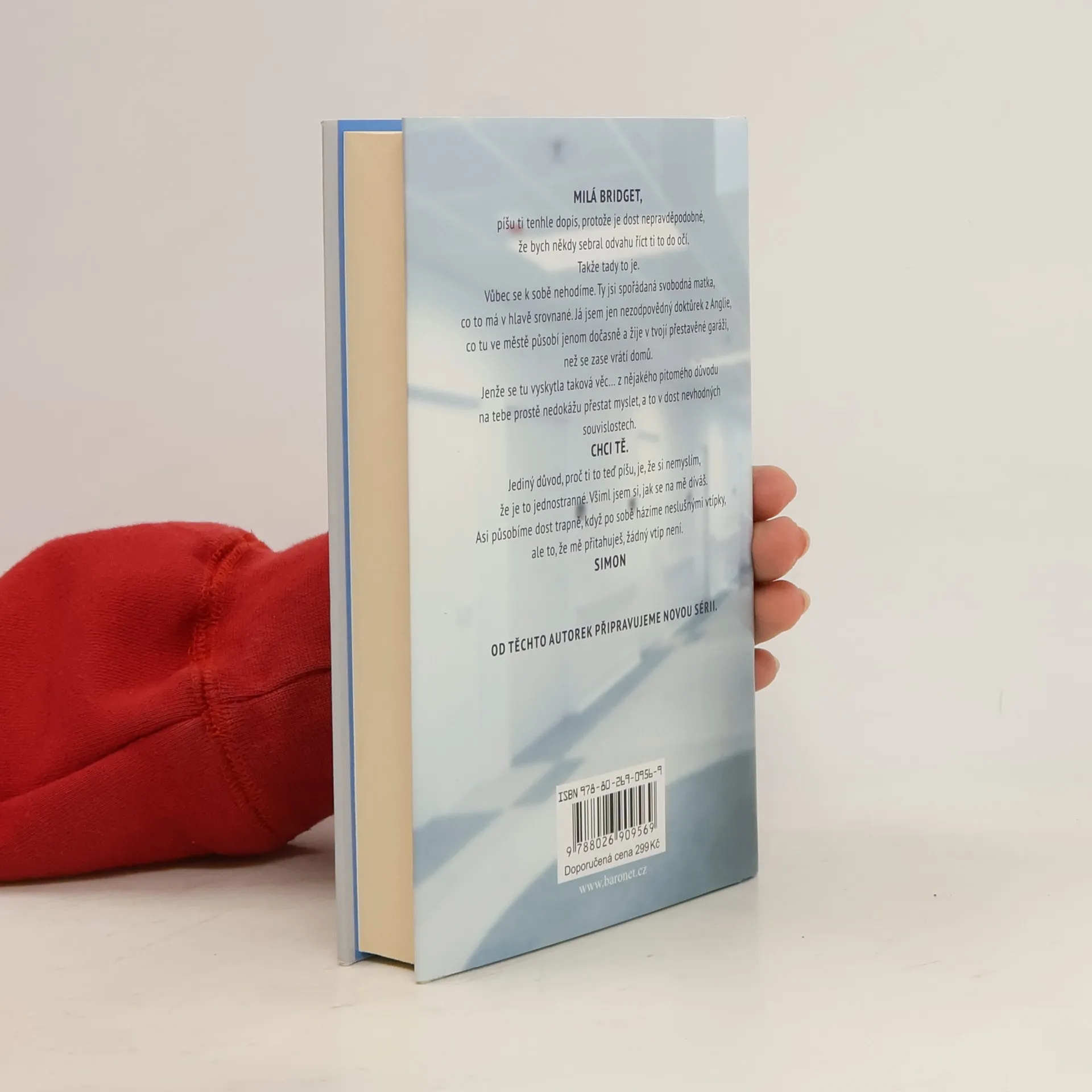 Milá Bridget, píšu ti tenhle dopis, protože je dost nepravděpodobné, že bych někdy sebral odvahu říct ti to do očí. Takže tady to je. Vůbec se k sobě nehodíme. Ty jsi spořádaná svobodná matka, co to má v hlavě srovnané. Já jsem jen nezodpovědný doktůrek z Anglie, co tu ve městě působí jenom dočasně a žije v tvojí přestavěné garáži, než se zase vrátí domů. Jenže se tu vyskytla taková věc… z nějakého pitomého důvodu na tebe prostě nedokážu přestat myslet, a to v dost nevhodných souvislostech. Chci tě. Jediný důvod, proč ti to teď píšu, je, že si nemyslím, že je to jednostranné. Všiml jsem si, jak se na mě díváš. Asi působím dost trapně, když po sobě házíme neslušnými vtípky, ale to, že mě přitahuješ, žádný vtip není. Takže proč ti to vlastně píšu? Prostě tím chci naznačit, že jsme oba dospělí, sex je zdravá a přirozená věc, a že mě můžeš najít hned za těmi dveřmi z kuchyně do garáže. Mám-li být úplně přesný, chci, abys věděla, že ty dveře odteď nechávám otevřené pro případ, že bys za mnou třeba někdy v noci chtěla zajít. Bez otázek. Přemýšlej o tom. Anebo ne. Jak budeš chtít. Beztak pochybuju, že ti ten dopis vůbec strčím pod dveře. Simon