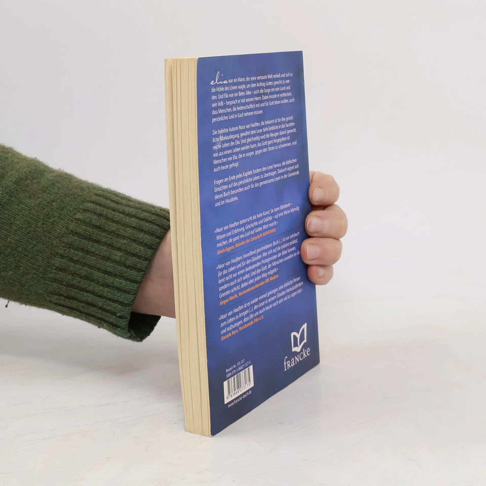 Elia war ein Mann, der seine vertraute Welt verließ und sich in die Höhle des Löwen wagte, um dem Auftrag Gottes gerecht zu werden. Und Elia war ein Beter. Alles – auch die Sorge um sein Land und sein Volk – besprach er mit seinem Herrn. Dabei musste er entdecken, dass Menschen, die leidenschaftlich mit und für Gott leben wollen, auch persönliches Leid in Kauf nehmen müssen. Die beliebte Autorin Noor van Haaften, die bekannt ist für ihre gründliche Bibelauslegung, gewährt dem Leser tiefe Einblicke in das facettenreiche Leben des Elia. Und gleichzeitig wird die Neugier darauf geweckt, was aus einem Leben werden kann, das Gott ganz hingegeben ist. Menschen wie Elia, die es wagen, gegen den Strom zu schwimmen, sind auch heute gefragt. Fragen am Ende jedes Kapitels fordern den Leser heraus, die biblischen Einsichten auf das persönliche Leben zu übertragen. Dadurch eignet sich dieses Buch besonders auch für das gemeinsame Lesen in der Gemeinde und im Hauskreis.