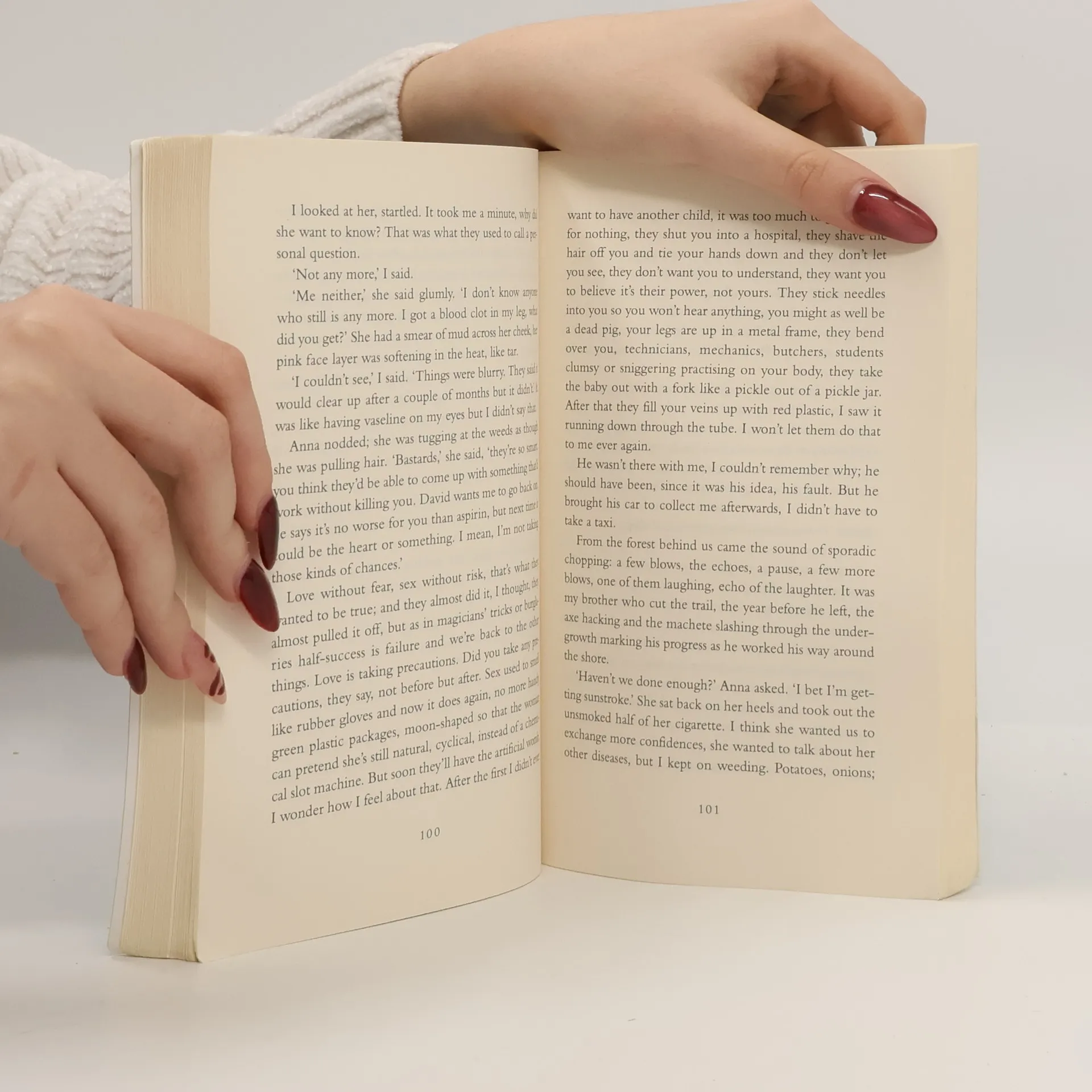 Román nejvýznamnější současné kanadské spisovatelky o hledání vnitřní podstaty člověka uprostřed civilizace a jejích vlivů. Bezejmenná vypravěčka putuje s milencem a dvěma přáteli do krajiny Kanadských jezer hledat zmizelého otce. Ponorem pod hladinu vlastního vědomí však postupně odkrývá svou vnitřní identitu. V románu, kde se střídají pasáže lyricko-naturalistické, psychologické, s pasážemi překvapivě odlehčenými až humornými, vyplouvají na povrch některá palčivá témata současné situace člověka: rozpor mezi „přírodním“ a „kulturním“ lidstvím vedoucí ke ztrátě vnitřní integrity člověka, dichotomie mužského a ženského principu, vyprázdněnost lidských vztahů. Autorka obdržela prestižní literární ocenění Booker's Prize pro rok 2000.