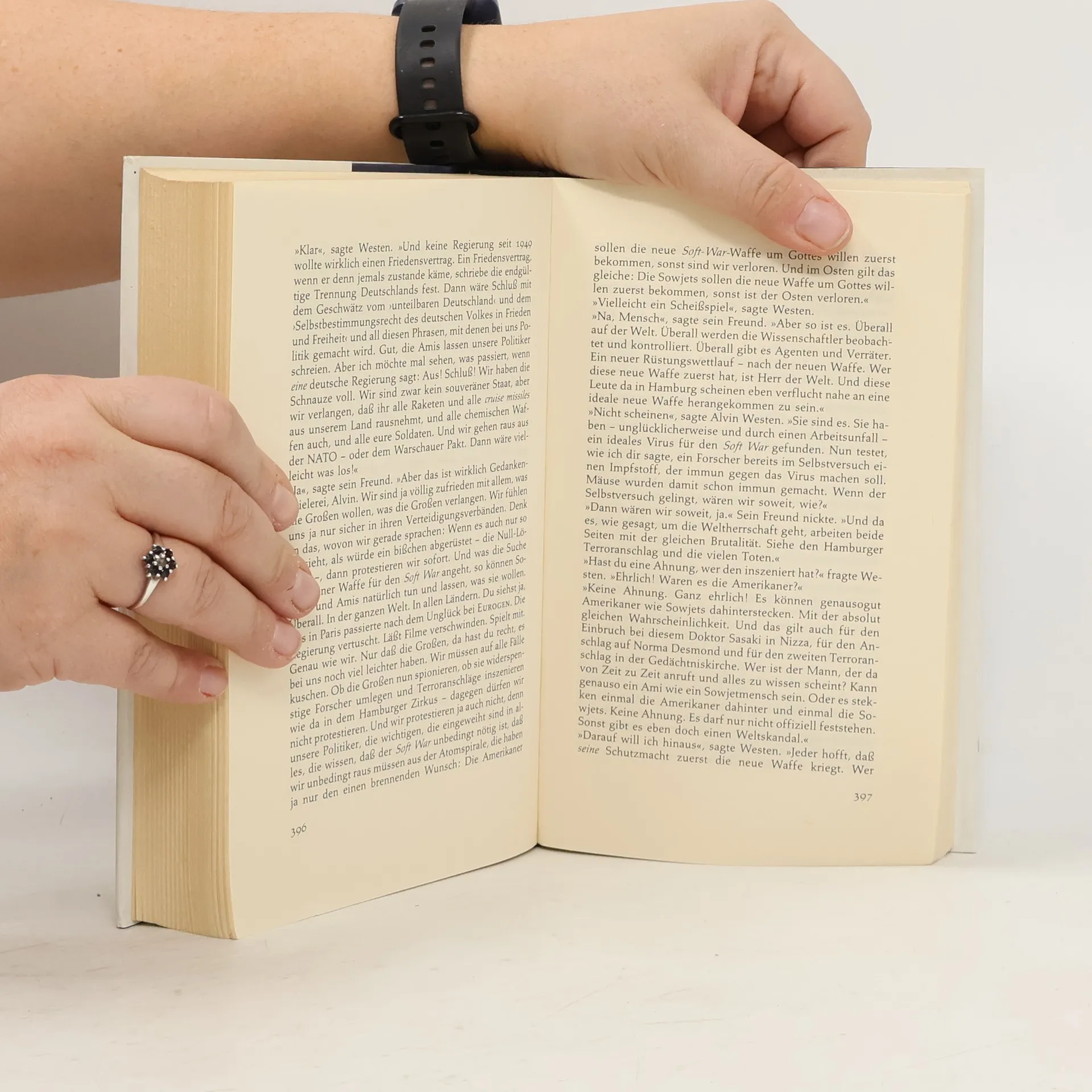 Nun rutteln beide an den Schlossern des scwarzen Koffers. Plotzlich fliegt der Koffer aut. Plotzlich stehen die beiden Clowns nebeneinander. Jeder halt eine Maschinenpistole. Sofort schiessen sie in jenen Sektor des Zuschauerraums, in dem diejunge Frau mit ihrem Sohn und der grauhaarige mann mit siener Familie sitzen. Panik bricht aus. kinder weinen. Manner brullen. Frauen schreien...