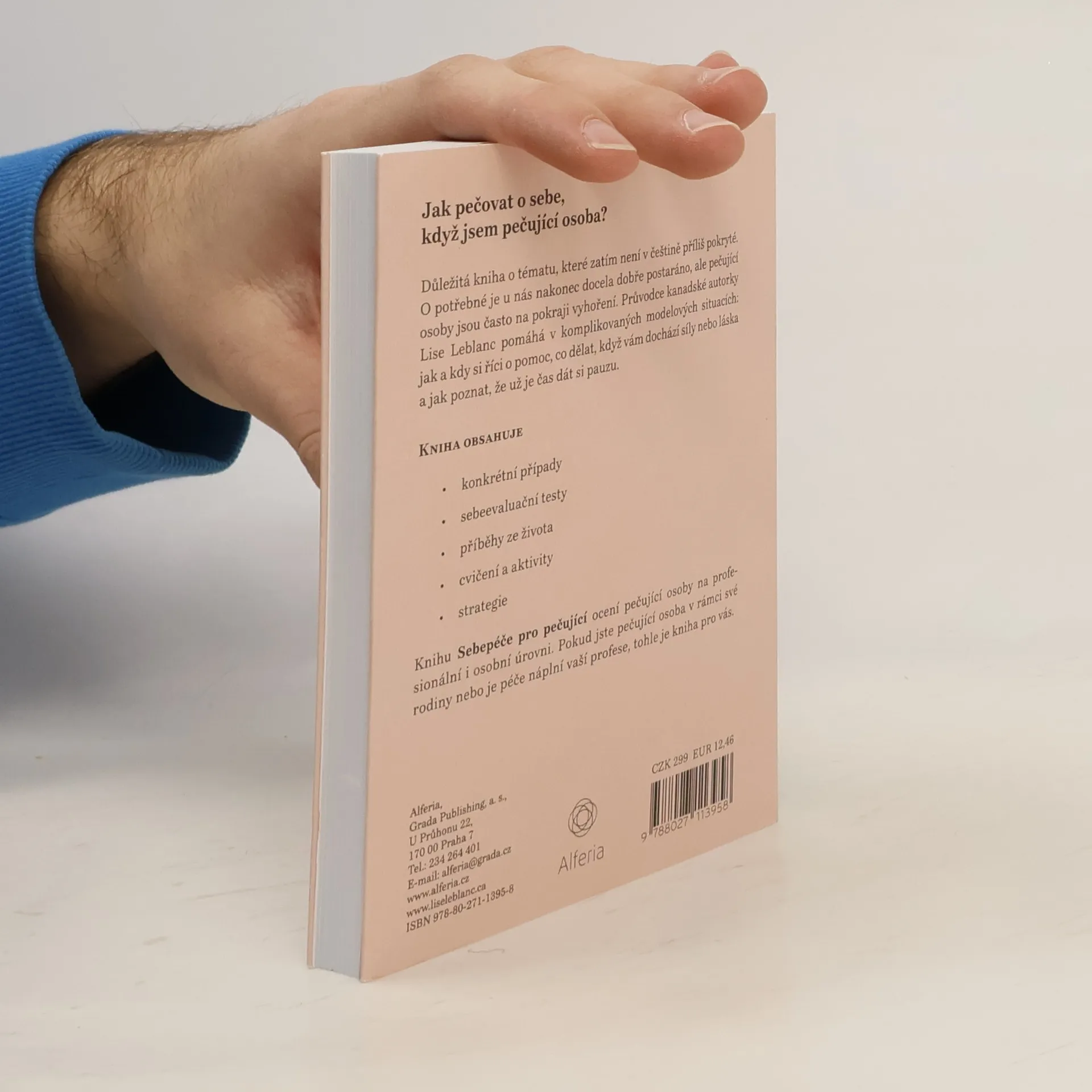 Knihu Sebepéče o pečující ocení pečující osoby na profesionální i osobní úrovni. Pokud jste pečující osoba v rámci své rodiny, nebo je péče náplní vaší profese je to kniha pro vás. Kanadská autorka Lise Leblanc čerpá z osobní zkušenosti i odborné kvalifikace. Jako registrovaná psychoterapeutka, specialistka krizové intervence a pečovatelka má dostatek profesionálních zkušeností a vhledů na to, co se stane, když pečující začne zapomínat na sebe. Její osobní příběh zahrnuje péči o její babičku trpící Alzheimerovou chorobou. Zbytek rodiny byl daleko, chodila k tomu na plný úvazek do práce a starala se o své dvě děti. Na základě této zkušenosti se rozhodla napsat rádce pro lidi v podobně náročných situacích.