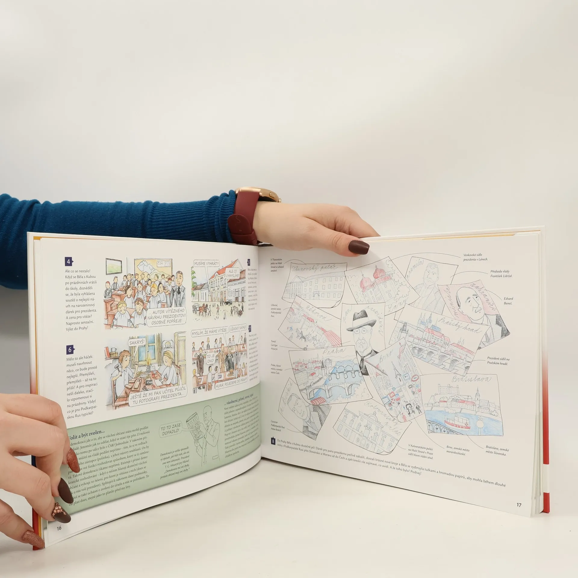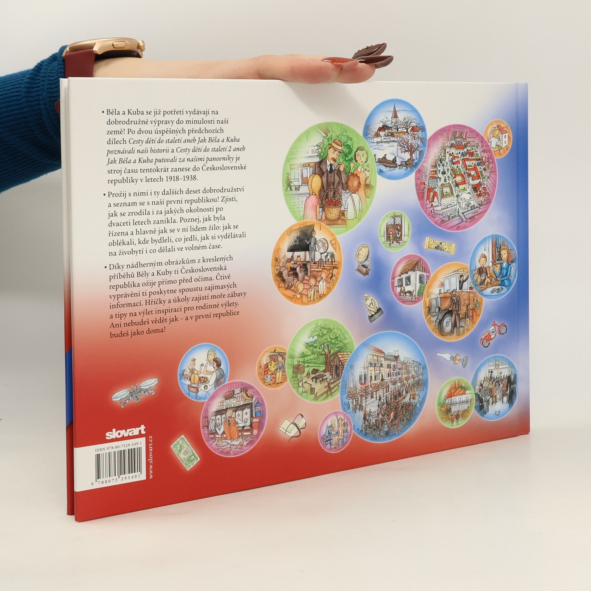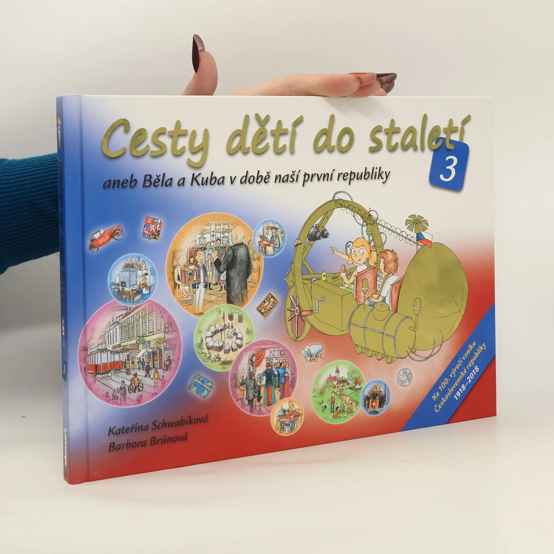 Běla a Kuba se již potřetí vydávají na dobrodružné výpravy do minulosti naší země! Po dvou úspěšných předchozích dílech Cesty dětí do staletí aneb Jak Běla a Kuba poznávali naši historii a Cesty dětí do staletí 2 aneb Jak Běla a Kuba putovali za našimi panovníky je stroj času tentokrát zanesl do Československé republiky v letech 1918 až 1938. Prožij s nimi i ty dalších deset nových dobrodružství a seznam se s naší první republikou, která teď slaví 100. výročí vzniku! Zjisti, jak se zrodila i za jakých okolností po dvaceti letech zanikla. Poznej, jak byla řízena a hlavně jak se v ní lidem žilo: jak se oblékali, kde bydleli, co jedli, jak si vydělávali na živobytí i co dělali ve volném čase. Dozvíš se také, jak se dařilo prvorepublikové kultuře, průmyslu či zemědělství. Díky nádherným obrázkům z kreslených příběhů Běly a Kuby ti Československá republika ožije přímo před očima. Čtivé vyprávění kolem nich ti poskytne spoustu zajímavých informací. Hříčky a úkoly zajistí moře zábavy a tipy na výlet inspiraci pro rodinné výlety. Ani nebudeš vědět jak – a v první republice budeš jako doma!