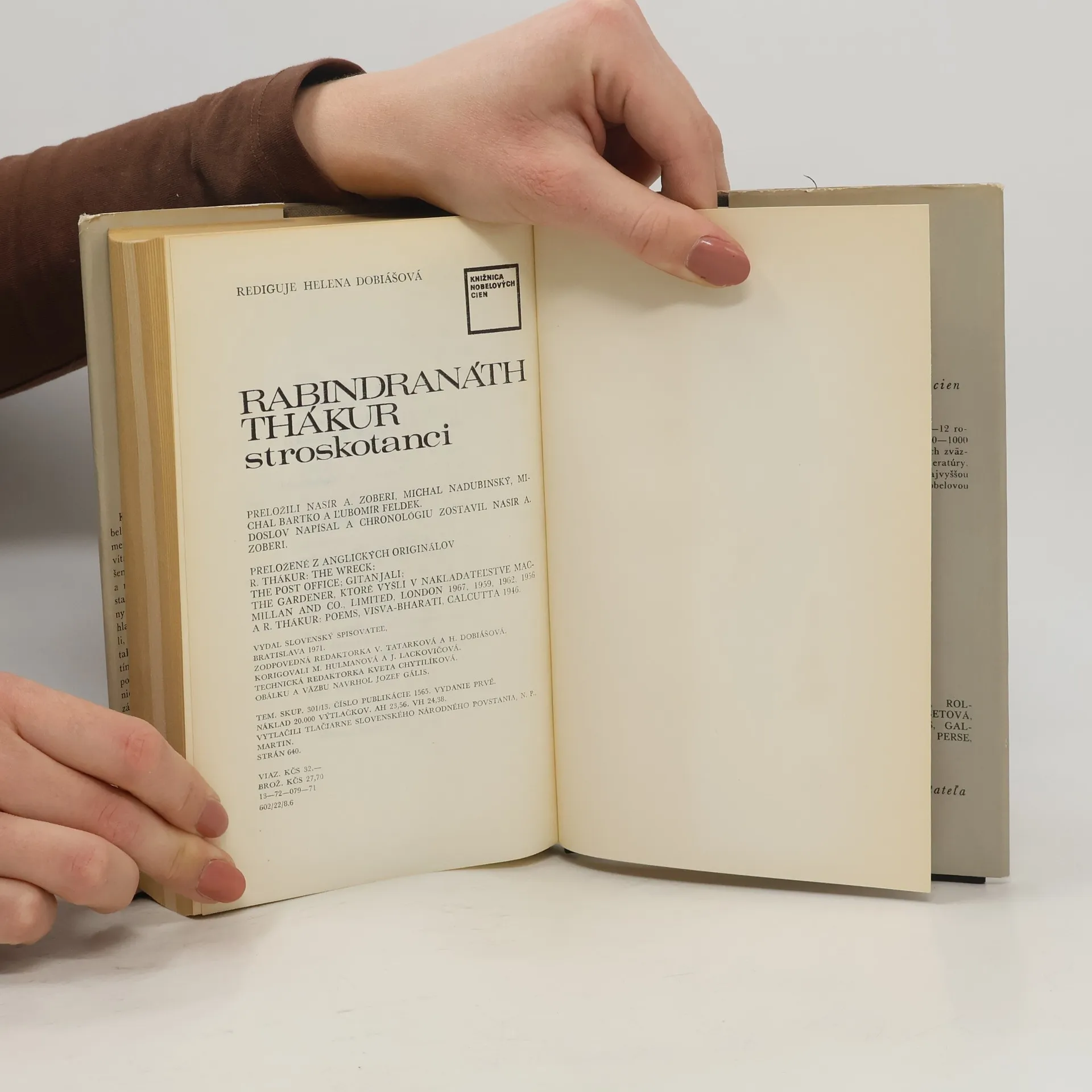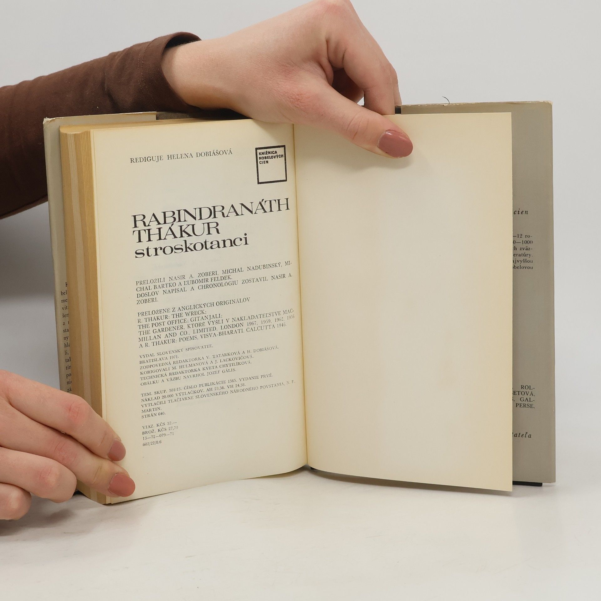 "Keď sa medzi kandidátmi na Nobelovu cenu za rok 1913 zjavilo aj meno R. Thákura, privítala to takmer celá porota s nadšeným súhlasom. Švédsky básnik a románopisec Verner von Heidenstein, takisto nositeľ Nobelovej ceny za literatúru a veľký obdivovateľ hlavne Thákurovho diela Gitándžali, pri tejto príležitosti napísal: "Čítal som tieto verše s hlbokým dojatím a nespomínam si, že by som za posledné desaťročie našiel v poézii niečo podobné. Bol to taký vzácny zážitok, aký možno porovnať len s pôžitkárskym vdychovaním sviežeho jarného vzduchu. Jeho poézia neobsahuje nič sporné alebo nepokojné, nič, čo by nemalo význam... a ak možno o niektorom básnikovi povedať, že má kvality, ktoré ho oprávňujú na Nobelovu cenu, potom Thákur je tým pravým mužom" (z anotácie na prebale) Obsahuje: Stroskotanci; Pošta; Gitándžali; Záhradník; Básne.