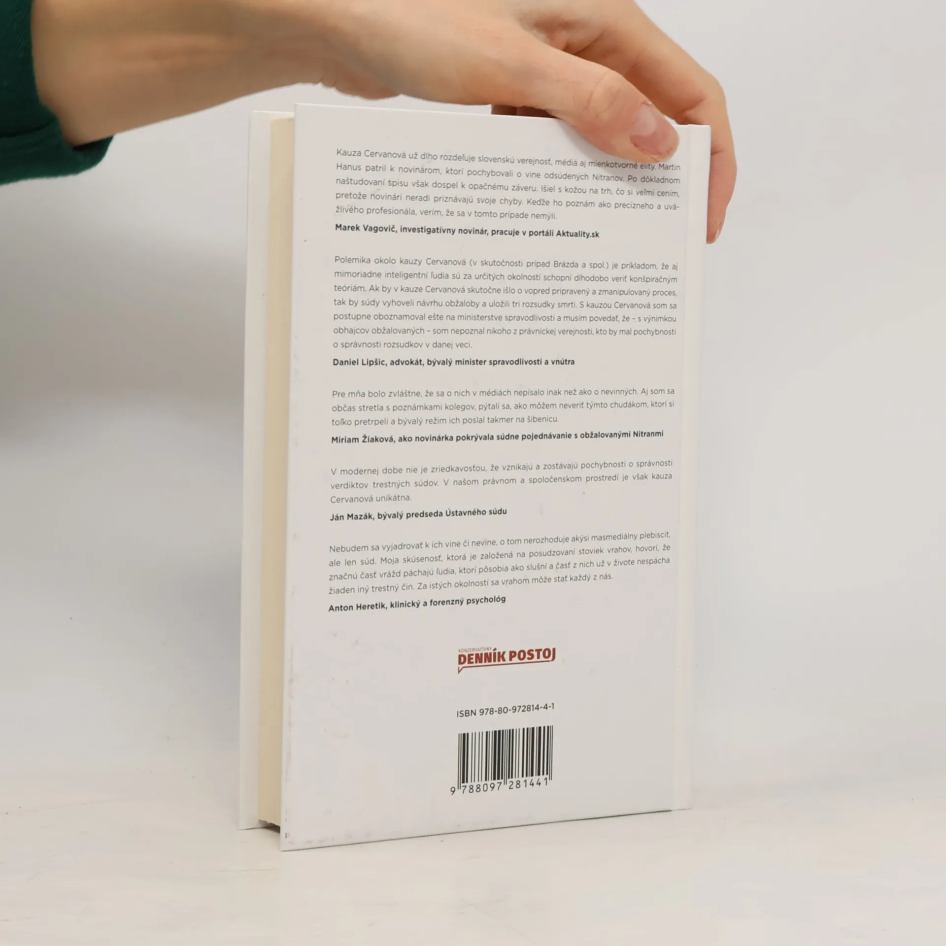 Investigatívna kniha Martina Hanusa o kauze vraždy mladej medičky Ľudmily Cervanovej. Na základe novo objaveného operatívneho spisu ponúka celistvý obraz zločinu, ktorý stále rozdeľuje slovenskú spoločnosť. Úplne nové dokumenty, svedectvá a najmä viac než štvorhodinová nahrávka výpovede kľúčovej svedkyne dávajú definitívnu odpoveď na to, kto spáchal vraždu a celé desaťročia robil všetko preto, aby sa zmarila spravodlivosť.