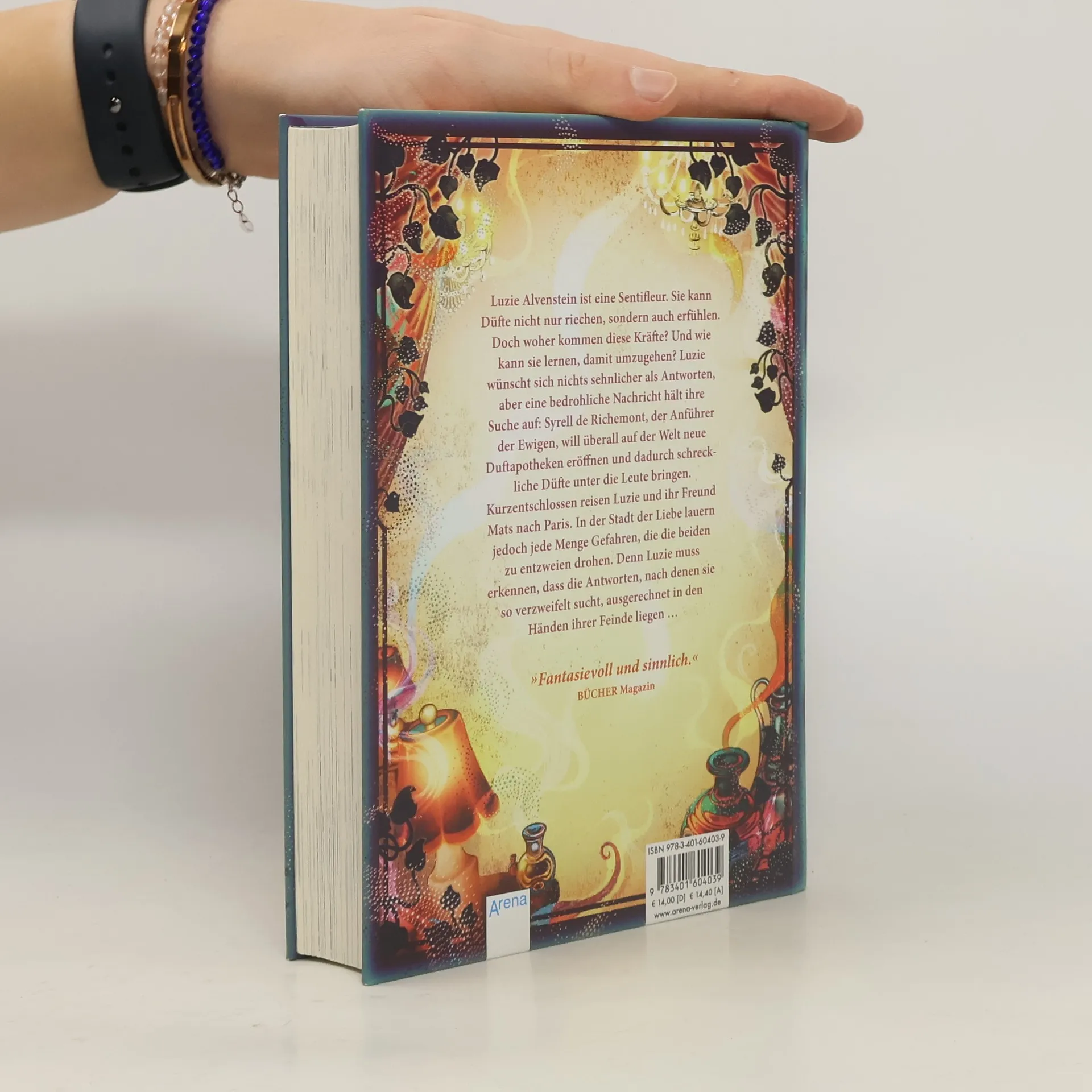 Ein magisch-fantastisches Abenteuer für alle Sinne! Luzie Alvenstein weiß: In den magischen Düften der Duftapotheke schlummern gefährliche Mächte. Mächte, die niemals in die falschen Hände geraten dürfen. Doch als überall in der Stadt seltsame Raumdüfte auftauchen, deren Spur ausgerechnet zu Syrell de Richemont, dem Anführer der Ewigen, führt, weiß Luzie, dass sie sofort handeln muss, bevor alles zu spät ist … Kurzentschlossen reisen Luzie und ihr Freund Mats nach Paris, wo sie sich Antworten erhoffen. Doch in der Stadt der Liebe lauern jede Menge Gefahren und ein lang verborgenes Geheimnis, das Luzie und Mats für immer zu entzweien droht … Der dritte Band der erfolgreichen Bestseller-Kinderbuch-Reihe für Mädchen und Jungs ab 10. Atmosphärisch, sinnlich und fantasievoll erzählt von Erfolgsautorin Anna Ruhe. Mit großem, 4-farbigem Duftplan-Poster und Schwarz-weiß-Illustrationen von Claudia Carls („Woodwalkers“, „Alea Aquarius“). „Die Duftapotheke“: Ausgezeichnet mit dem Leipziger Lesekompass 2018 und der Ulmer Unke 2018. „Die Duftapotheke ist eine spannende Abenteuergeschichte voller Fantasie und überraschender Wendungen.“ - Münchner Merkur „Fantasievoll und sinnlich.“ - BÜCHER Magazin „Ein echt duftes Kinderbuch!“ - empfohlen vom Literaturkurier auf FAZ. net