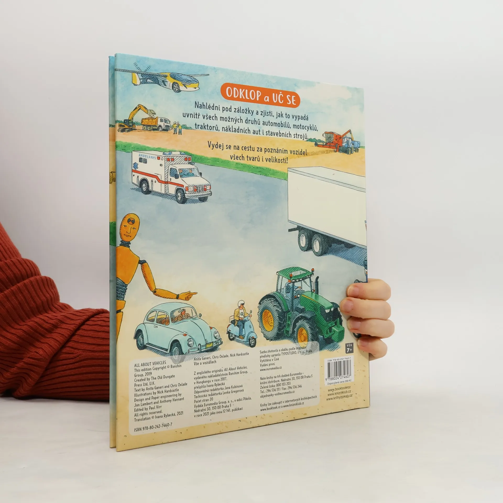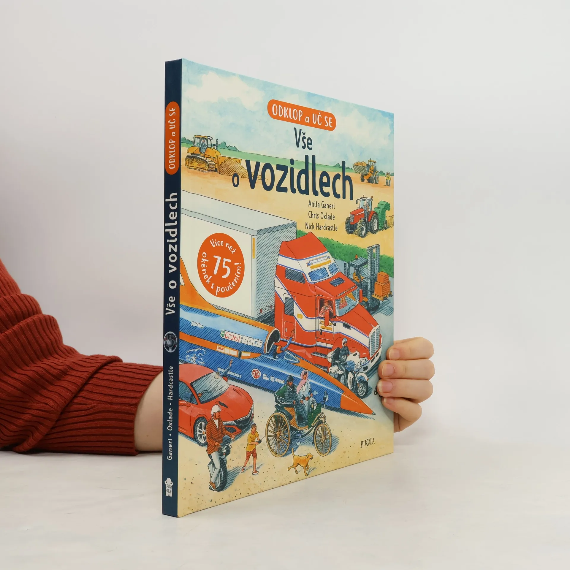 Zajímají tě auta a vše na čtyřech či dvou kolech? V tom případě je tato kniha určena právě tobě! Podívej se pod kapotu svým oblíbeným automobilům, nahlédni pod otevírací okénka a poznej, z čeho se skládá motor. Díky rozkládacím stránkám zjistíš, jak auta fungují a co se děje uvnitř. A nezůstane jenom u aut, najdeš tu i parádní motorky, traktory, nákladní auta, stavební vozidla a auta budoucnosti. Pro děti od 7 let.