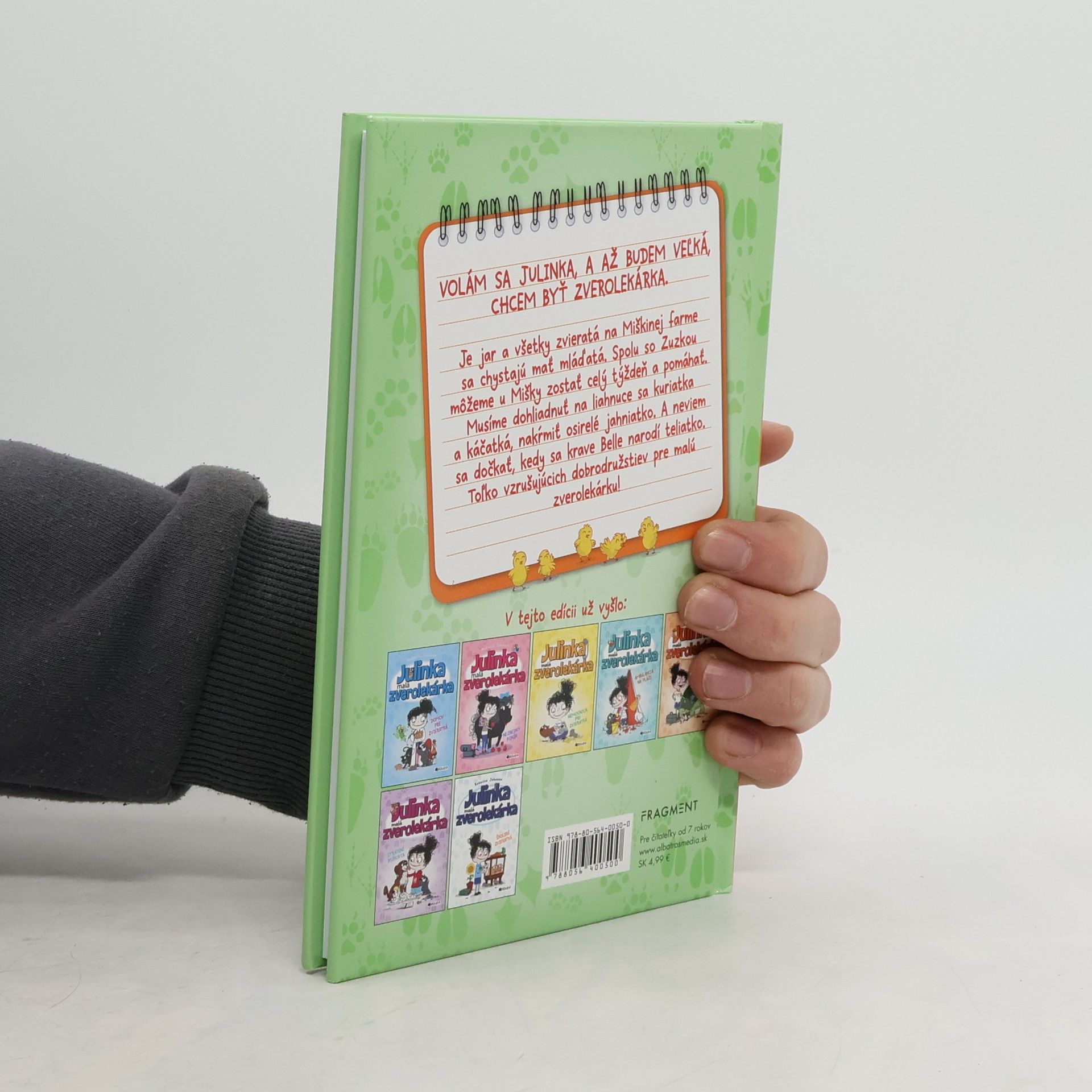 Volám sa Julinka, a až budem veľká, chcem byť zverolekárka. Je jar a všetky zvieratá na Miškinej farme sa chystajú mať mláďatá. Spolu so Zuzkou môžeme u Mišky zostať celý týždeň a pomáhať. Musíme dohliadnuť na liahnuce sa kuriatka a kačiatka, nakŕmiť osirelé jahniatko. A neviem sa dočkať, kedy sa krave Belle narodí teliatko. Toľko vzrušujúcich dobrodružstiev pre malú zverolekárku!