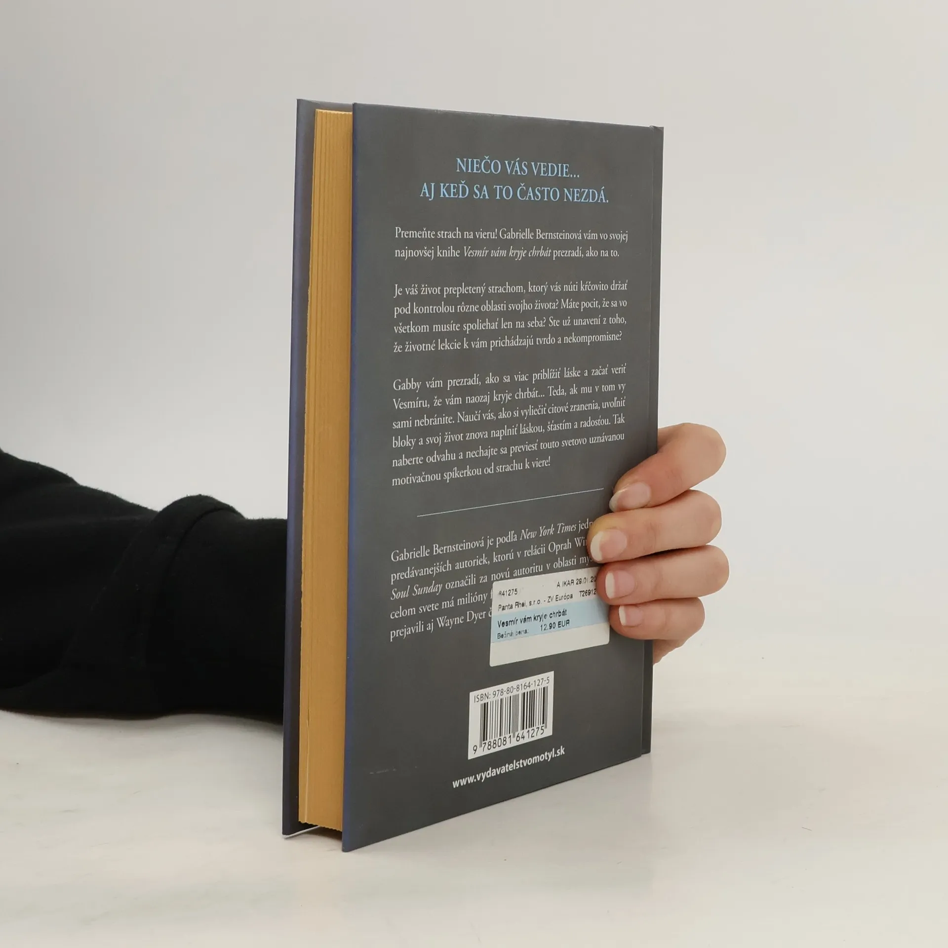 Niečo vás vedie... Aj keď sa to často nezdá Premeňte strach na vieru! Gabrielle Bernsteinová vám vo svojej najnovšej knihe Vesmír vám kryje chrbát prezradí, ako na to. Je váš život prepletený strachom, ktorý vás núti kŕčovito držať pod kontrolou rôzne oblasti svojho života? Máte pocit, že sa vo všetkom musíte spoliehať len na seba? Ste už unavení z toho, že životné lekcie k vám prichádzajú tvrdo a nekompromisne? Gabby vám prezradí, ako sa viac priblížiť láske a začať veriť Vesmíru, že vám naozaj kryje chrbát... Teda, ak mu v tom vy sami nebránite. Naučí vás, ako si vyliečiť citové zranenia, uvoľniť bloky a svoj život znova naplniť láskou, šťastím a radosťou. Tak naberte odvahu a nechajte sa previesť touto svetovo uznávanou motivačnou spíkerkou od strachu k láske!
