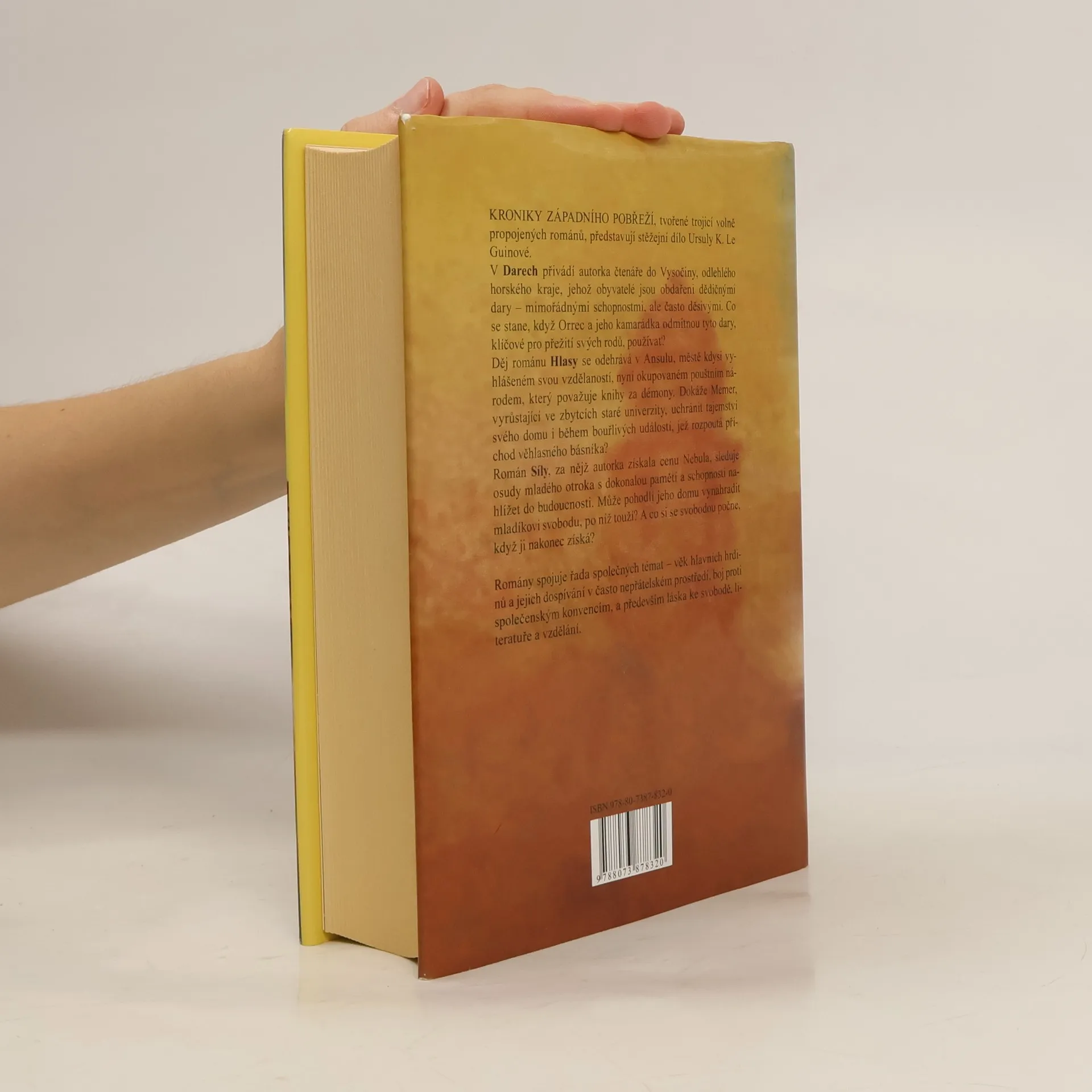 Kroniky Západního pobřeží: omnibus. Kroniky Západního pobřeží, tvořené trojicí volně propojených románů, představují stěžejní dílo Ursuly K. Le Guinové. V Darech přivádí autorka čtenáře do Vysočiny, odlehlého horského kraje, jehož obyvatelé jsou obdařeni dědičnými dary – mimořádnými schopnostmi, ale často děsivými. Co se stane, když Orrec a jeho kamarádka odmítnou tyto dary, klíčové pro přežití svých rodů, používat? Děj románu Hlasy se odehrává v Ansulu, městě kdysi vyhlášeném svou vzdělaností, nyní okupovaném pouštním národem, který považuje knihy za démony. Dokáže Memer, vyrůstající ve zbytcích staré univerzity, uchránit tajemství svého domu i během bouřlivých událostí, jež rozpoutá příchod věhlasného básníka? Román Síly, za nějž autorka získala cenu Nebula, sleduje osudy mladého otroka s dokonalou pamětí a schopností nahlížet do budoucnosti. Může pohodlí jeho domu vynahradit mladíkovi svobodu, po níž touží? A co si se svobodou počne, když ji nakonec získá? Romány spojuje řada společných témat – věk hlavních hrdinů a jejich dospívání v často nepřátelském prostředí, boj proti společenským konvencím, a především láska ke svobodě, literatuře a vzdělání.