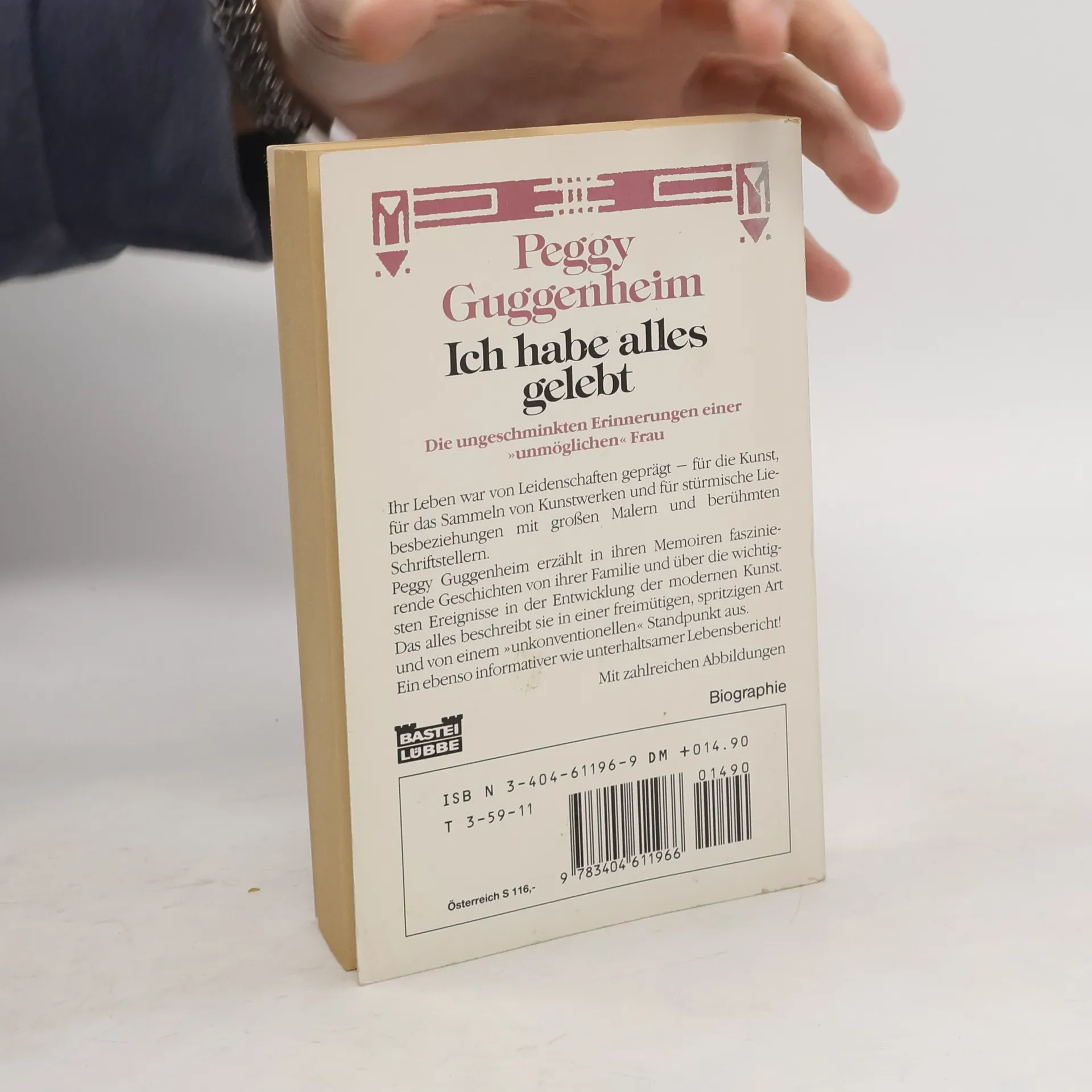 Sie sammelte Männer und Kunst. Die Männer gingen, die Kunst blieb. In ihren respektlosen Memoiren plaudert Peggy Guggenheim (1898 - 1979) anekdotenreich über ihre stürmischen Liebesaffären mit berühmten Künstlern wie Max Ernst, Jackson Pollock und Marcel Duchamp, über den mächtigen Guggenheim-Clan sowie über ihre provokanten Kunstausstellungen. Entstanden ist dabei nicht nur das schillernde Porträt eine außergewöhnliche Frau, sondern zugleich auch eine unterhaltsame Dokumentation über einen bedeutenden Abschnitt der modernen Kunstgeschichte. Dies ist die erste ungekürzte deutsche Ausgabe der berühmten Autobiographie Peggy Guggenheims. Mit zahlreichen bisher unveröffentlichten Abbildungen.