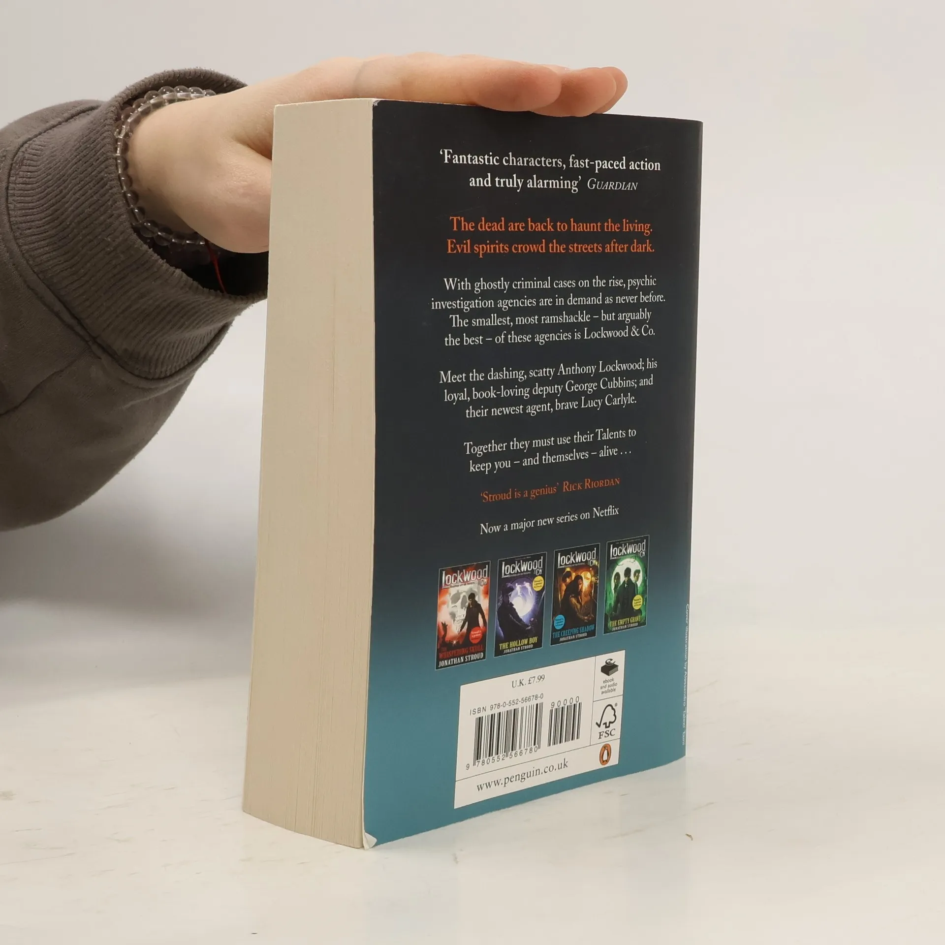 "When the dead come back to haunt the living, Lockwood & Co. step in . . . For more than fifty years, the country has been affected by a horrifying epidemic of ghosts. A number of Psychic Investigations Agencies have sprung up to destroy the dangerous apparitions. Lucy Carlyle, a talented young agent, arrives in London hoping for a notable career. Instead she finds herself joining the smallest most ramshackle agency in the city, run by the charismatic Anthony Lockwood. When one of their cases goes horribly wrong, Lockwood & Co. have one last chance of redemption. Unfortunately this involves spending the night in one of the most haunted houses in England, and trying to escape alive. Set in a city stalked by spectres, The Screaming Staircase is the first in a chilling new series full of suspense, humour and truly terrifying ghosts. Your nights will never be the same again . . ."