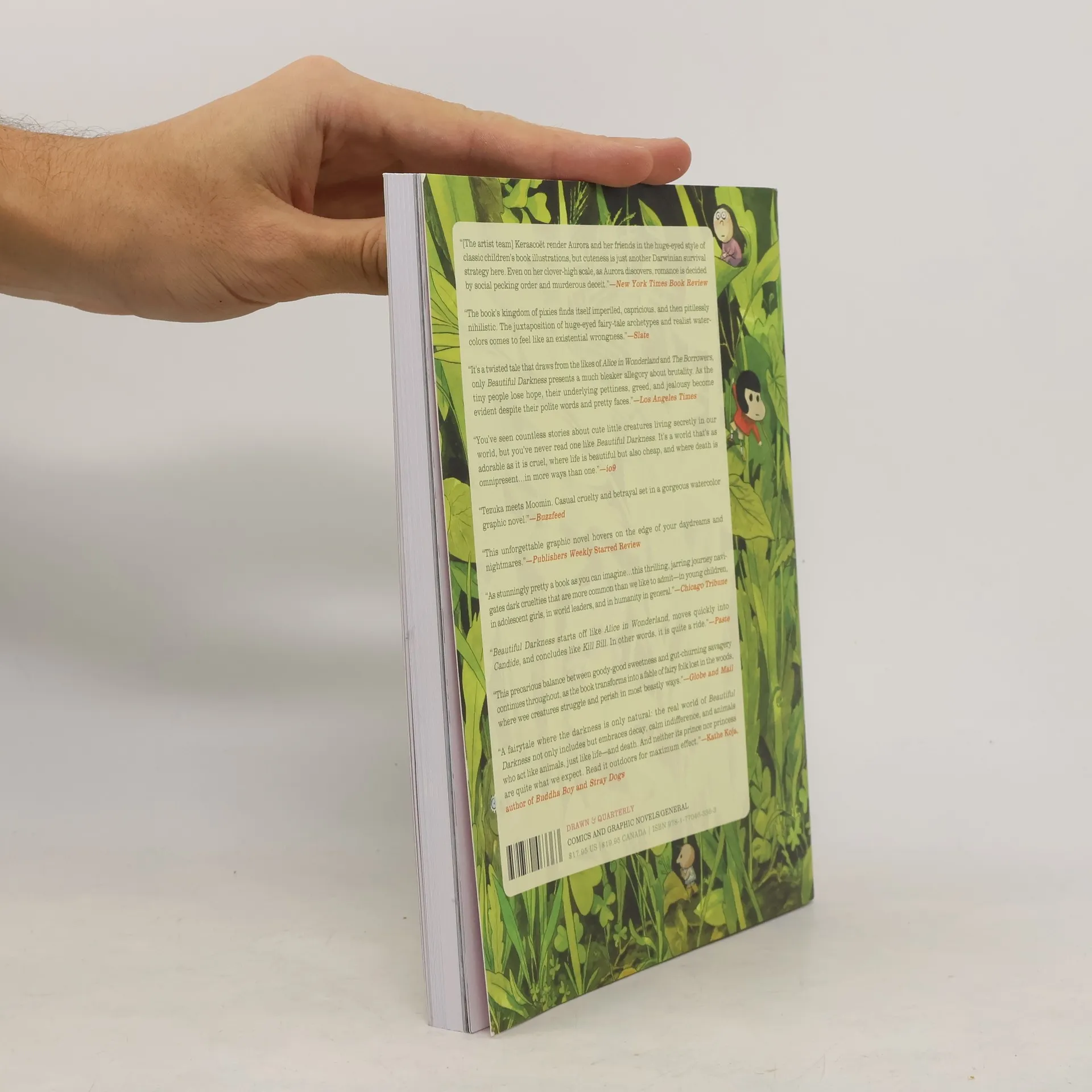 A group of little people find themselves without a home in this horror fantasy classic Newly homeless, a group of fairies find themselves trying to adapt to their new life in the forest. As they dodge dangers from both without and within, optimistic Aurora steps forward to organize and help build a new community. Slowly, the world around them becomes more treacherous as petty rivalries and factions form. Beautiful Darkness became a bestseller and an instant classic when it was released in 2014. This paperback edition of the modern horror classic contains added material, preparatory sketches, and unused art. While Kerascoët mix gorgeous watercolors and spritely cartoon characters, Fabien Vehlmann takes the story into bleaker territory as the seasons change and the darkness descends. As with any great horror, there are moments of calm and jarring shocks while a looming dread hangs over the forest.