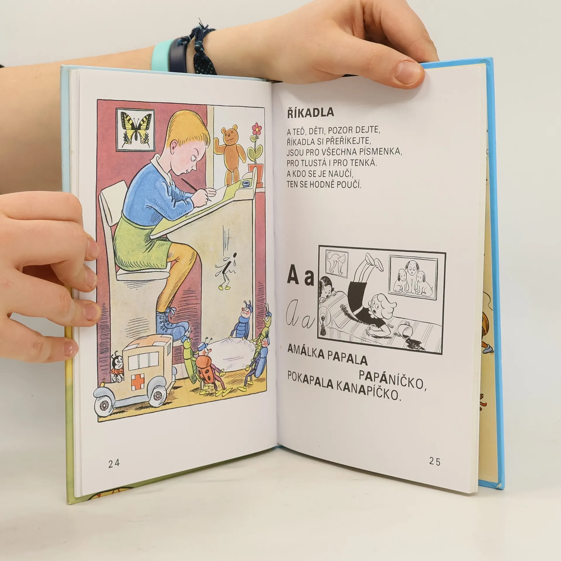 Průvodcem po slabikáři je postavička Ferdy Mravence, který představuje jednotlivá písmena říkankou a didaktickým vyprávěním ozřejmuje správné návyky při psaní. Velká písmena a množství ilustrací předurčují knížku k prvnímu čtení pro nejmenší.