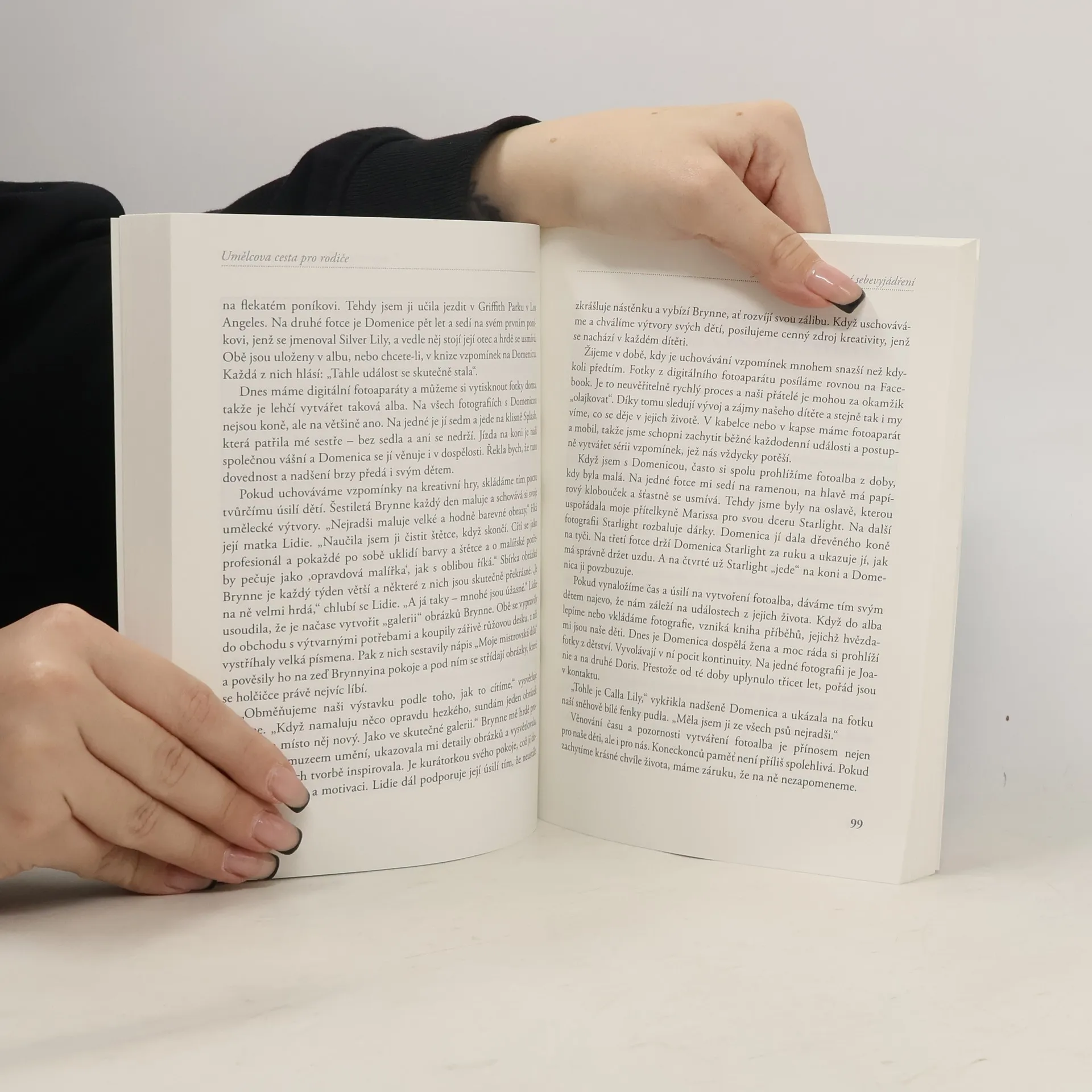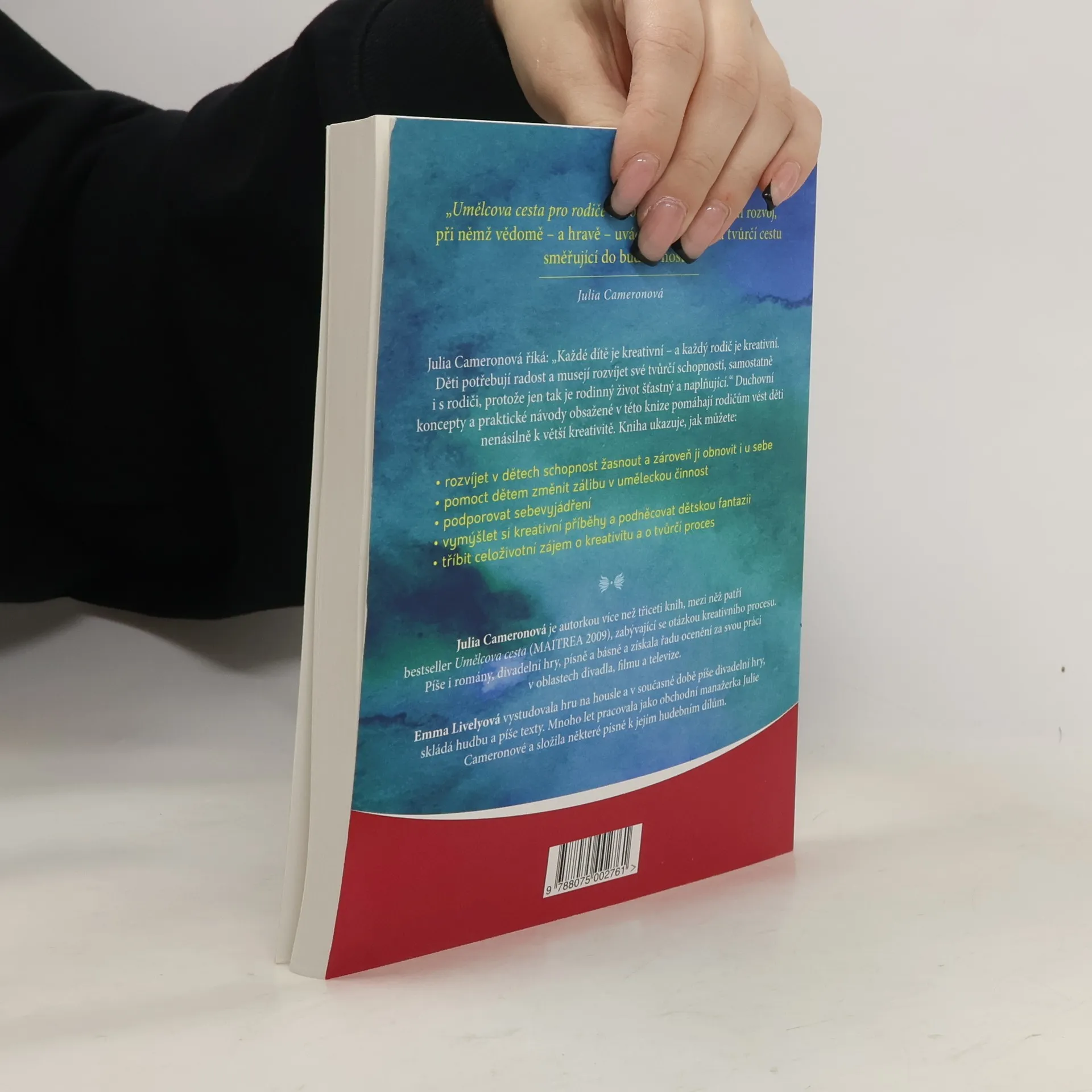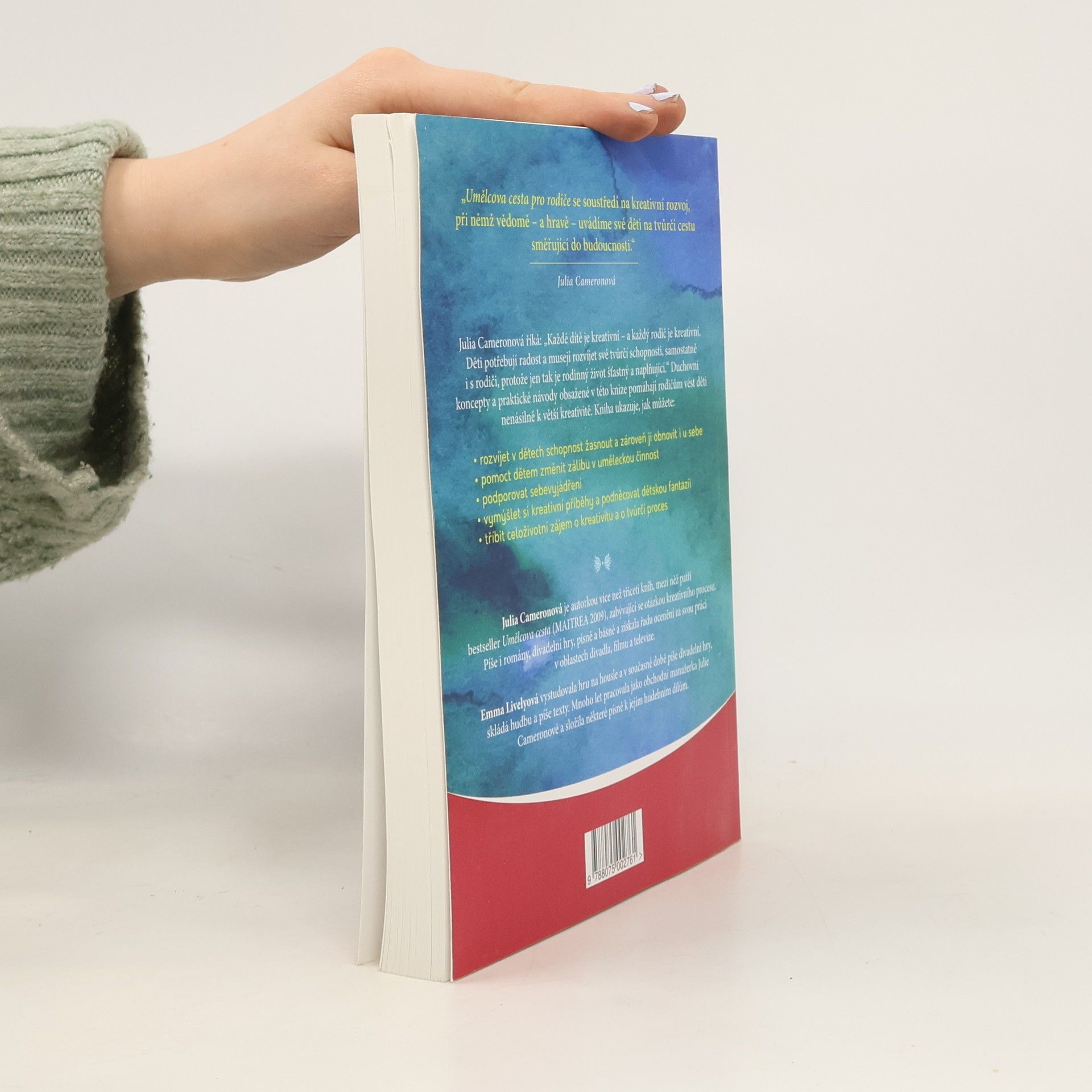 Autorka bestselleru Umělcova cesta přichází s dalším skvělým příspěvkem ke své rozsáhlé práci na tvůrčím procesu. Umělcova cesta pro rodiče nabízí celou řadu rad a návodů, jaké mohou rodiče dlouhodobě využívat – a pořád se k nim vracet – v jakékoli situaci při výchově dětí raného věku. Julia Cameronová říká: „Každé dítě je kreativní – a každý rodič je kreativní. Děti potřebují radost a musejí rozvíjet své tvůrčí schopnosti, samostatně i s rodiči, protože jen tak je rodinný život šťastný a naplňující.“ Kniha Umělcova cesta se zaměřuje na rodiče a děti od narození do dvanácti let. Jejím základem je Umělcova cesta, kterou přizpůsobuje pro další generace. Duchovní koncepty a praktické návody obsažené v této knize pomáhají rodičům vést děti nenásilně k větší kreativitě. Kniha ukazuje, jak můžete: • rozvíjet v dětech schopnost žasnout a zároveň ji obnovit i u sebe, • pomoct dětem změnit zálibu v uměleckou činnost, • podporovat sebevyjádření, • vymýšlet si kreativní příběhy a podněcovat dětskou fantazii, • tříbit celoživotní zájem o kreativitu a o tvůrčí proces.
