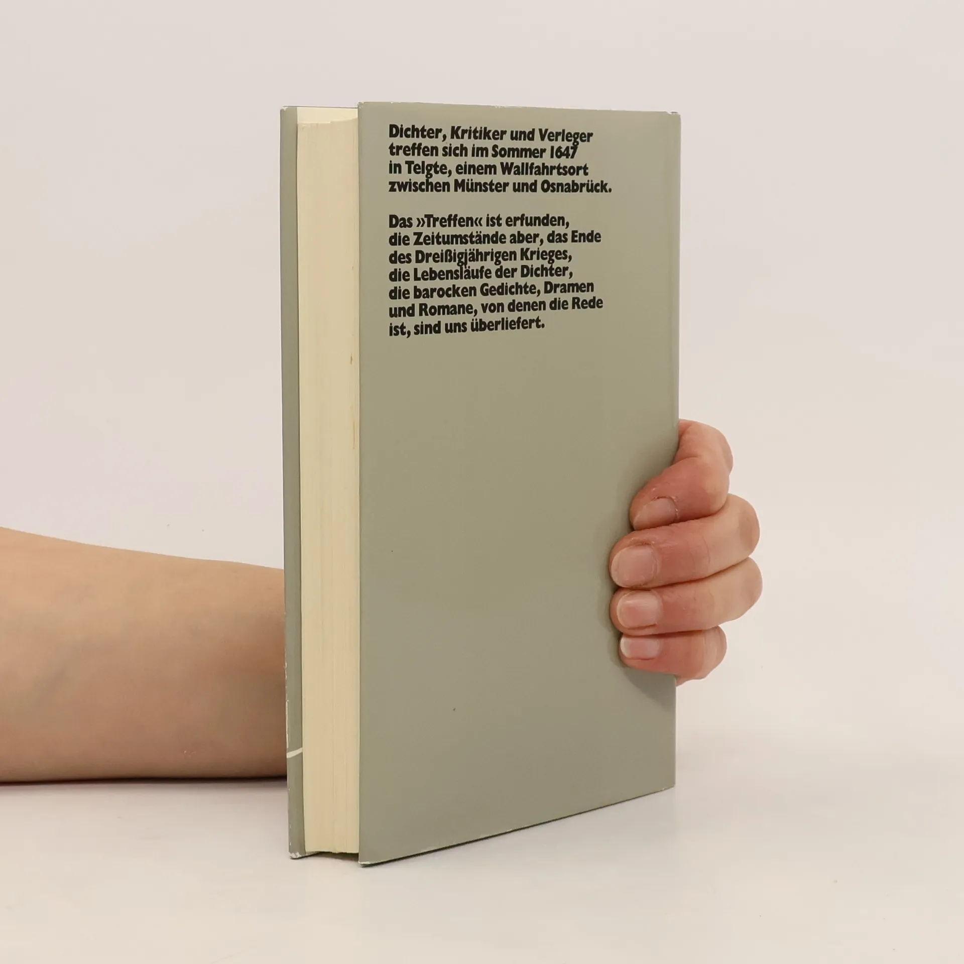 Im Sommer 1647, im letzten Jahr des Dreißigjährigen Krieges, treffen sich in Telgte, einem Wallfahrtsort zwischen Münster und Osnabrück, über zwanzig Dichter, Kritiker und Verleger deutscher Sprache. Eingeladen hat Simon Dach; unter teils abenteuerlichen Umständen, zu Pferd und mit der Kutsche, reisen Gryphius und Paul Gerhardt, Zesen, Harsdörffer, Hoffmannswaldau, der junge Grimmelshausen an. In der Wirtsdiele des Brückenhofs an der Ems lesen sie sich aus ihren Manuskripten vor und reden, \"wenn auch vom Rande her nur, ein politisches Wörtchen\" mit. \"Schließlich war man wer. Wo alles wüst lag, glänzten einzig die Wörter. Und wo sich Fürsten erniedrigt hatten, fiel den Dichtern Ansehen zu. Ihnen, und nicht den Mächtigen, war Unsterblichkeit sicher.\" Sie reden, trinken, essen, stellen auch den Mägden nach; das Ende kommt unvermutet. Das Treffen in Telgte ist Fiktion. Günter Grass erfindet, was hätte sein können, wenn deutsche Barockdichter tatsächlich einmal so zusammengefunden hätten wie dreihundert Jahre später die Gruppe 47. Die Zeitumstände aber, das Ende des Dreißigjährigen Krieges, sind Geschichte, die Lebensläufe der Dichter sind historische Lebensläufe; die barocken Gedichte, Dramen und Romane, von denen die Rede ist, sind uns überliefert. So spielt Das Treffen in Telgte zwischen damals und heute in Zeiten politischer Verwilderung und Wirrnis.