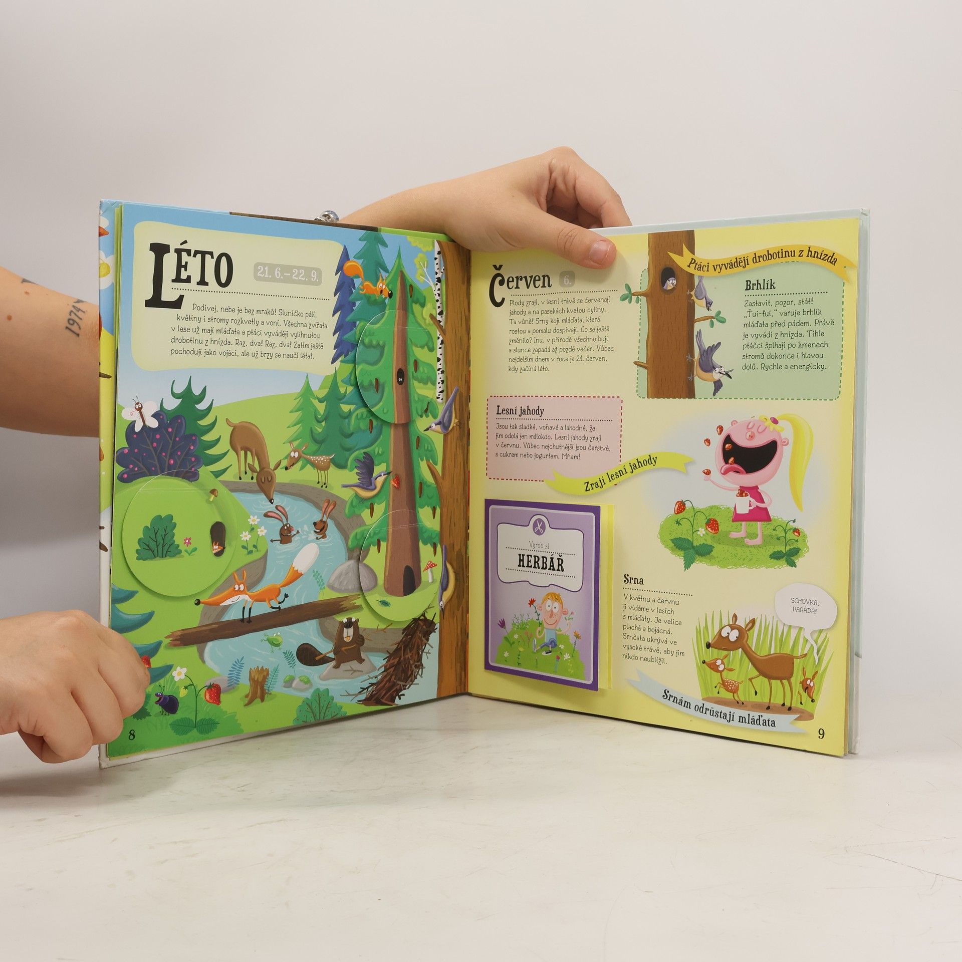 Bum! Bác! Ze stromů padají žaludy. Nebo že by to byly šišky? No jasně! Shodila je veverka, skočila ze stromu na strom a schovala se ve větvích. Uličnice! Zajdi se podívat za roztomilou akrobatkou i za jejími kamarády do lesa! Otevři knihu a zjisti, kdy co roste, jak se chovají zvířata, kdo je jedním z nejtajemnějších obyvatel lesů a skal, co dělá kuna po setmění nebo proč hadi vyplazují jazyk. Naučíš se rozlišovat zvířecí stopy a vyrobíš si svůj první herbář. Tak vzhůru do lesa za dobrodružstvím!