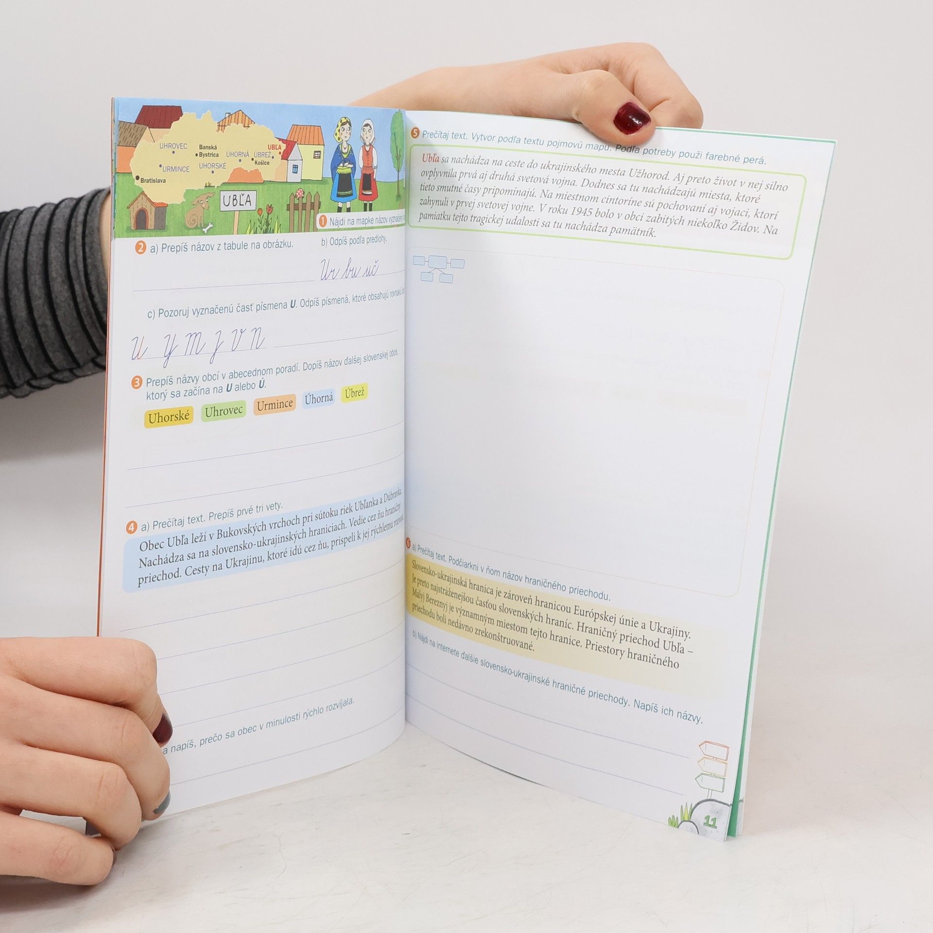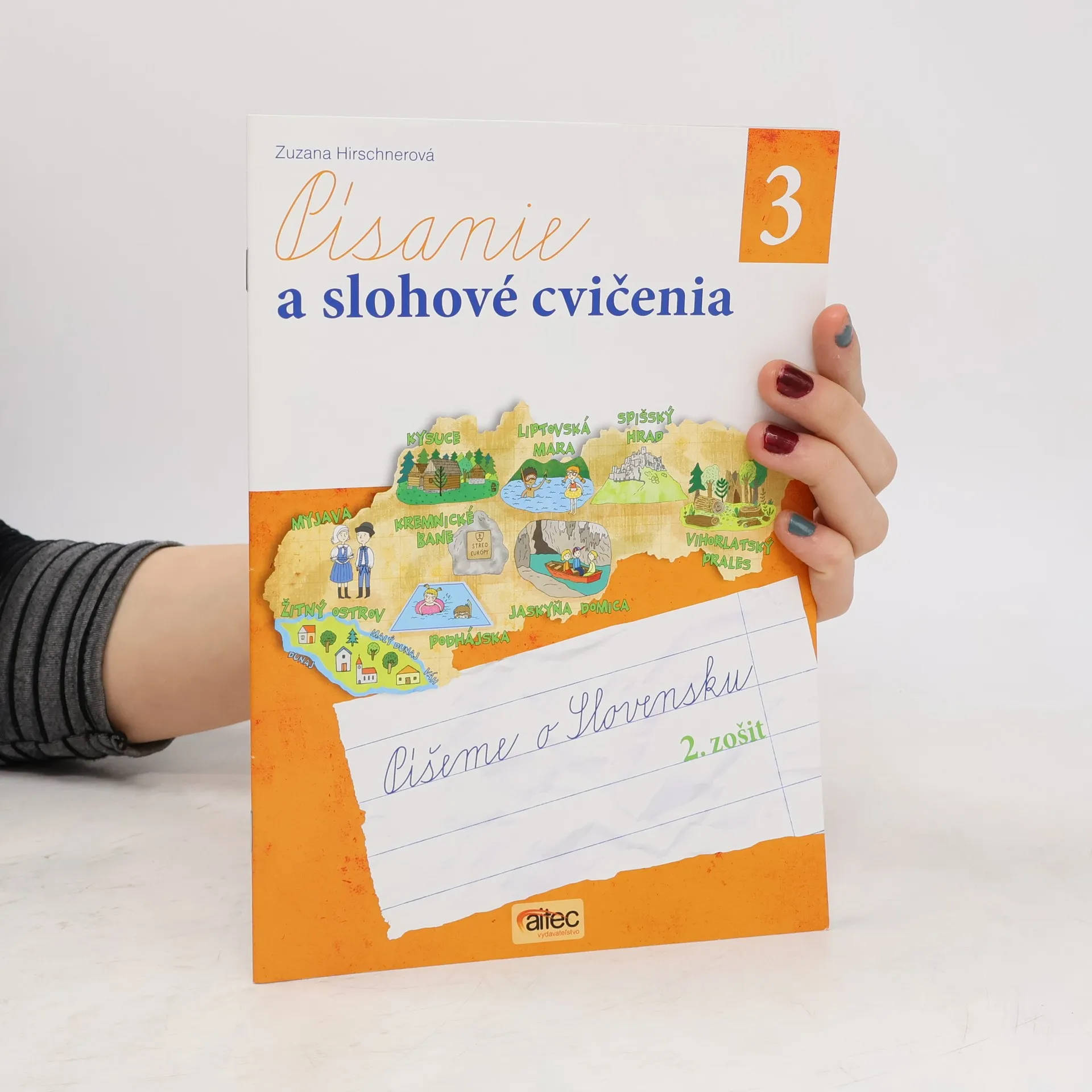 Pracovný zošit Písanie a slohové cvičenia 3, autorstva Zuzany Hirschnerovej, je rozdelený na dve časti a zameriava sa na písanie o Slovensku. Obsahuje dvojstrany venované jednotlivým písmenám abecedy, pričom každá dvojstrana tematicky súvisí s konkrétnou obcou alebo zaujímavým miestom na Slovensku. Úvodné ilustrácie a mapa poskytujú prehľad o daných lokalitách. Úlohy sú orientované na prepis názvov obcí a miest, odpis problematických spojov a zaraďovanie písmen do tvarových skupín. Prvá časť pracovného zošita obsahuje aj úlohy na čítanie autentických rukopisov, identifikáciu problémových miest a korekciu vlastného písania. V druhej časti sa žiaci zameriavajú na texty, vyhľadávajú informácie a oboznamujú sa s pojmom päťriadok, pričom začínajú chápať jednotlivé kroky slohového postupu. Dôležitou súčasťou je aj tvorba textov, kde žiaci pretransformujú nesúvislý text na súvislý a naopak, pričom pracujú s kľúčovými informáciami. Pracovný zošit ponúka aj didaktické hry na písanie a na konci tematických strán majú žiaci možnosť ohodnotiť svoju úspešnosť.