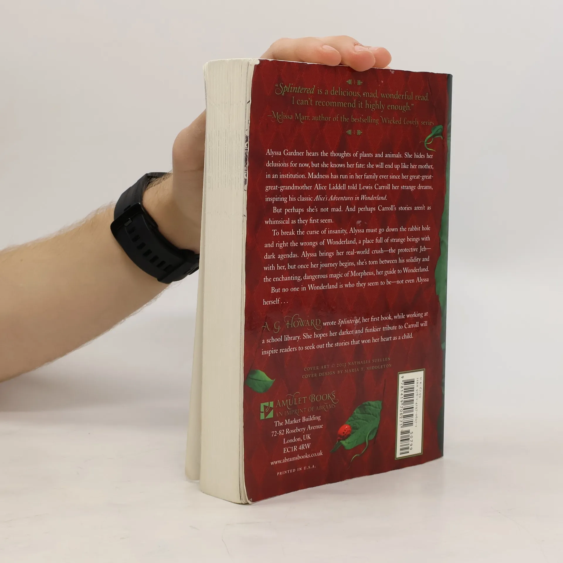 Alyssa Gardner, directly descended from Alice Liddell, the real life inspiration for Alice's Adventures In Wonderland, hears the whispers of bugs and flowers, precisely the problem that landed her mother in a mental hospital years before. When her mother becomes worse and the whispers grow too strong to bear, Alyssa realises she must find the origins of the family curse, a search that leads her through a cracked mirror into the real Wonderland, a place far darker and more twisted than Lewis Carroll ever let on. There she must decide whom to trust: Jeb, her gorgeous best friend and secret crush, or the sexy but suspicious Morpheus, her guide through Wonderland who may have dark motives all of his own