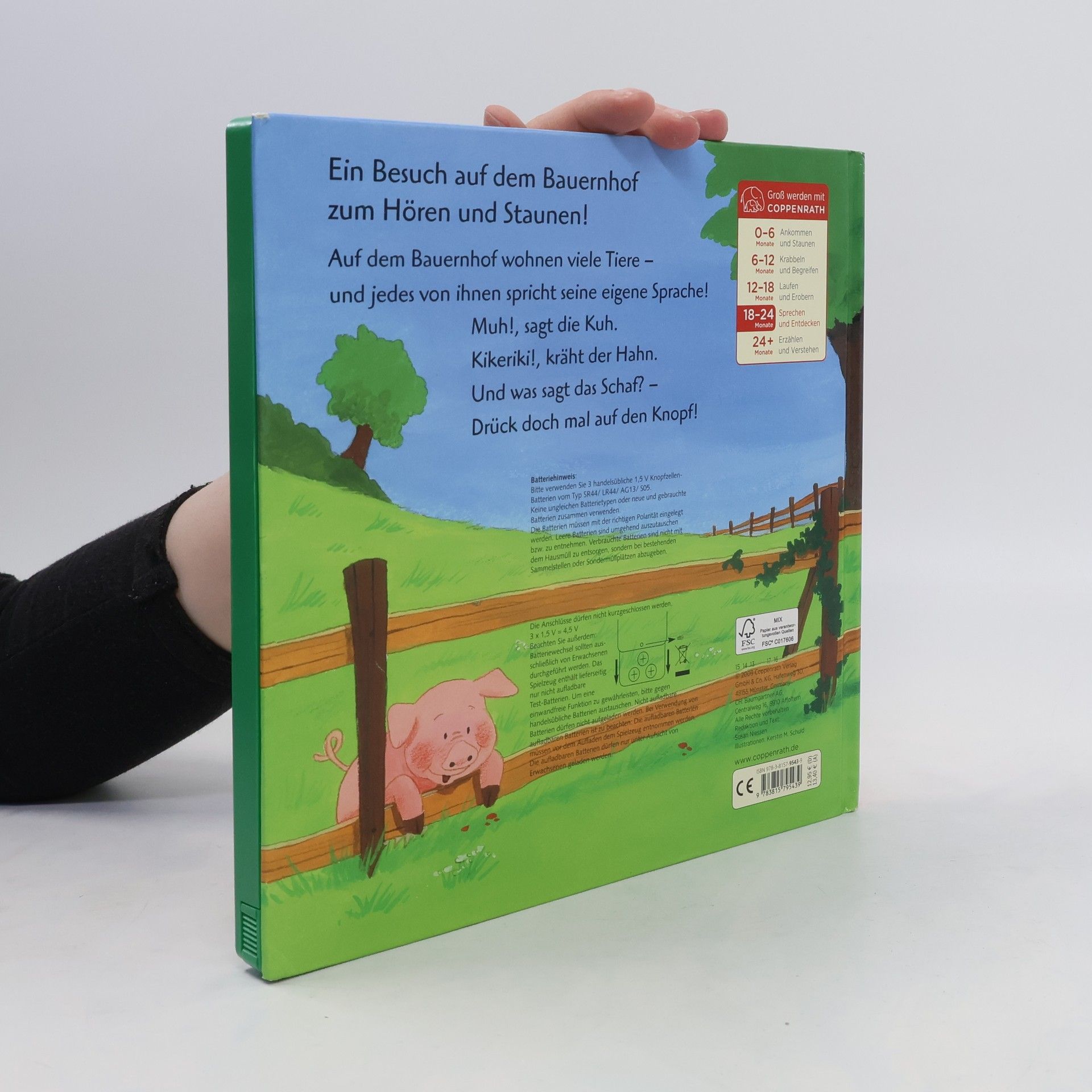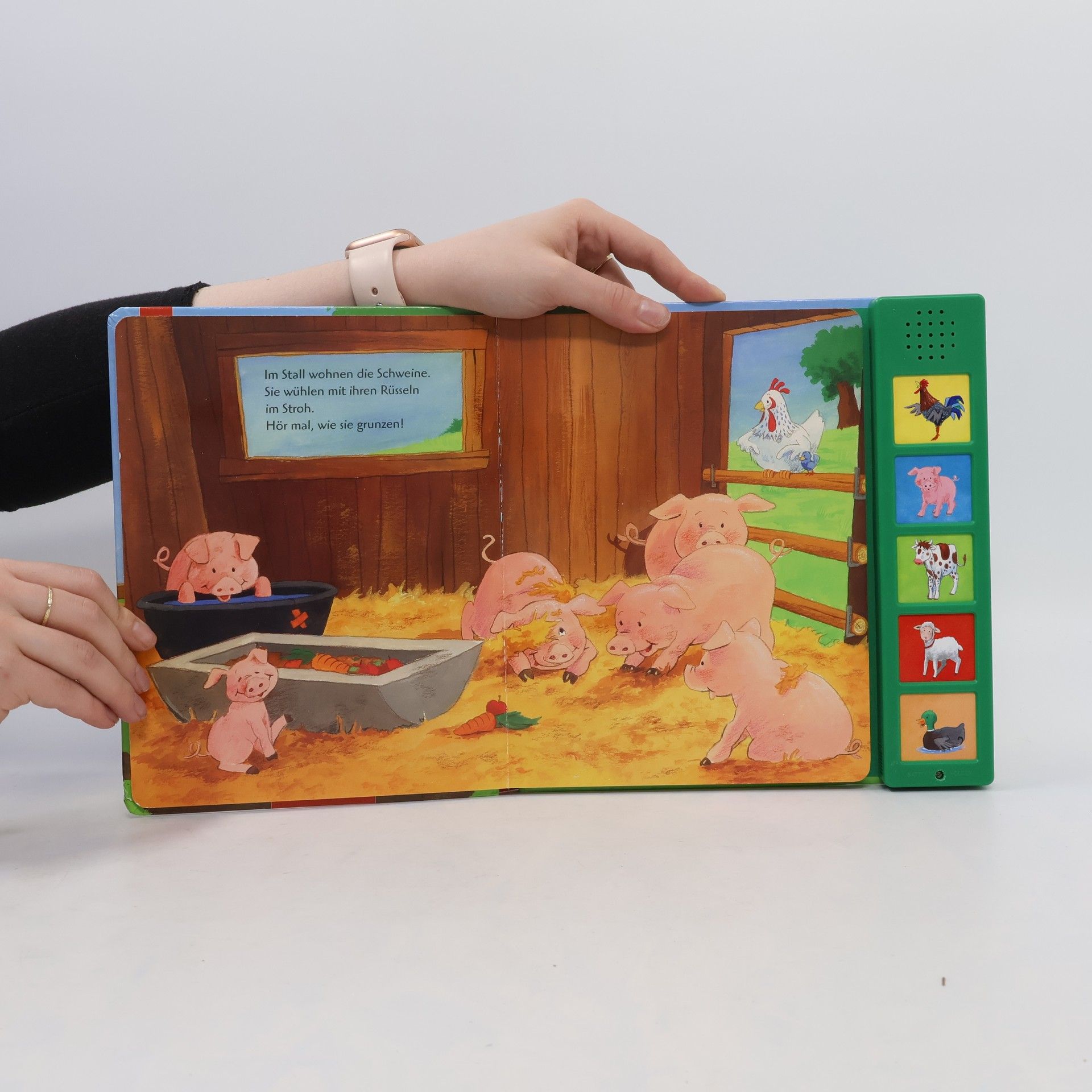 Ein Besuch auf dem Bauernhof zum Hören und Staunen! Auf dem Bauernhof wohnen viele Tiere - und jedes von ihnen spricht seine eigene Sprache! Muh!, sagt die Kuh. Kikeriki!, kräht der Hahn. Und was sagt das Schaf? - Drück doch mal auf den Knopf.