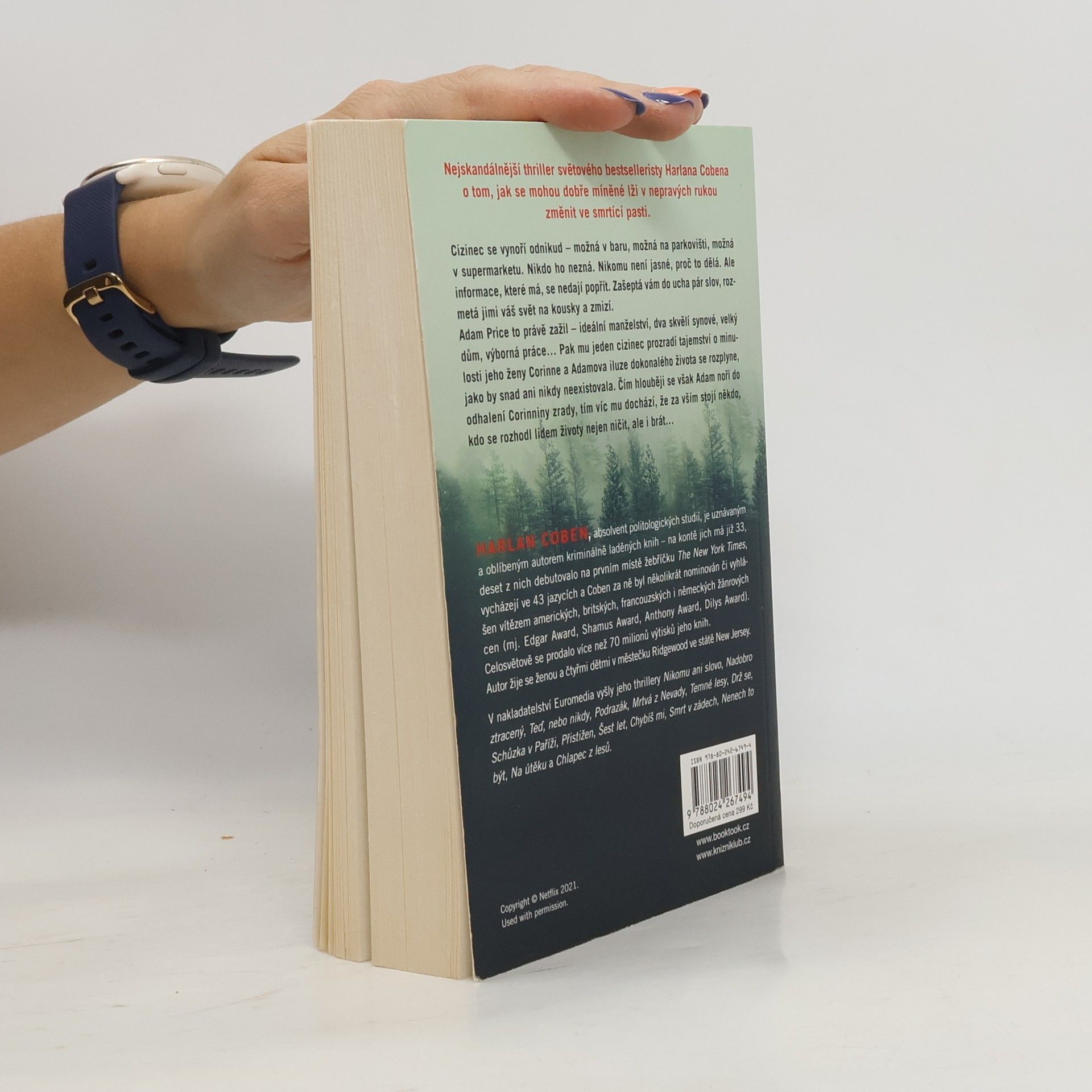 Nejskandálnější thriller světového bestselleristy Harlana Cobena o tom, jak se mohou dobře míněné lži v nepravých rukou změnit ve smrtící pasti. Cizinec se vynoří odnikud – možná v baru, možná na parkovišti, možná v supermarketu. Nikdo ho nezná. Nikomu není jasné, proč to dělá. Ale informace, které má, se nedají popřít. Zašeptá vám do ucha pár slov, rozmetá jimi váš svět na kousky a zmizí. Adam Price to právě zažil – ideální manželství, dva skvělí synové, velký dům, výborná práce… Pak mu jeden cizinec prozradí tajemství o minulosti jeho ženy Corinne a Adamova iluze dokonalého života se rozplyne, jako by snad ani nikdy neexistovala. Čím hlouběji se však Adam noří do odhalení Corinniny zrady, tím víc mu dochází, že za vším stojí někdo, kdo se rozhodl lidem životy nejen ničit, ale i brát…