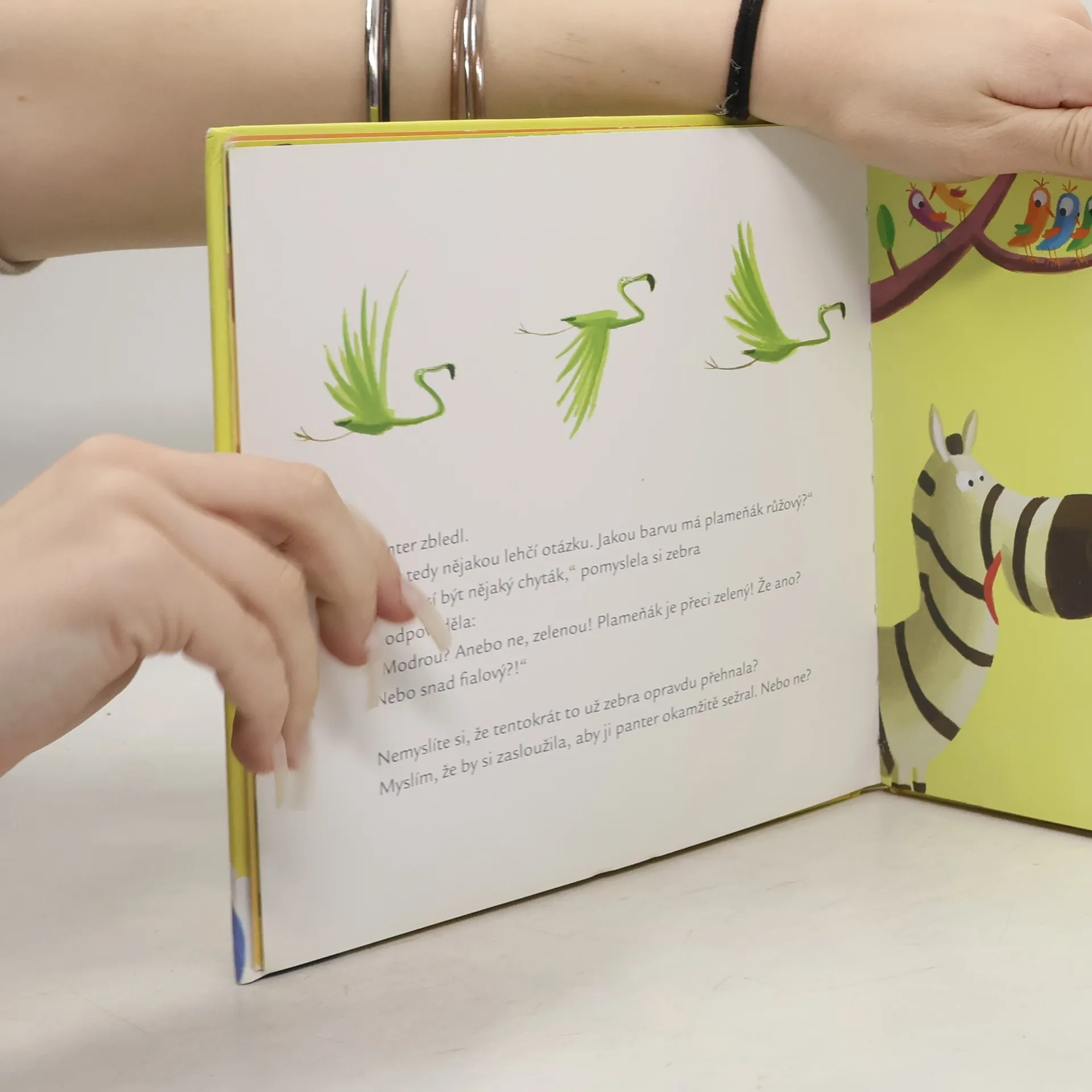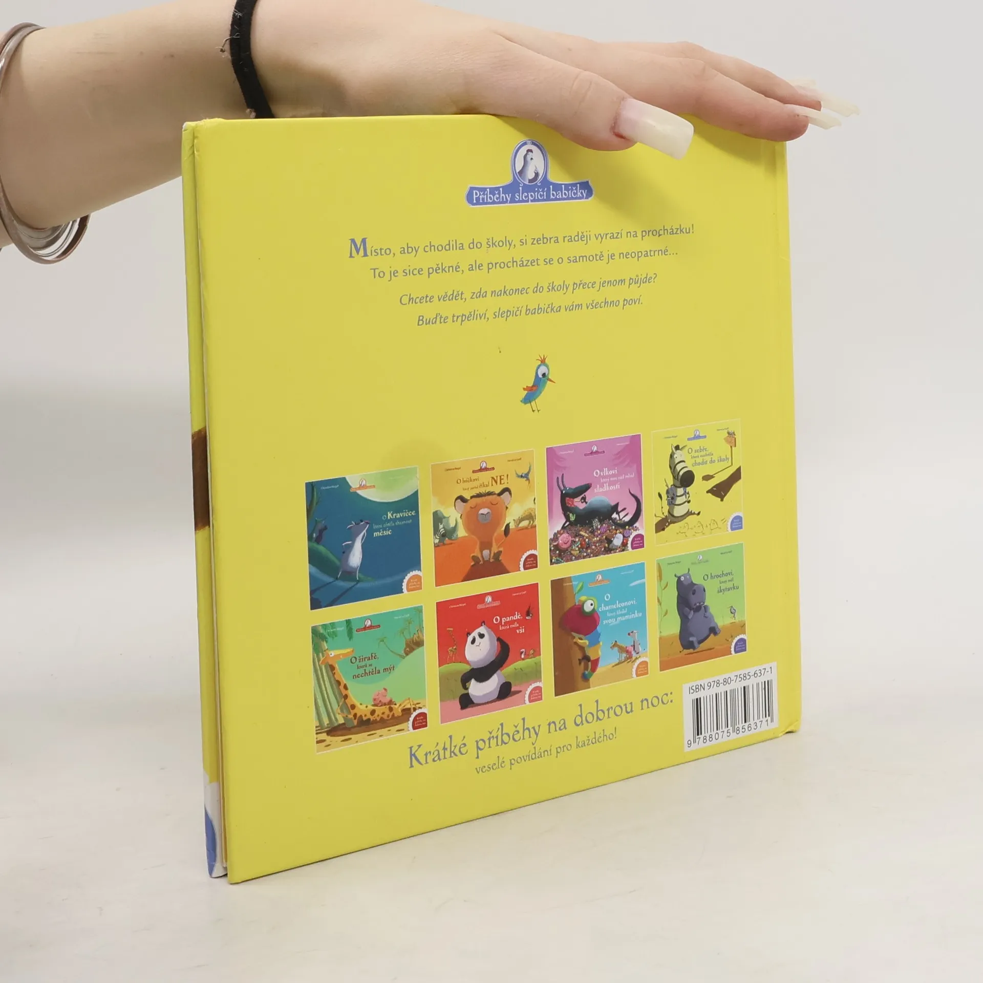 Malá zebra si myslela, že je chytřejší než ostatní a nemusí ani chodit do školy. Až potkala pantera, který jí začal klást podivné otázky. Stačily jí její znalosti, aby se před šelmou zachránila? To se dozvíte v Příbězích slepičí babičky.