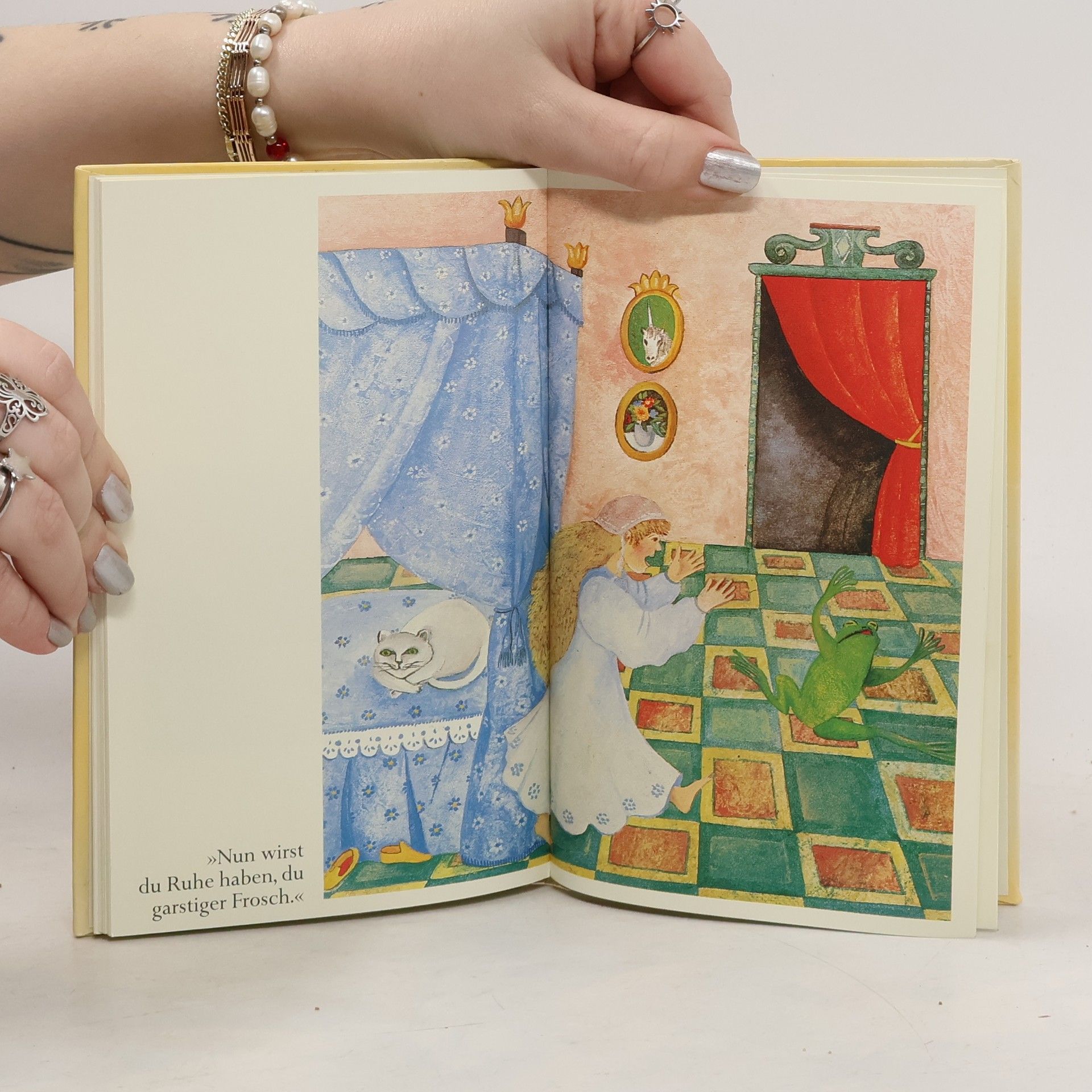 Der Frosch pocht auf die Einhaltung des Versprechens, das ihm die Königstochter als Gegenleistung für die Wiederbeschaffung der goldenen Kugel gegeben hat. Unnachgiebig begehrt er Einlass und wird von der Königstochter widerwillig aufgenommen. Märchen-Klassiker nach den Brüdern Grimm.