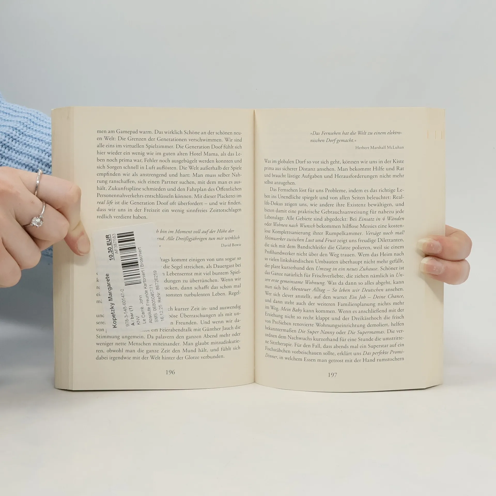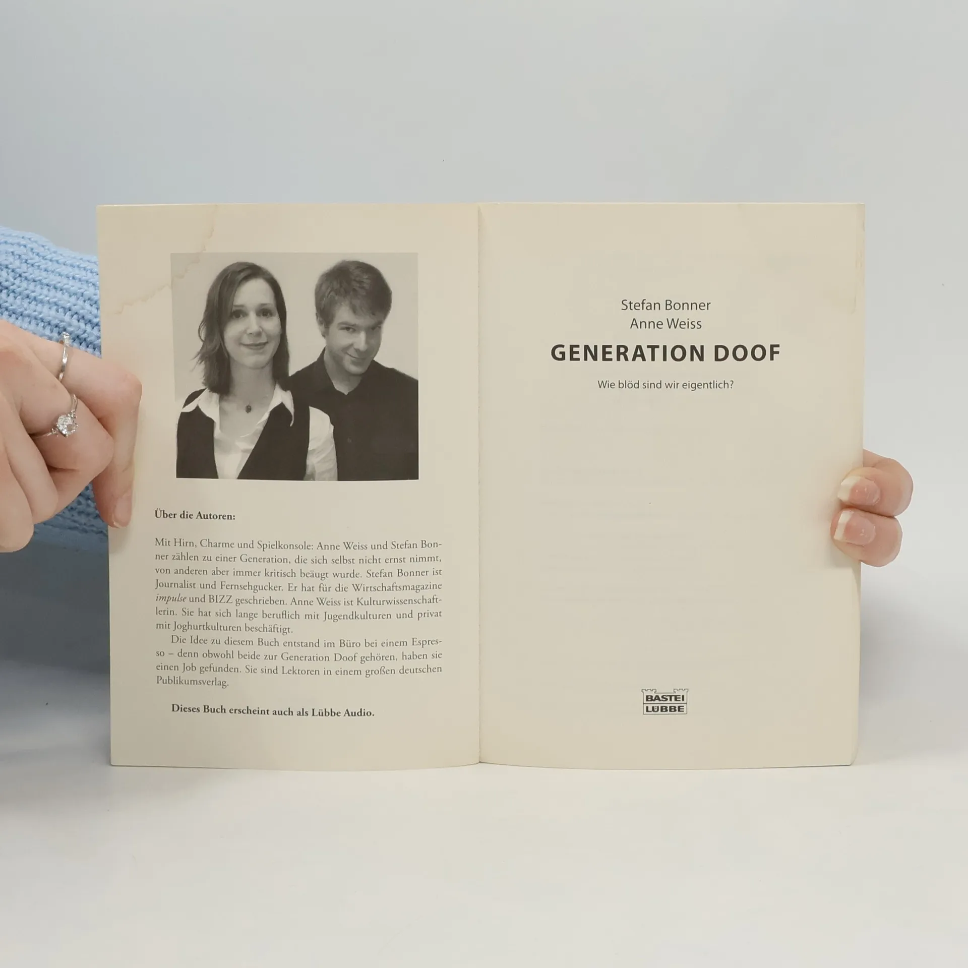 Niklas glaubt, der Dreisatz wäre eine olympische Disziplin. Latoya kennt drei skandinavische Länder: Schweden, Holland und Nordpol. Und Tamara-Michelle hält den Bundestag für einen Feiertag. Einzelfälle? Mitnichten. Eine ganze Generation scheint zu verblöden. Der Staatsanwalt von nebenan erzieht seine Kinder mit der Spielkonsole. Germanistikstudenten sind der deutschen Sprache nicht mehr mächtig. Eine Karriere als Popstar erscheint dem Bäckerlehrling verlockender als eine solide Ausbildung. Dieses Buch geht der Frage auf den Grund, wie es wirklich um die Mütter, Väter und Bundeskanzler von morgen steht. Geschrieben haben es zwei Autoren, die mit der Generation Doof per Du sind. Denn es ist ihre eigene.