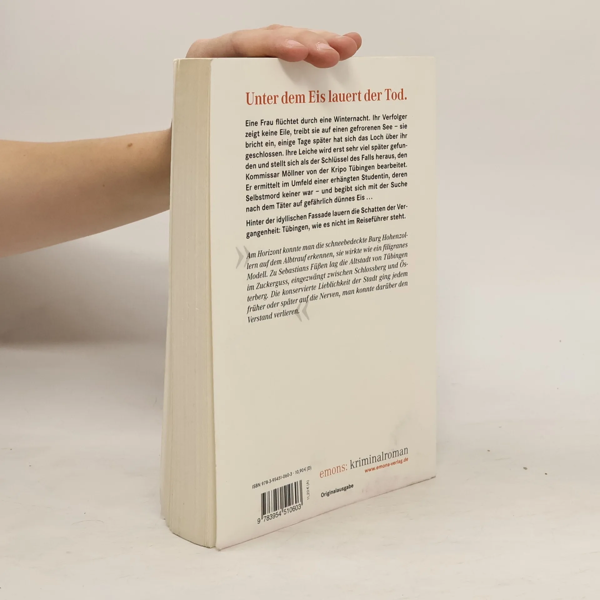 Eine Frau flüchtet durch eine Winternacht. Ihr Verfolger zeigt keine Eile, treibt sie auf einen gefrorenen See – sie bricht ein, einige Tage später hat sich das Loch über ihr geschlossen. Ihre Leiche wird erst sehr viel später gefunden und stellt sich als der Schlüssel des Falls heraus, den Kommissar Möllner von der Kripo Tübingen bearbeitet. Er ermittelt im Umfeld einer erhängten Studentin, deren Selbstmord keiner war – und begibt sich mit der Suche nach dem Täter auf gefährlich dünnes Eis.