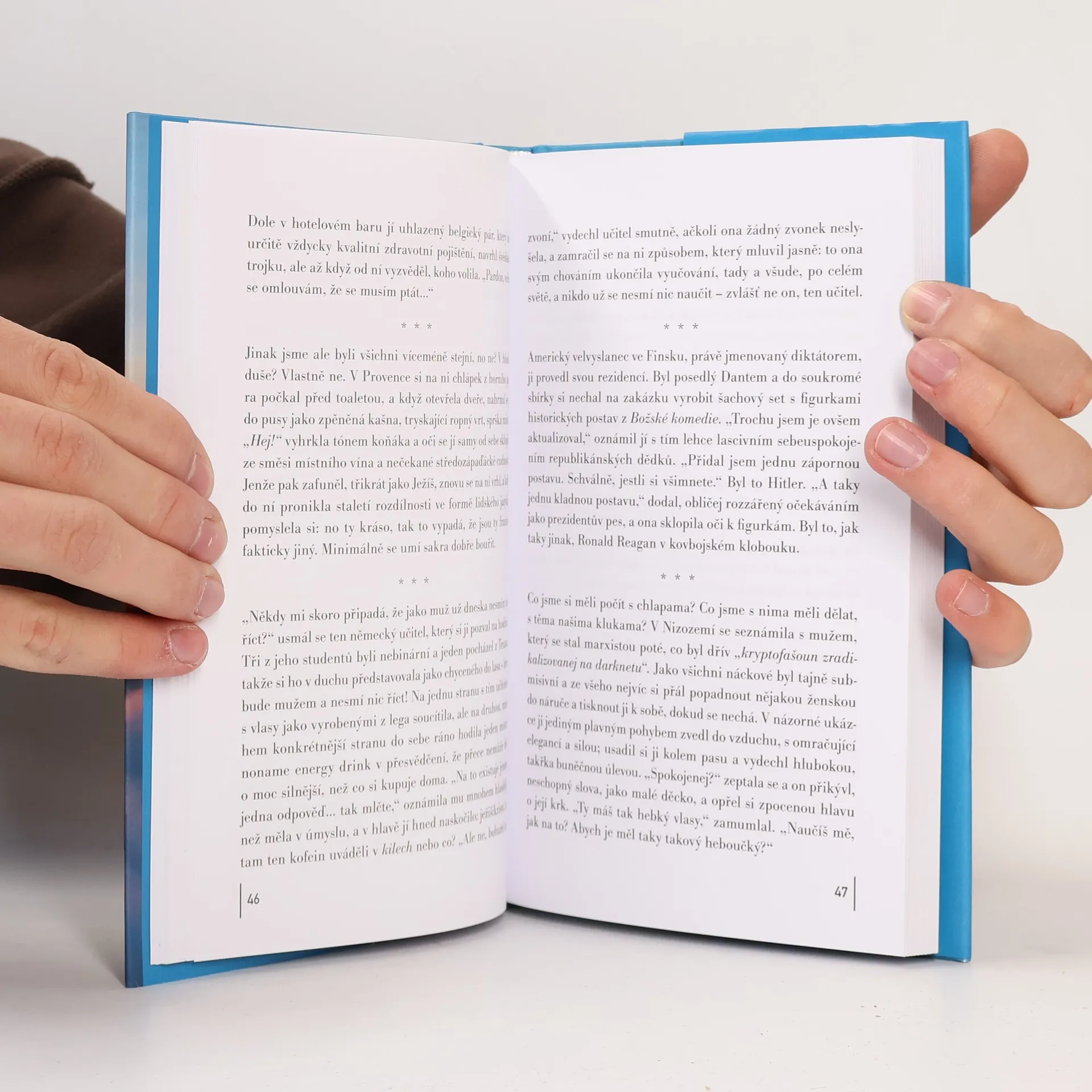Prozaická prvotina americké básnířky je silnou výpovědí o naší současnosti, kterou pohání a formuje náladový svět sociálních médií – ona hyperrealita, zakusující se do vlastního ocasu, jež svou demokratizací hlasů ve veřejném prostoru, relativizací a vyprázdněností pojmů ovlivňuje události ve skutečném světě. Kniha je rozdělená na dvě části, které jsou svým zaměřením diametrálně odlišné, kladou proti sobě svět reálný a virtuální. Ve skutečnosti představují jin a jang, spojené nádoby, dvě strany jedné mince. Ta první líčí život a myšlenky hlavní hrdinky, kterou bychom nejspíš označili nálepkou influencerka. Jsou to střípky skutečných událostí, jejich reflexe v nových médiích a úvahy, jimiž hrdinka komentuje dění kolem sebe. Ve druhé části se perspektiva mění: sestra hrdinky čeká dítě postižené Proteovým syndromem, které nemá šanci na dlouhodobé přežití. Vše se smrskne na nemocniční pokoj, na hluboké prožívání přítomnosti, snahu zachytit, vnímat a do paměti vtisknout každou vteřinu. To vše nám zprostředkovávají citlivé niterné postřehy, tolik kontrastující s přepjatou bombastičností hrdinčina virtuálního světa.