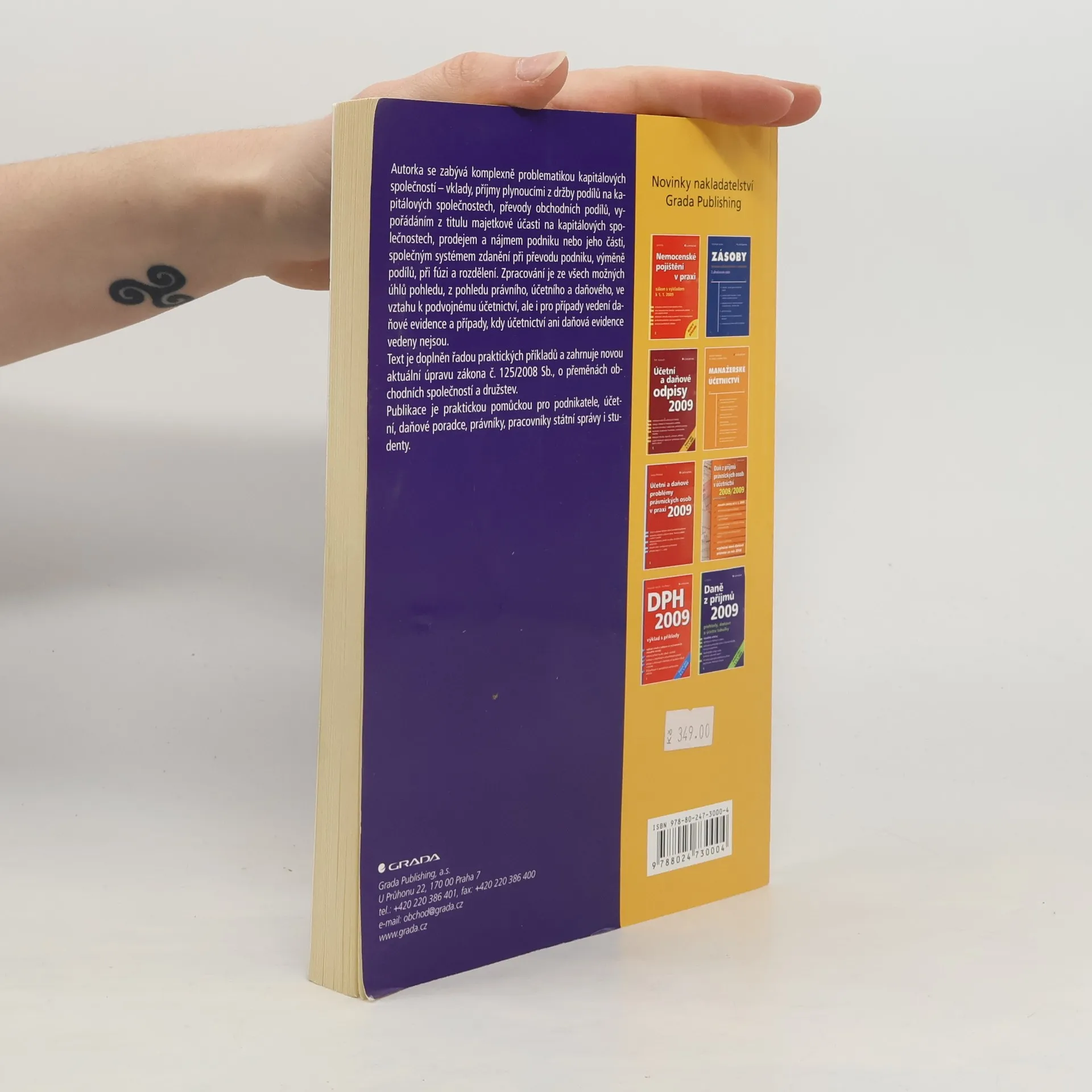 Autorka se zabývá komplexně problematikou kapitálových společností – vklady, příjmy plynoucími z držby podílů na kapitálových společnostech, převody obchodních podílů, vypořádáním z titulu majetkové účasti na kapitálových společnostech, prodejem a nájmem podniku nebo jeho části, společným systémem zdanění při převodu podniku, výměně podílů, při fúzi a rozdělení. Zpracování je ze všech možných úhlů pohledu, z pohledu právního, účetního a daňového, ve vztahu k podvojnému účetnictví, ale i pro případy vedení daňové evidence a případy, kdy účetnictví ani daňová evidence vedeny nejsou. Text je doplněn řadou praktických příkladů a zahrnuje novou aktuální úpravu zákona č. 125/2008 Sb., o přeměnách obchodních společností a družstev.Publikace je praktickou pomůckou pro podnikatele, účetní, daňové poradce, právníky, pracovníky státní správy i studenty.