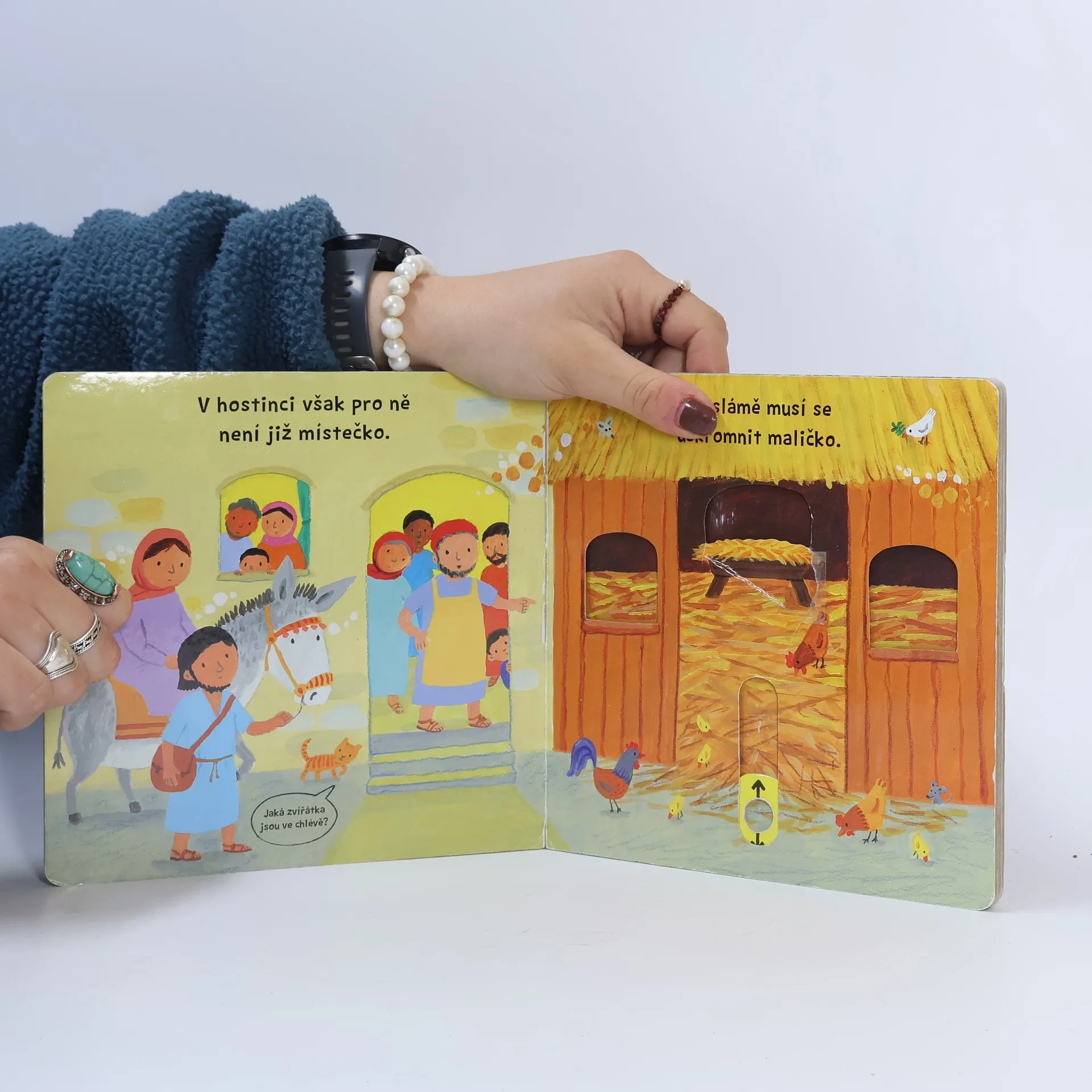 Kam putují Marie s Josefem? Sleduj jejich cestu do Betléma a narození Ježíška. Toto veršované leporelo je určeno pro děti od jednoho roku. Má pevné stránky s posuvnými a otočnými prvky, a tak si dítě při prohlížení knížky současně procvičí jemnou motoriku – může na jednotlivých stránkách posouvat, tahat, otáčet. Objeví nové věci a můžete si o nich společně povídat!