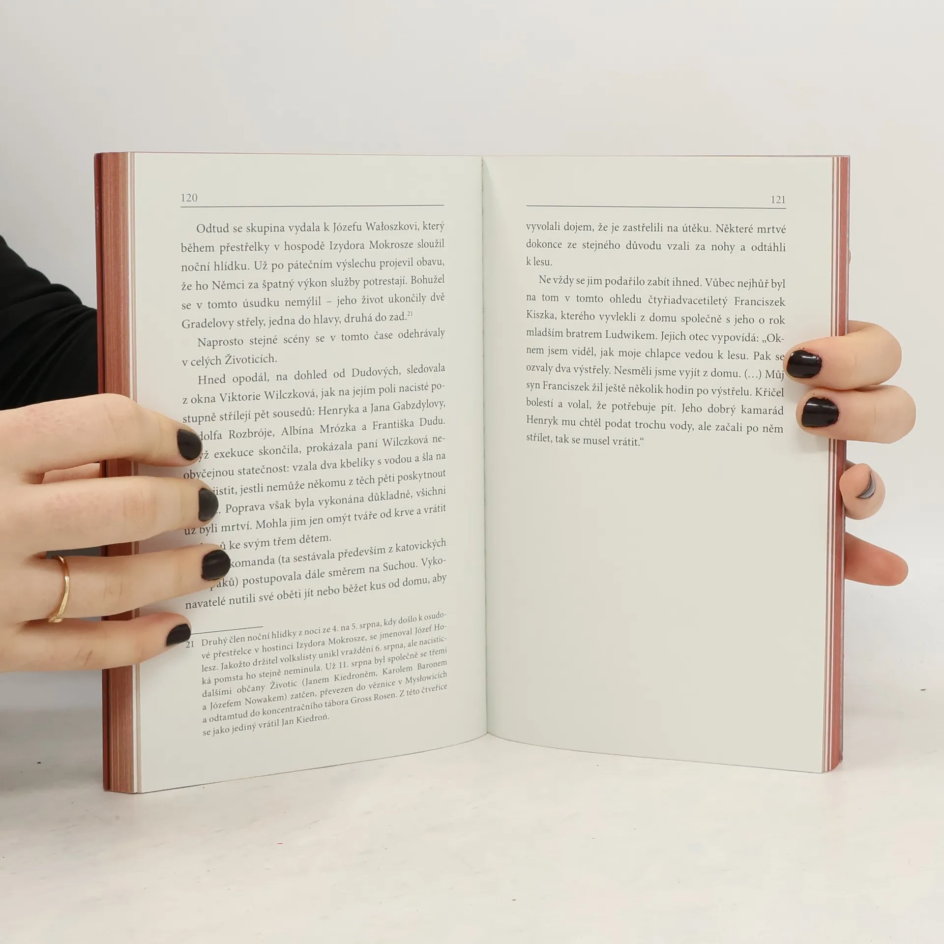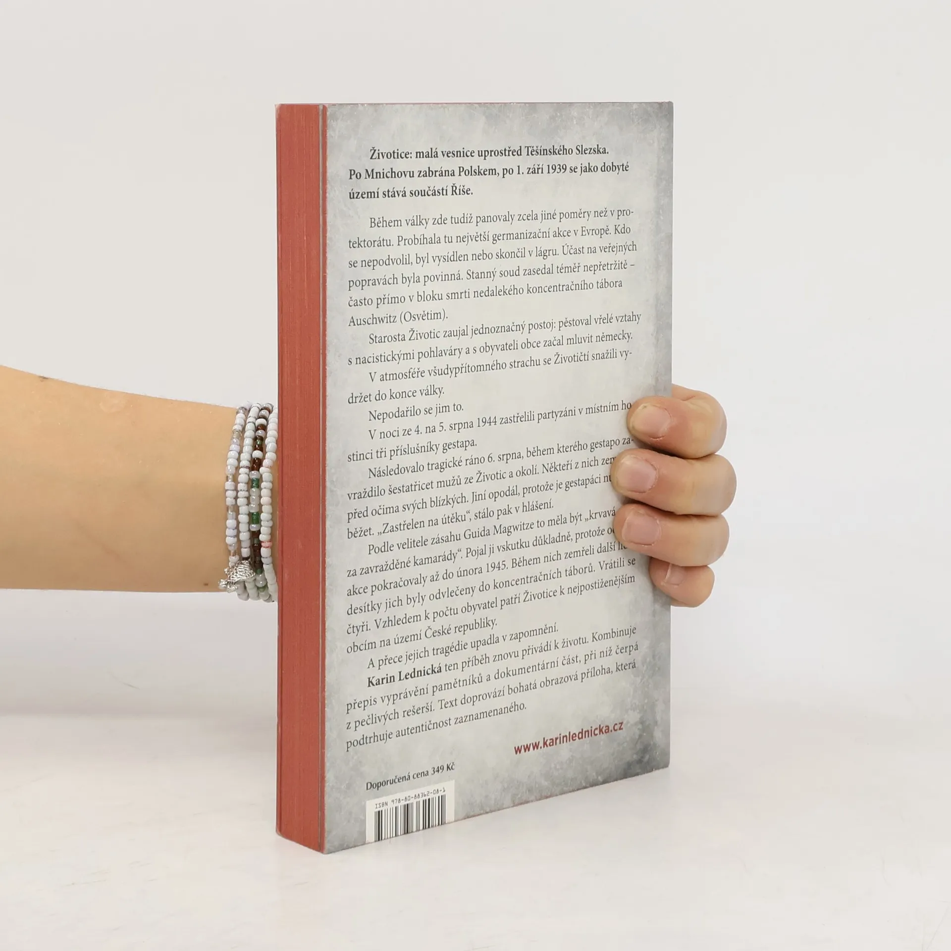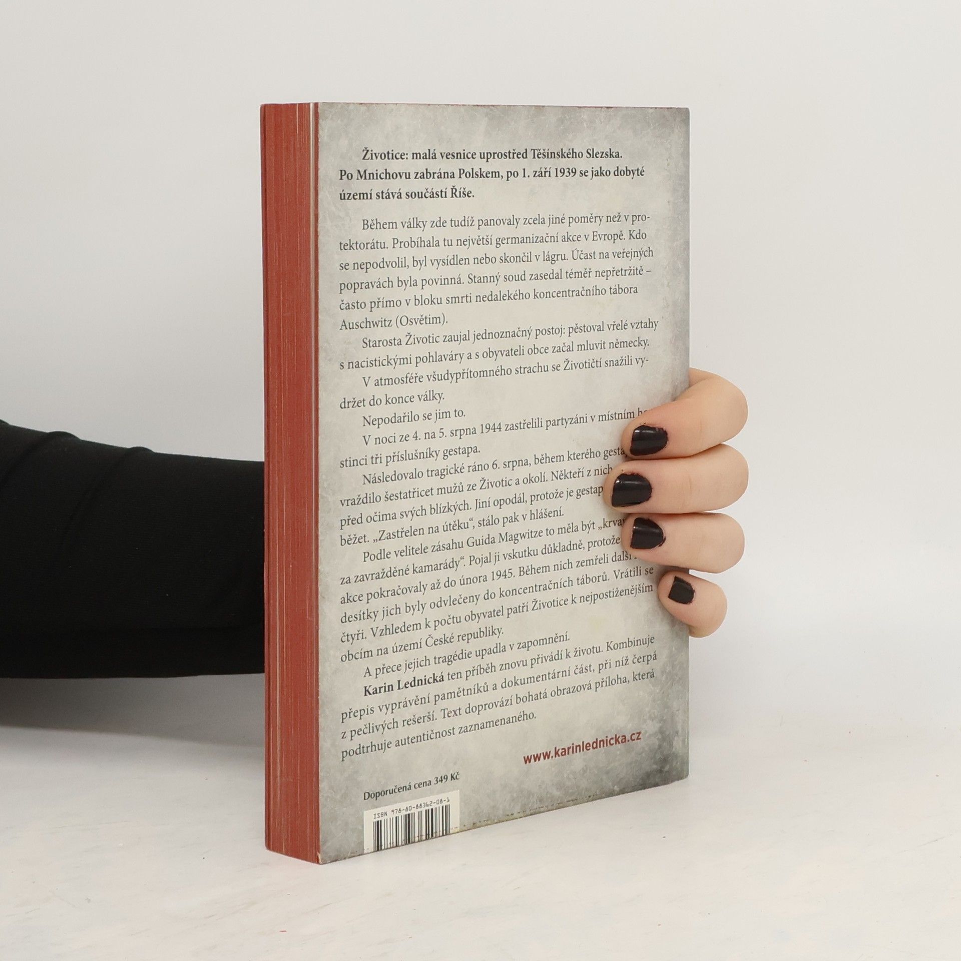 Životice: malá vesnice uprostřed Těšínského Slezska. Po Mnichovu zabrána Polskem, po 1. září 1939 se jako dobyté území stává součástí Říše. Během války zde tudíž panovaly zcela jiné poměry než v protektorátu. Probíhala tu největší germanizační akce v Evropě. Kdo se nepodvolil, byl vysídlen nebo skončil v lágru. Účast na veřejných popravách byla povinná. Stanný soud zasedal téměř nepřetržitě – často přímo v bloku smrti nedalekého koncentračního tábora Auschwitz (Osvětim). Starosta Životic zaujal jednoznačný postoj: pěstoval vřelé vztahy s nacistickými pohlaváry a s obyvateli obce začal mluvit německy. V atmosféře všudypřítomného strachu se Životičtí snažili vydržet do konce války. Nepodařilo se jim to. Karin Lednická ten příběh znovu přivádí k životu. Kombinuje přepis vyprávění pamětníků a dokumentární část, při níž čerpá z pečlivých rešerší. Text doprovází bohatá obrazová příloha, která podtrhuje autentičnost zaznamenaného.