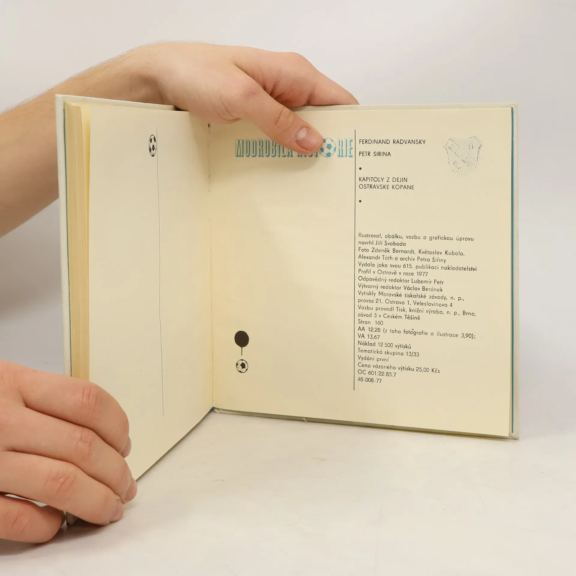 Modrobílá historie : kapitoly z dějin ostravské kopané, Ferdinand Radvanský, Petr Šiřina, Jiří Svoboda