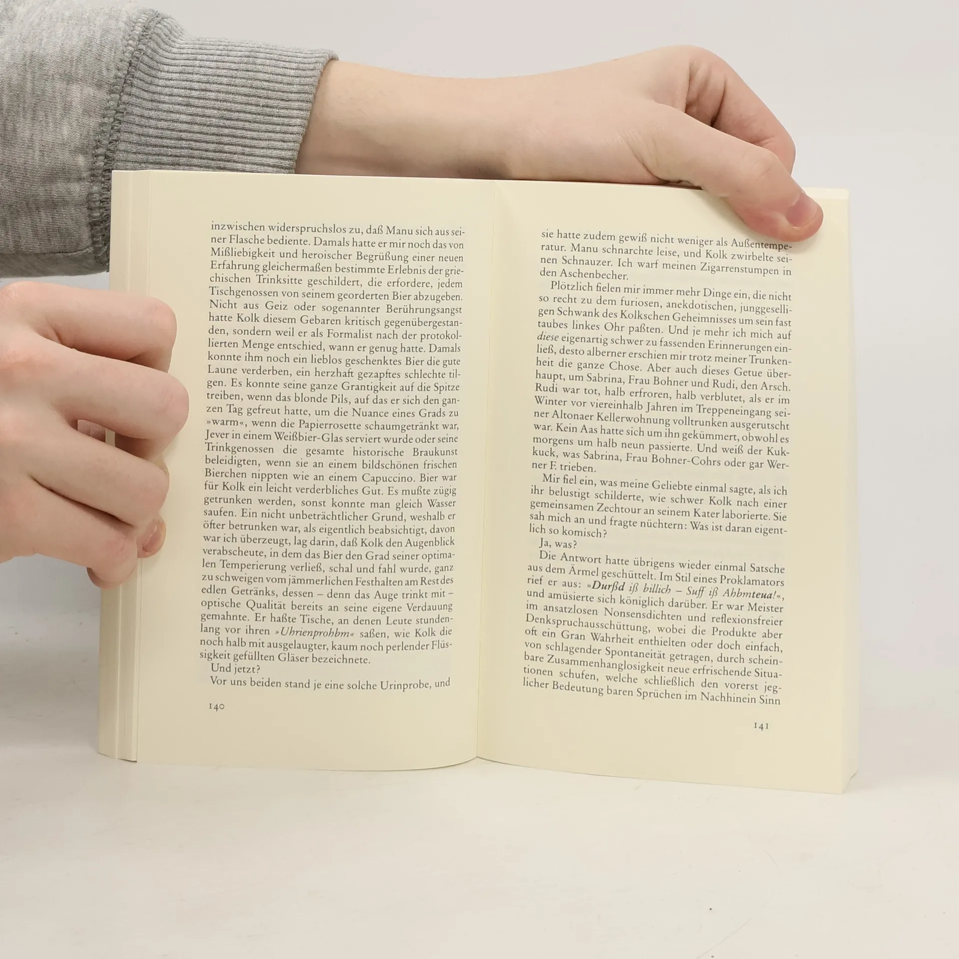 Deutscher Autor, geb. 1957. - Vier Freunde - Heiner, Bodo, Satschesatsche und unser Held Kolk - treffen sich turnusmäßig in der Hamburger "Glucke" zum Skat. Den Ort des Geschehens verlassen die Helden oft in einem Zustand, den sie zärtlich "schwerer Lollimann" nennen. In seinem bürgerlichen Beruf als Briefträger wird für Kolk die Aushändigung eines Einschreibebriefes an eine langbeinige Traumbraut mit blonden, lang gewellten Haaren und makellosem Körper zum epiphanischen Erlebnis, zum Dreh- und Wendepunkt seines Lebens und zum allerschönsten ewigen Kneipenerlebnisbericht für die Freunde der Becherrunde.