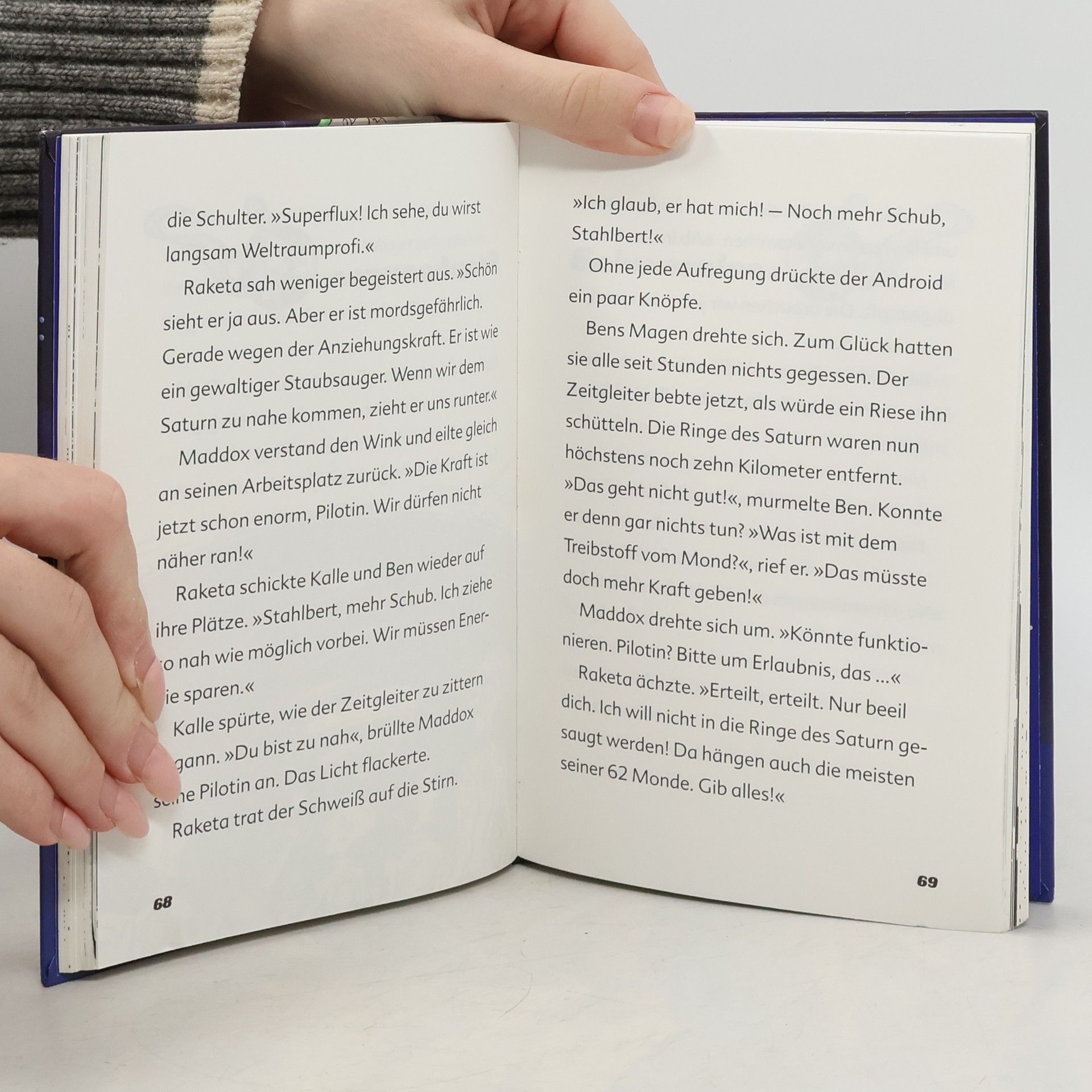 Zurück in die Zukunft - Maddox und Raketa laden Ben und Kalle zu einer Reise in ihre Zeit ein, direkt in das Jahr 2159! Ein aufregendes Abenteuer mit dem Zeitgleiter wartet auf die vier Freunde. Sie müssen auf dem Mond zwischenlanden und an Neptun vorbei bis zur Sonne fliegen. Und was hat die Reise mit dem Geheimnis von Ben zu tun? Mach dich auf die Zeitreise mit den vier Freunden. Erforsche mit ihnen Vergangenheit und Zukunft, erlebe spannende Abenteuer und decke ein rätselhaftes Geheimnis auf . Extra: Faktencheck am Ende des Bandes: Sachwissen für alle, die mehr über das Universum wissen möchten.