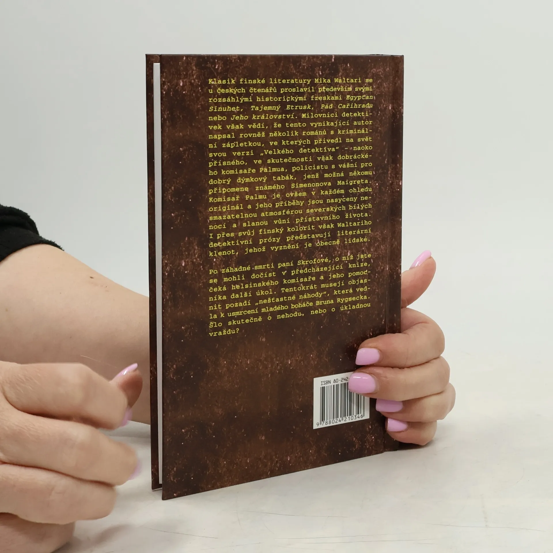 Klasik finské literatury Mika Waltari se u českých čtenářů proslavil především svými rozsáhlými historickými freskami Egypťan Sinuhet, Tajemný Etrusk, Pád Cařihradu nebo Jeho království. Milovníci detektivek však vědí, že tento vynikající autor napsal rovněž několik románů s kriminální zápletkou, ve kterých přivedl na svět svou verzi „Velkého detektiva“ – naoko přísného, ve skutečnosti však dobráckého komisaře Palmua, policistu s vášní pro dobrý dýmkový tabák, jenž možná někomu připomene známého Simenonova Maigreta. Komisař Palmu je ovšem v každém ohledu originál a jeho příběhy jsou nasyceny nesmazatelnou atmosférou severských bílých nocí a slanou vůní přístavního života. I přes svůj finský kolorit však Waltariho detektivní prózy představují literární klenot, jehož vyznění je obecně lidské. Po záhadné smrti paní Skrofové, o níž jste se mohli dočíst v předcházející knize, čeká helsinského komisaře a jeho pomocníka další úkol. Tentokrát musejí objasnit pozadí „nešťastné náhody“, která vedla k usmrcení mladého boháče Bruna Rygsecka. Šlo skutečně o nehodu, nebo o úkladnou vraždu?