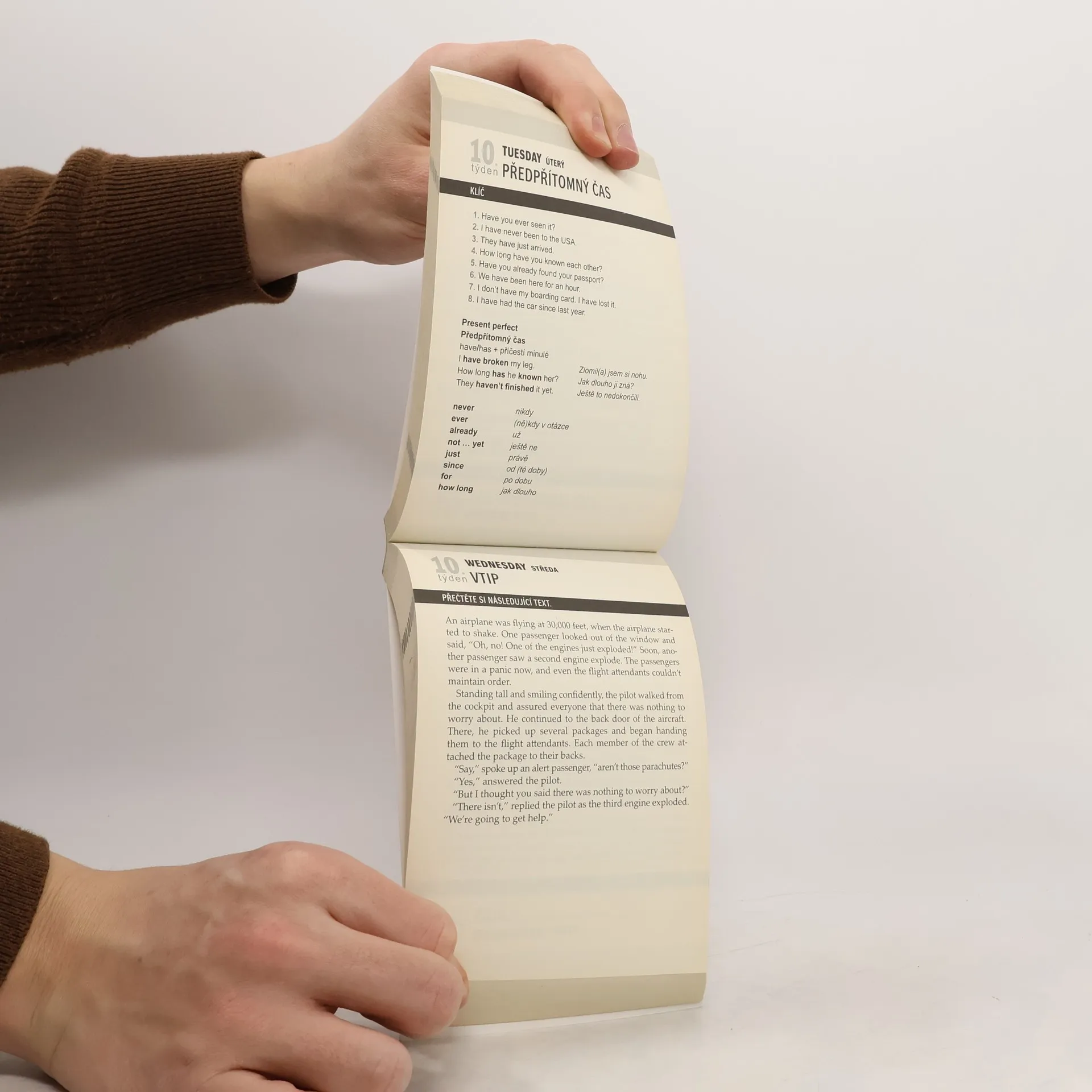 Jste mírně pokročilí nebo s angličtinou stále znovu začínáte, ale pořád Vám nejde do hlavy? Zkuste to jinak! Každý den vytrhněte jeden list, vyluštěte osmisměrku, doplňte vhodná slovíčka, přečtěte si vtip nebo napínavý příběh a ihned si zkontrolujte výsledky. Upevníte si dosavadní znalosti a rozšíříte si slovní zásobu. Vaše angličtina se tak bude den za dnem zlepšovat.