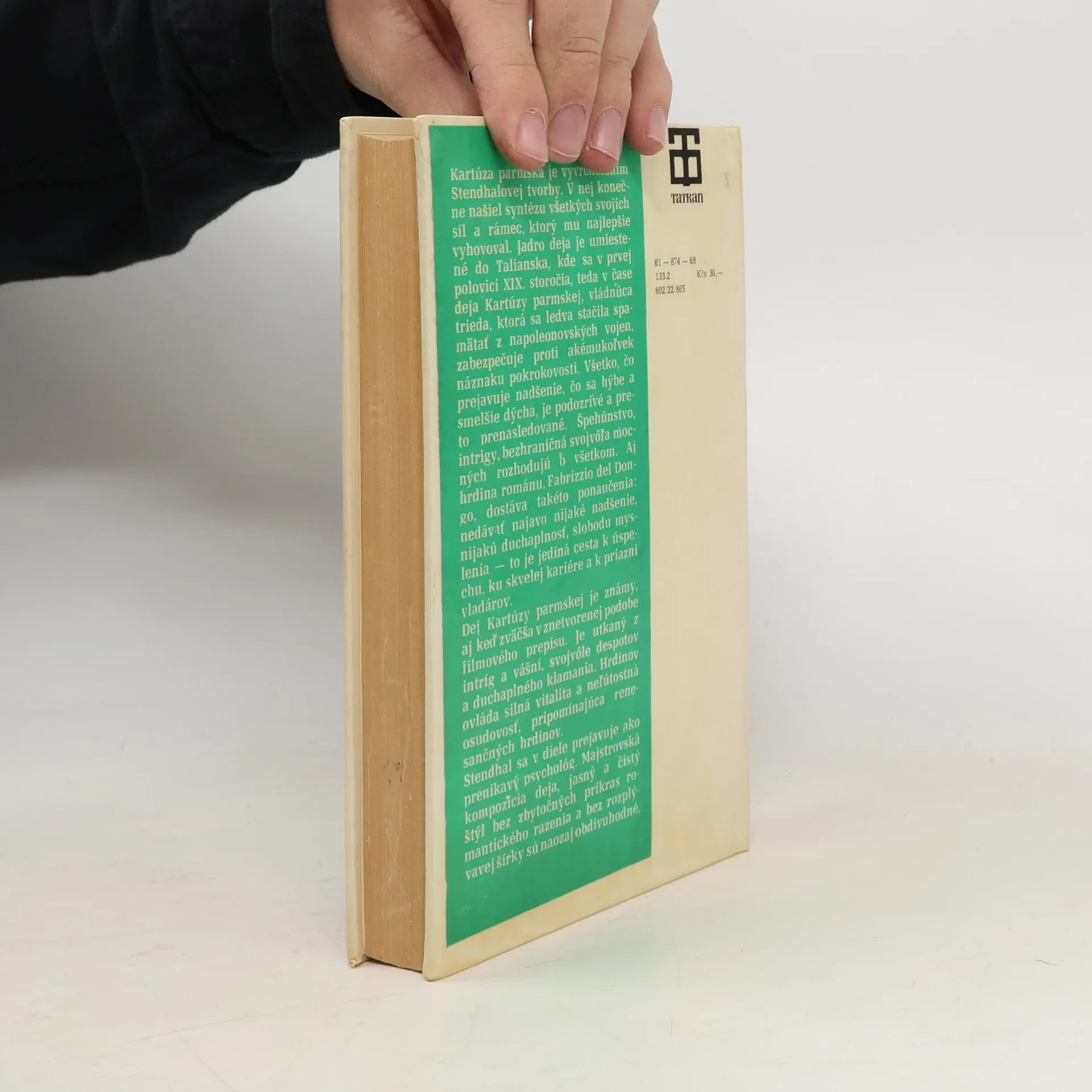 Dobrodružný román, ktorý patrí k základným realistickým dielam v európskej literatúre. Hrdinom je Fabrice, ktorý nemôže žiť slobodne, musí sa celý život pokrytecky prispôsobovať. Chce sa pripojiť k Napoleonovi, zablúdi až k Waterloo, po nešťastnej bitke sa uchýli k svojej tete, vojvodkyniSanseverine do Parmy. Keď zabije soka v láske, je uväznený v parmskej veži. Fabrica skľučuje ovzdušie intríg a strachu, príde o svoju lásku Cléliu. Aby si zachránil život, nájde únik v kláštore... 3. slovenské vydanie.