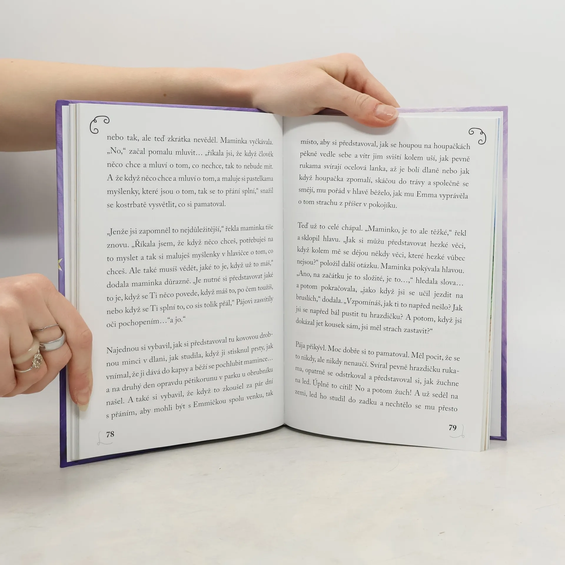 Luna je zvláštní holčička. Mluví s hvězdami, duhu má jako klouzačku a mraky bere jako přátele, Jenže poslední dobou často pozoruje pozemský život a i když vnímá, že se tam dějí i složité věci, jedno jí nedá spát. Chtěla by poznat dotek. A aby toho nebylo málo, tak na hřiště, kam dobře vidí, chodí jeden kluk a touží po sestře. Kouzelný příběh pro děti i jejich rodiče, který otevírá jiné možnosti vnímání běžných starostí.